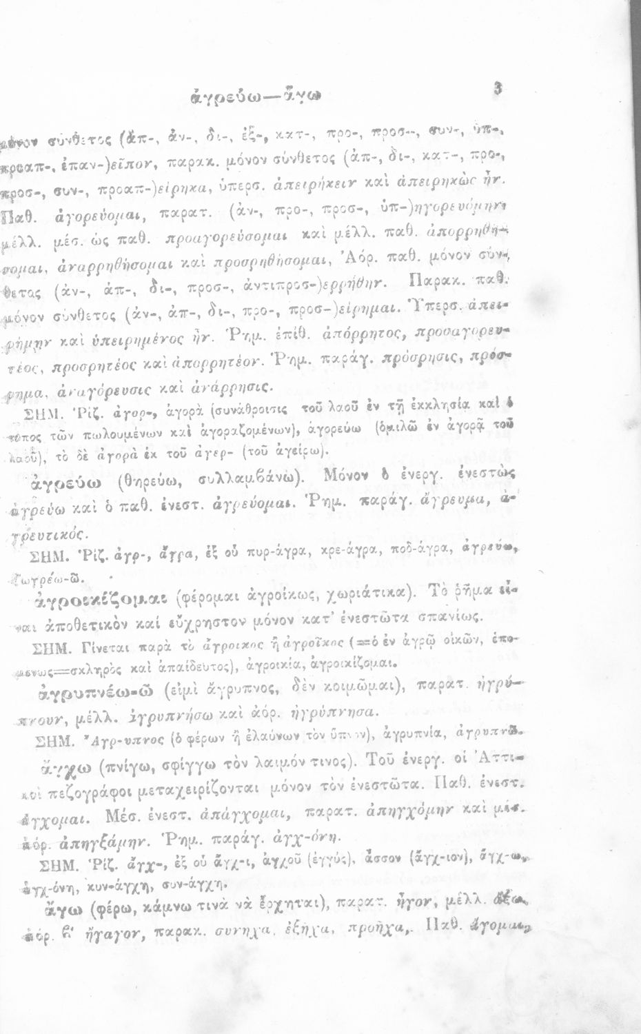 Μαθητικό βοήθημα Αρχαίων Ελληνικών Ελληνικού Σχολείου και Παρθεναγωγείου που περιέχει κατάλογο των ανώμαλων ρημάτων και ονομάτων της αρχαίας ελληνικής γραμματείας και ετυμολογικές, γραμματικές και σημασιολογικές παρατηρήσεις..