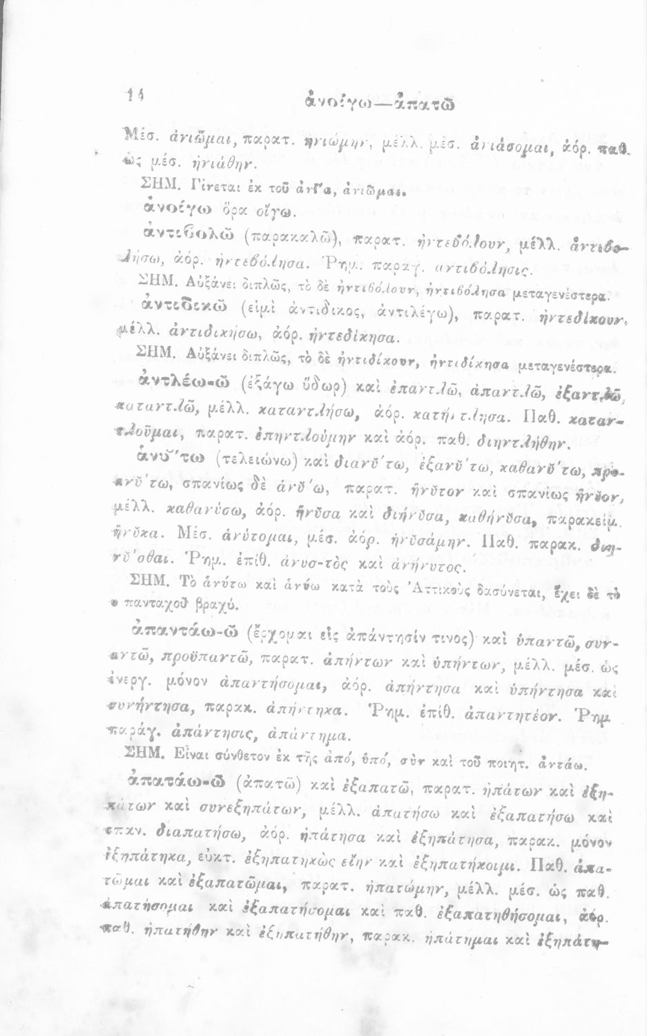 Παρουσίαση περιεχομένου: Μαθητικό βοήθημα Αρχαίων Ελληνικών Ελληνικού Σχολείου και Παρθεναγωγείου που περιέχει κατάλογο των ανώμαλων ρημάτων και ονομάτων της αρχαίας ελληνικής γραμματείας και ετυμολογικές, γραμματικές και σημασιολογικές παρατηρήσεις..