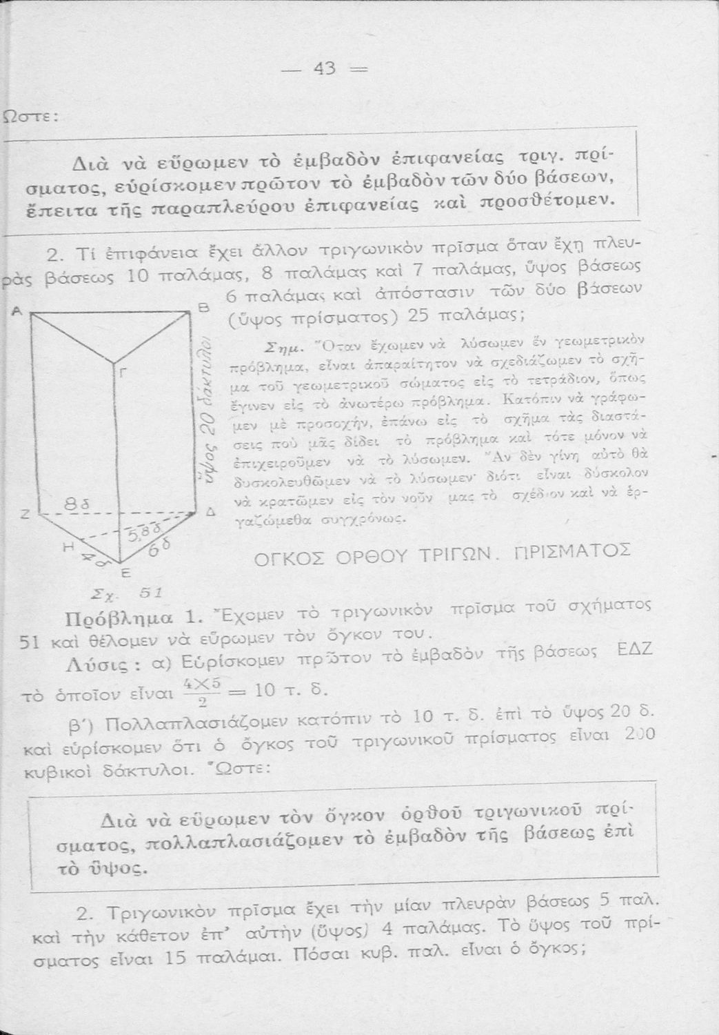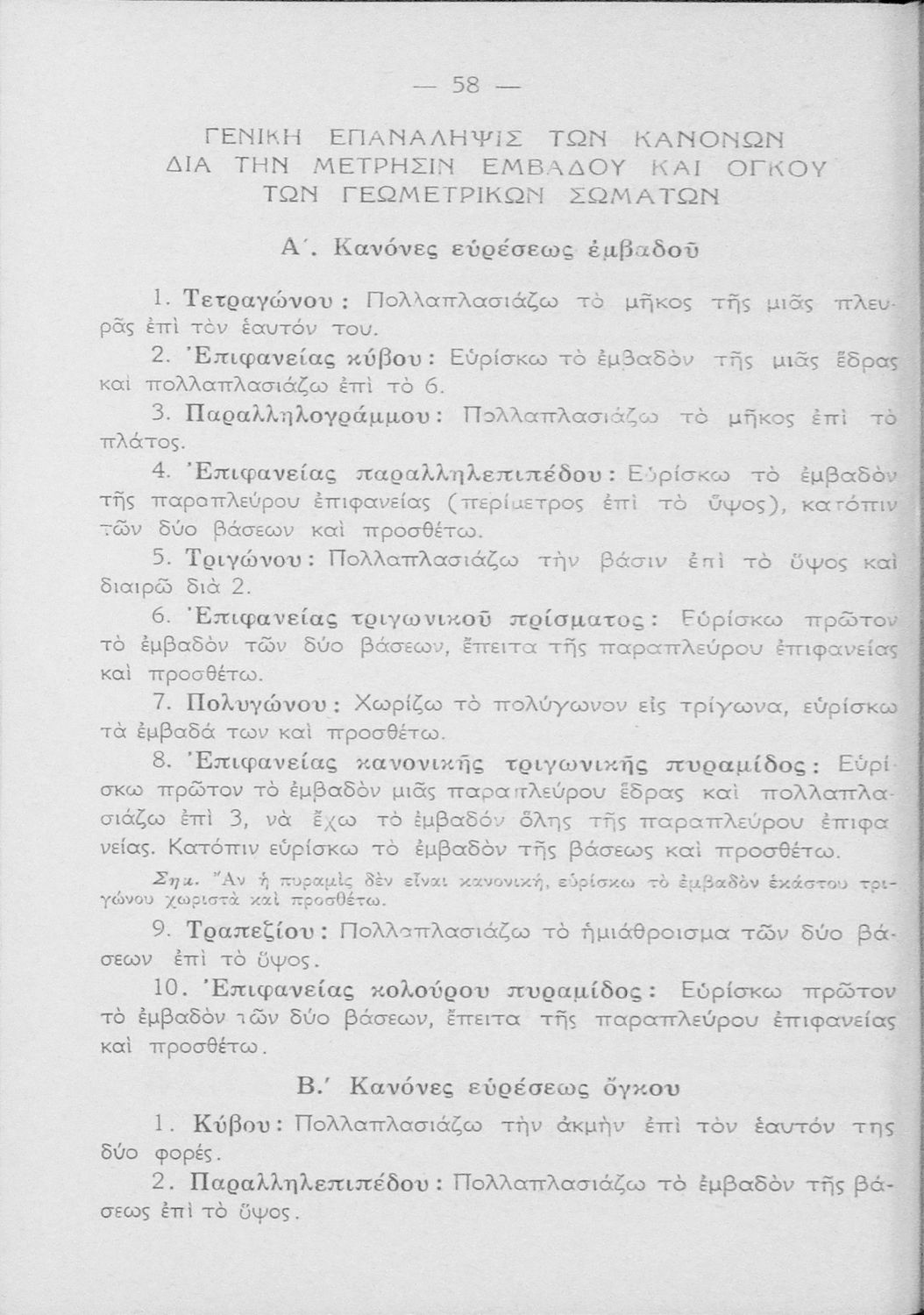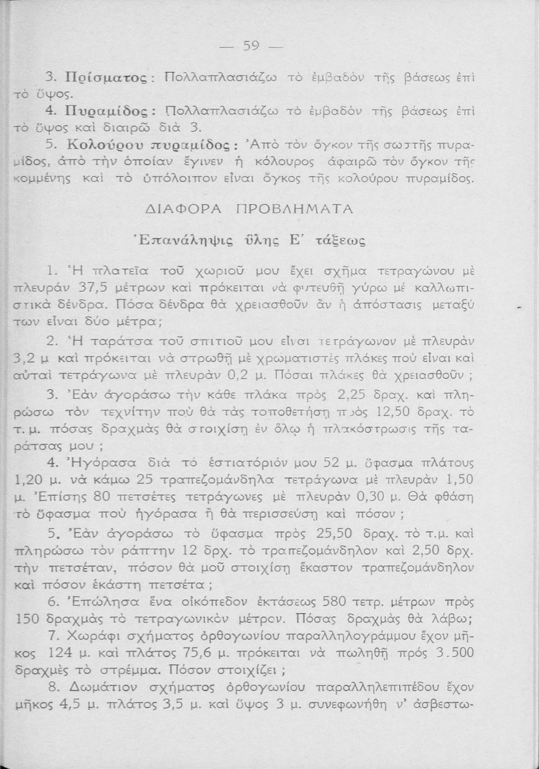 Μαθητικό βοήθημα Γεωμετρίας για τις Ε΄ και ΣΤ΄ Δημοτικού που περιλαμβάνει εικόνες, σχεδιαγράμματα και ασκήσεις. Περιέχει πίνακα με τα ειδικά βάρη διαφόρων σωμάτων.