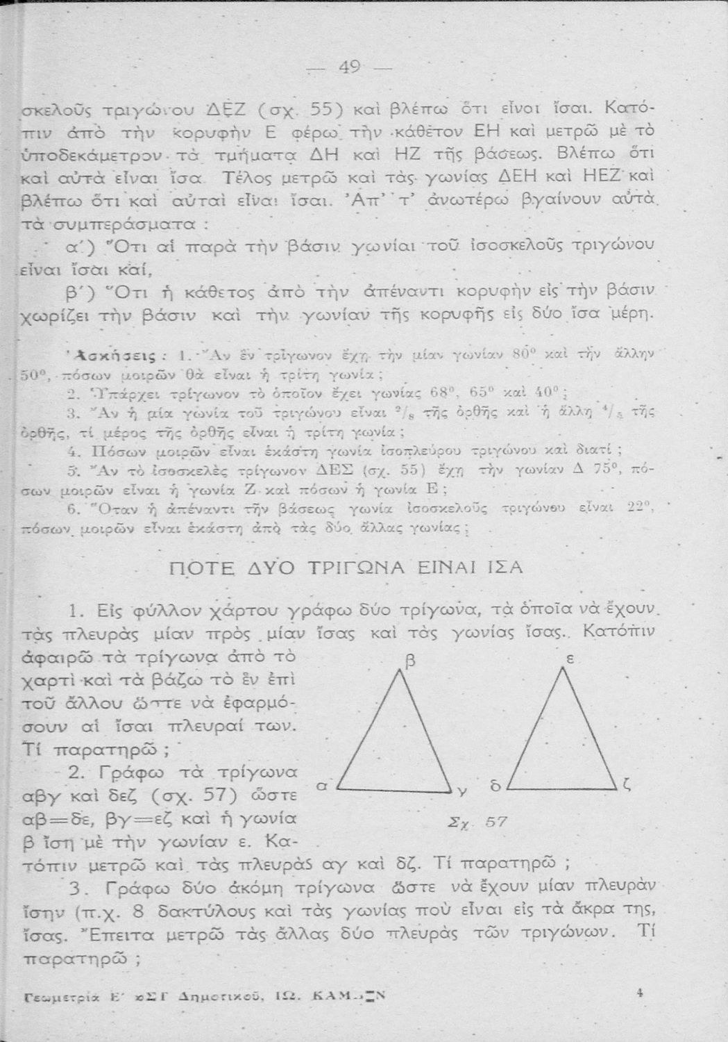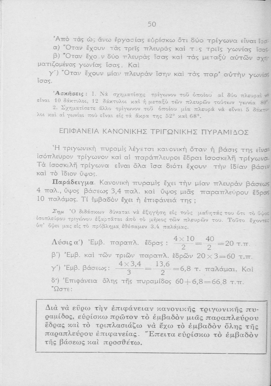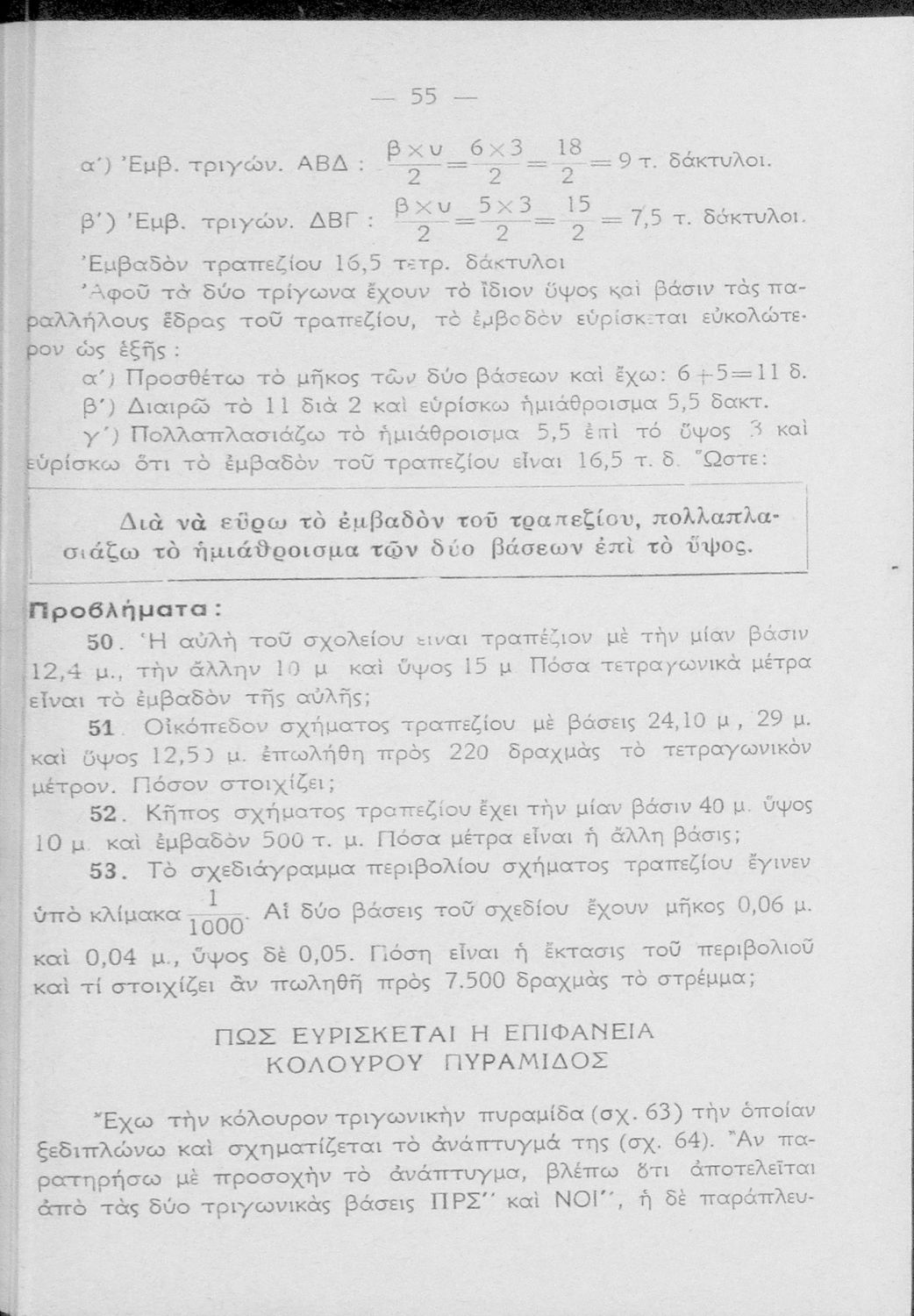 Μαθητικό βοήθημα Γεωμετρίας για τις Ε΄ και ΣΤ΄ Δημοτικού που περιλαμβάνει εικόνες, σχεδιαγράμματα και ασκήσεις. Περιέχει πίνακα με τα ειδικά βάρη διαφόρων σωμάτων.