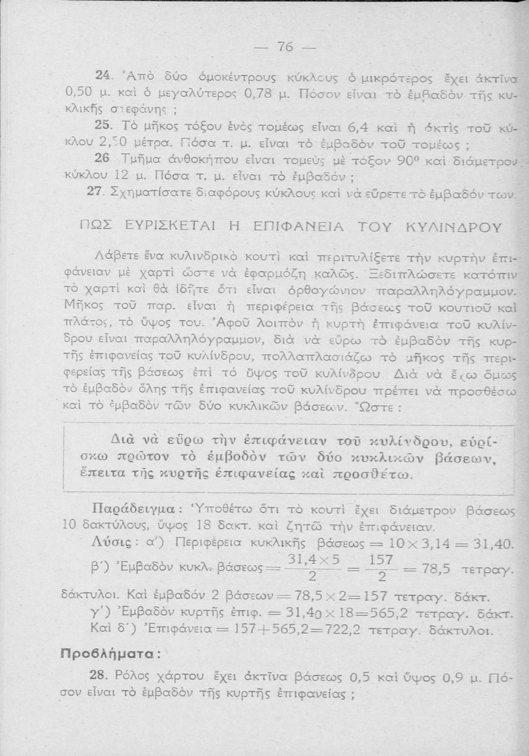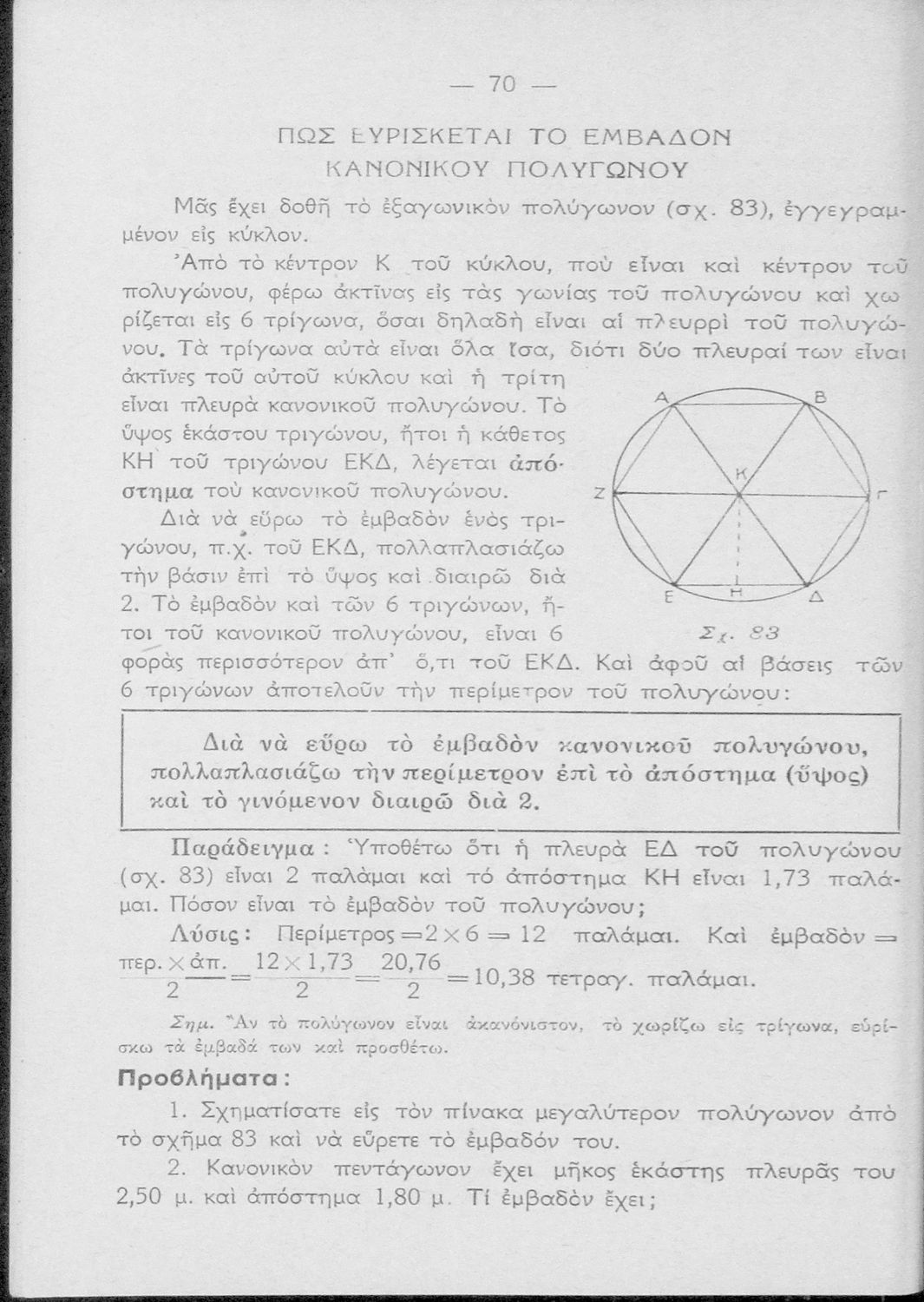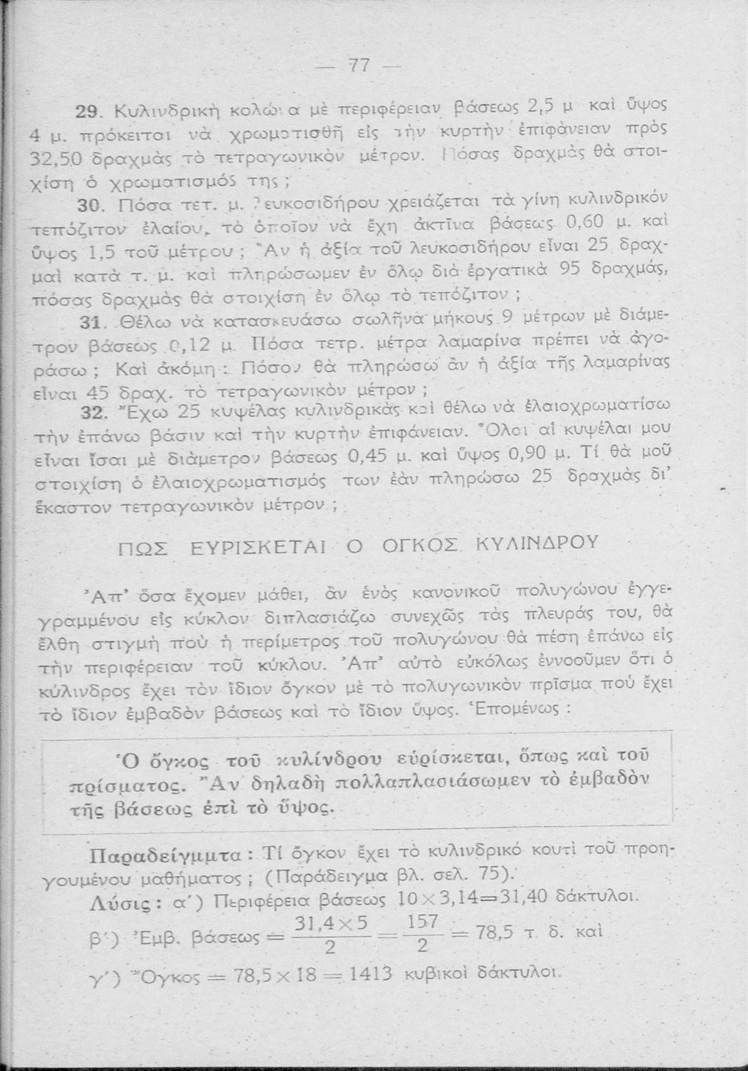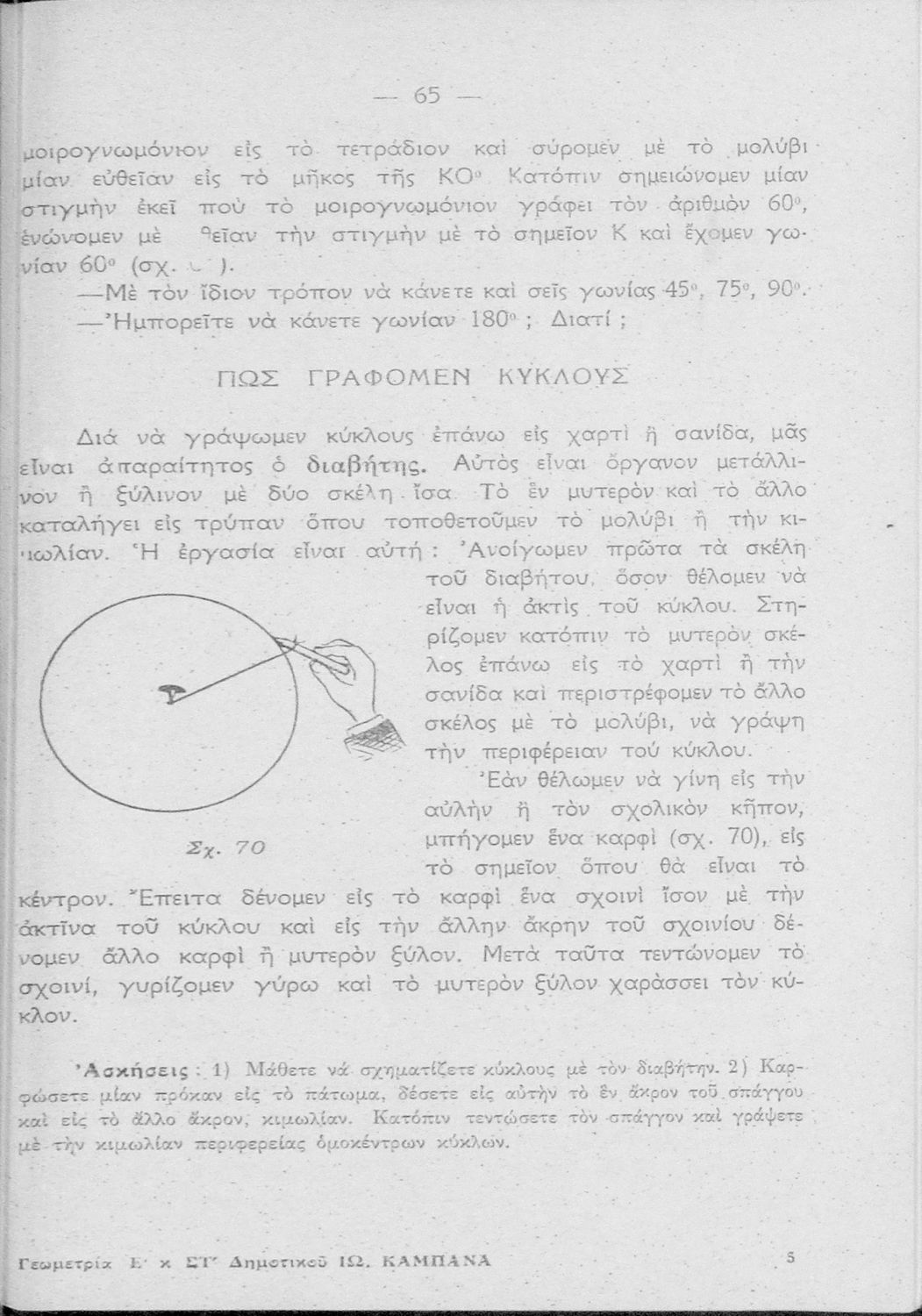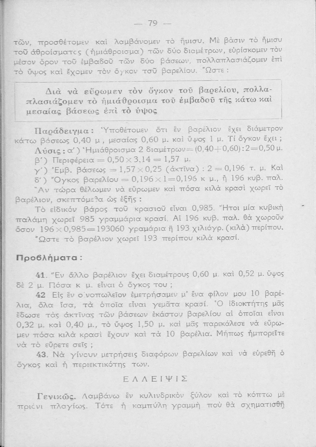 Μαθητικό βοήθημα Γεωμετρίας για τις Ε΄ και ΣΤ΄ Δημοτικού που περιλαμβάνει εικόνες, σχεδιαγράμματα και ασκήσεις. Περιέχει πίνακα με τα ειδικά βάρη διαφόρων σωμάτων.