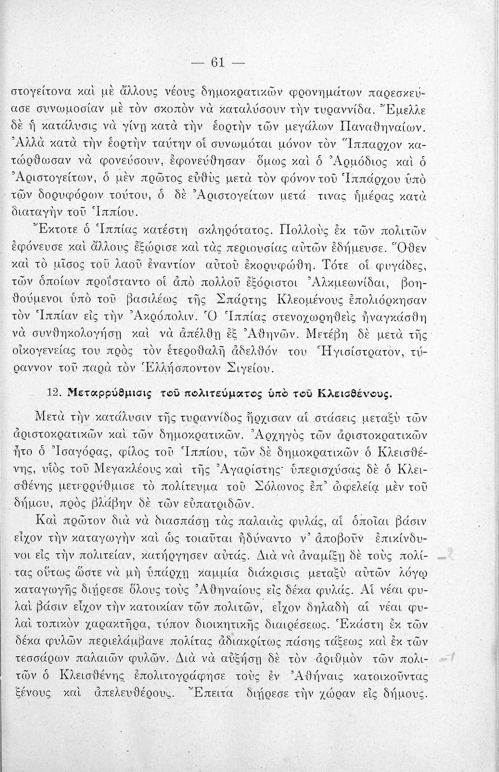 Σχολικό εγχειρίδιο Ιστορίας Α΄ Γυμνασίου που καλύπτει την περίοδο από τους προϊστορικούς χρόνους ως τις μεταρρυθμίσεις του Κλεισθένη. Περιέχει και εκτενή αναφορά στην ανάπτυξη των γραμμάτων, των τεχνών και του