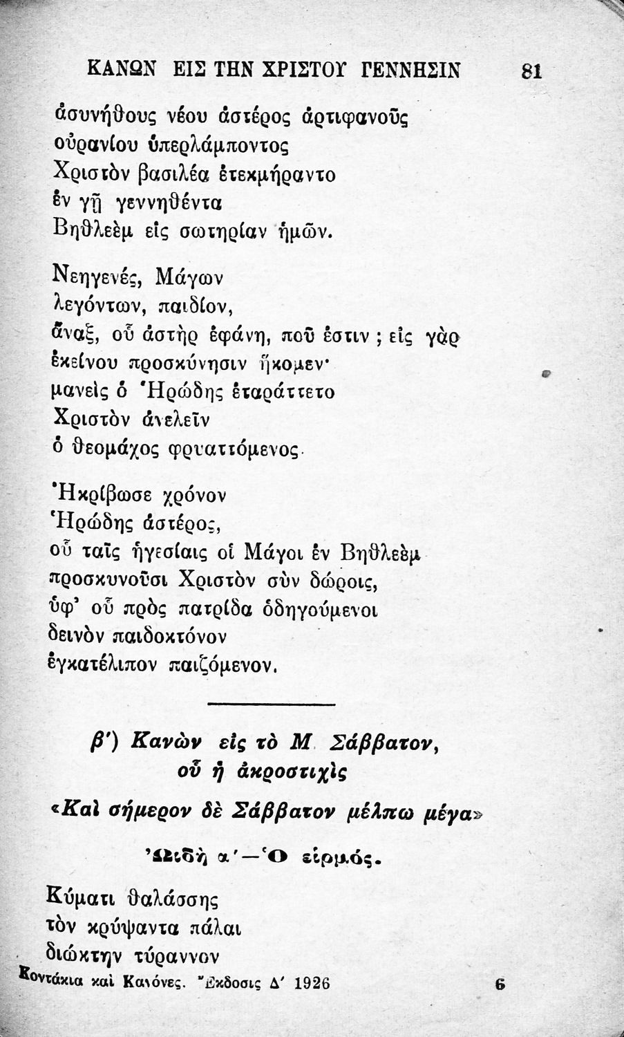 Σχετιζόμενοι όροι:  κοντάκια, κανόνες, Ρωμανός