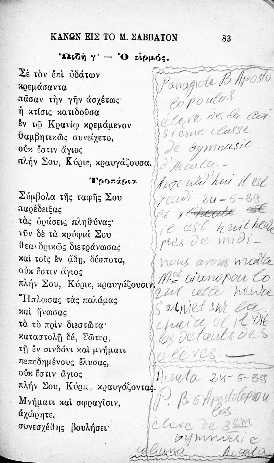 Τάξη:  Α' Γυμνάσιου / Β' Γυμνάσιου / Ανώτερα Παρθεναγωγεία / Α' Διδασκαλείου