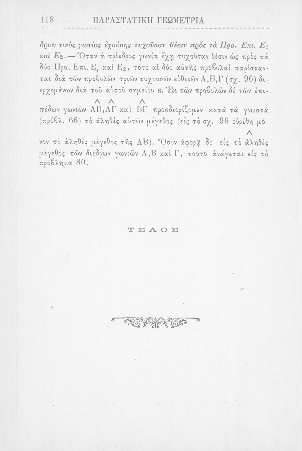 Παραστατική γεωμετρία περί ορθής προβολής σημείου, ευθείας και επιπέδου και περί των προβολικών και μετρικών σχέσεων μεταξύ των σχημάτων τούτων