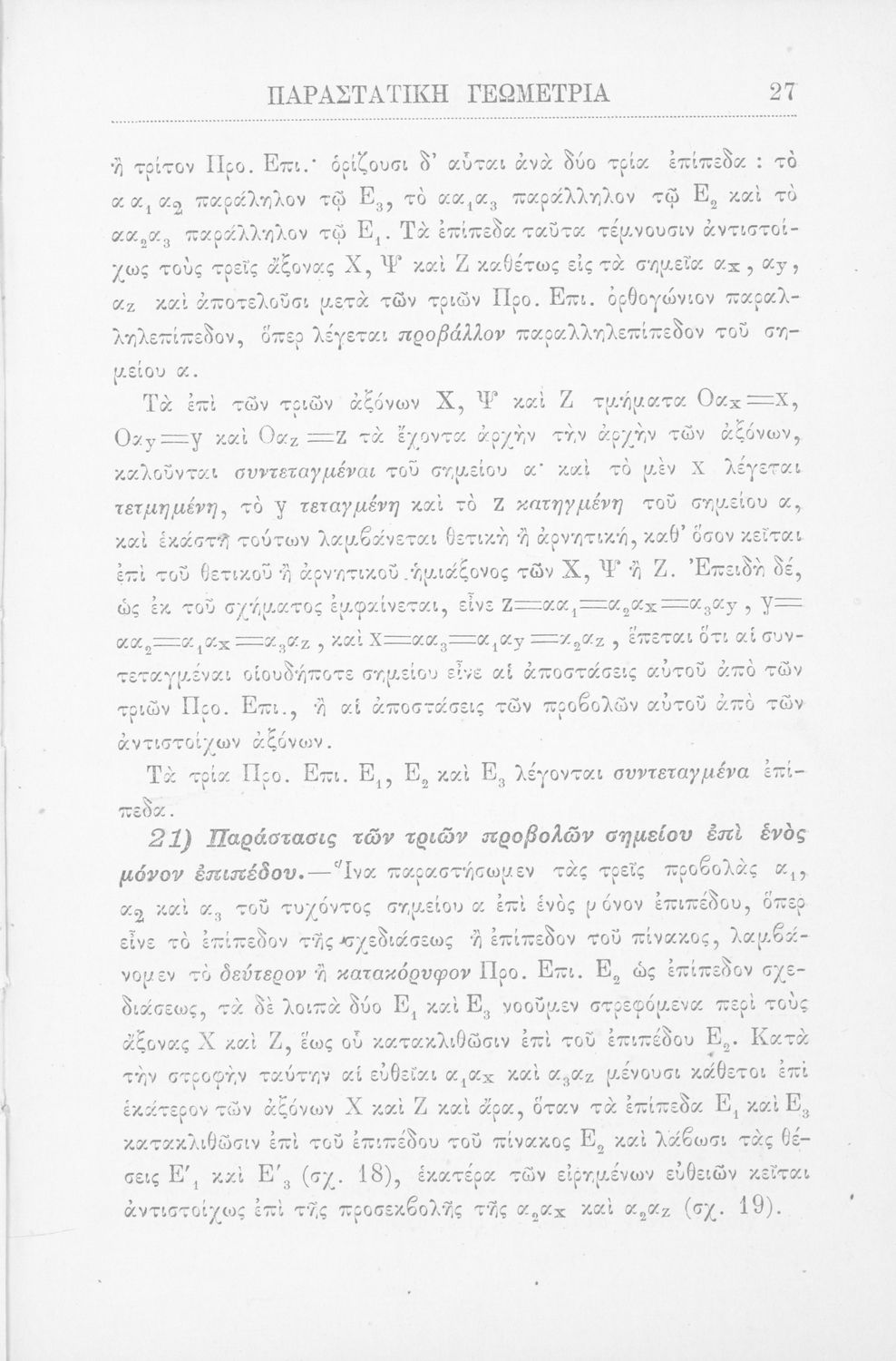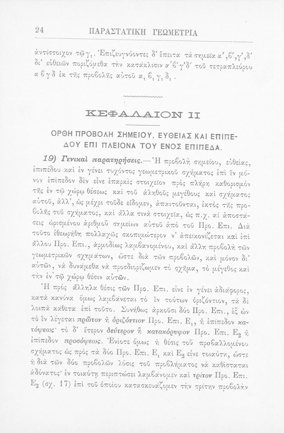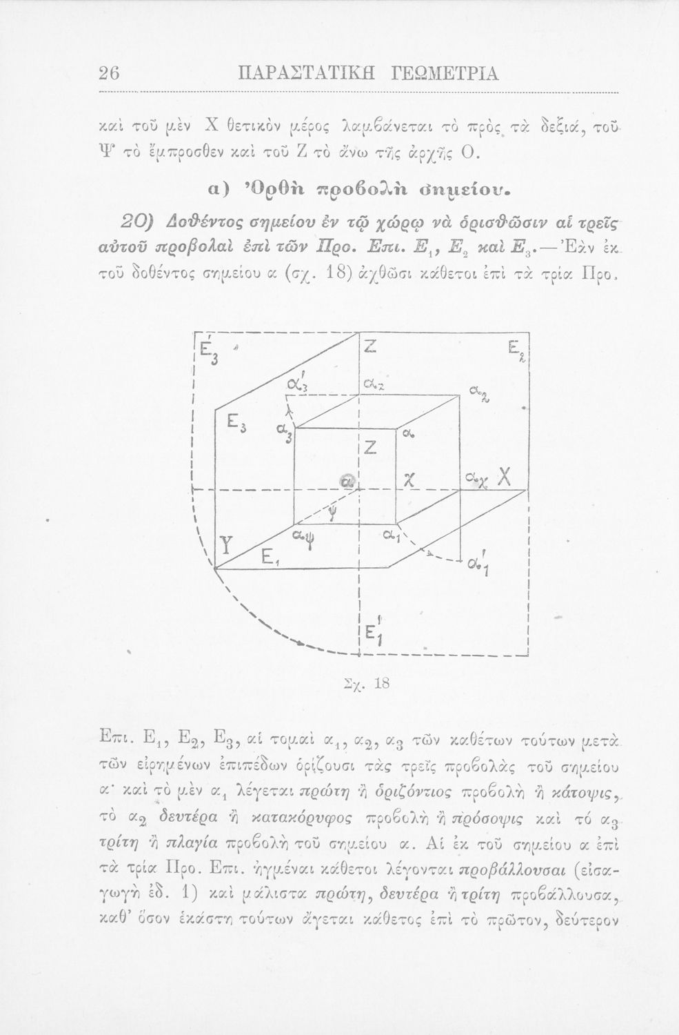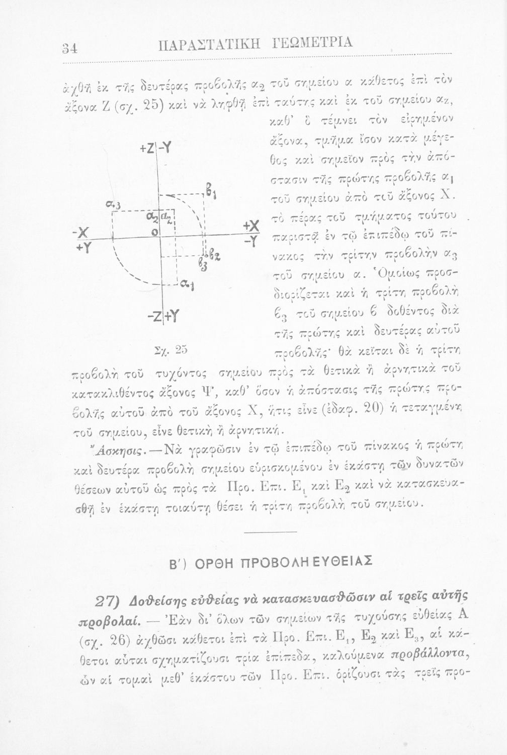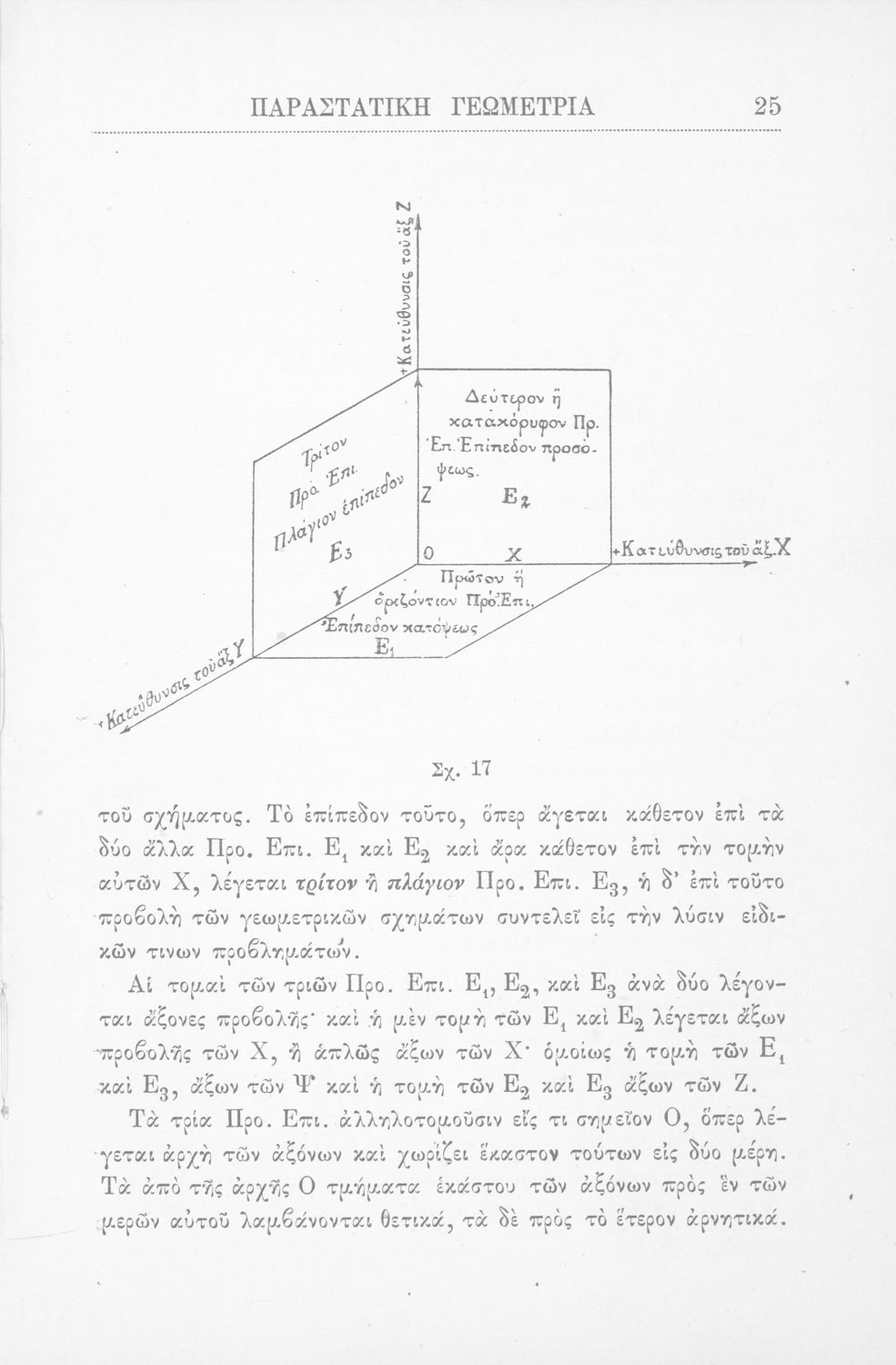 Παραστατική γεωμετρία περί ορθής προβολής σημείου, ευθείας και επιπέδου και περί των προβολικών και μετρικών σχέσεων μεταξύ των σχημάτων τούτων