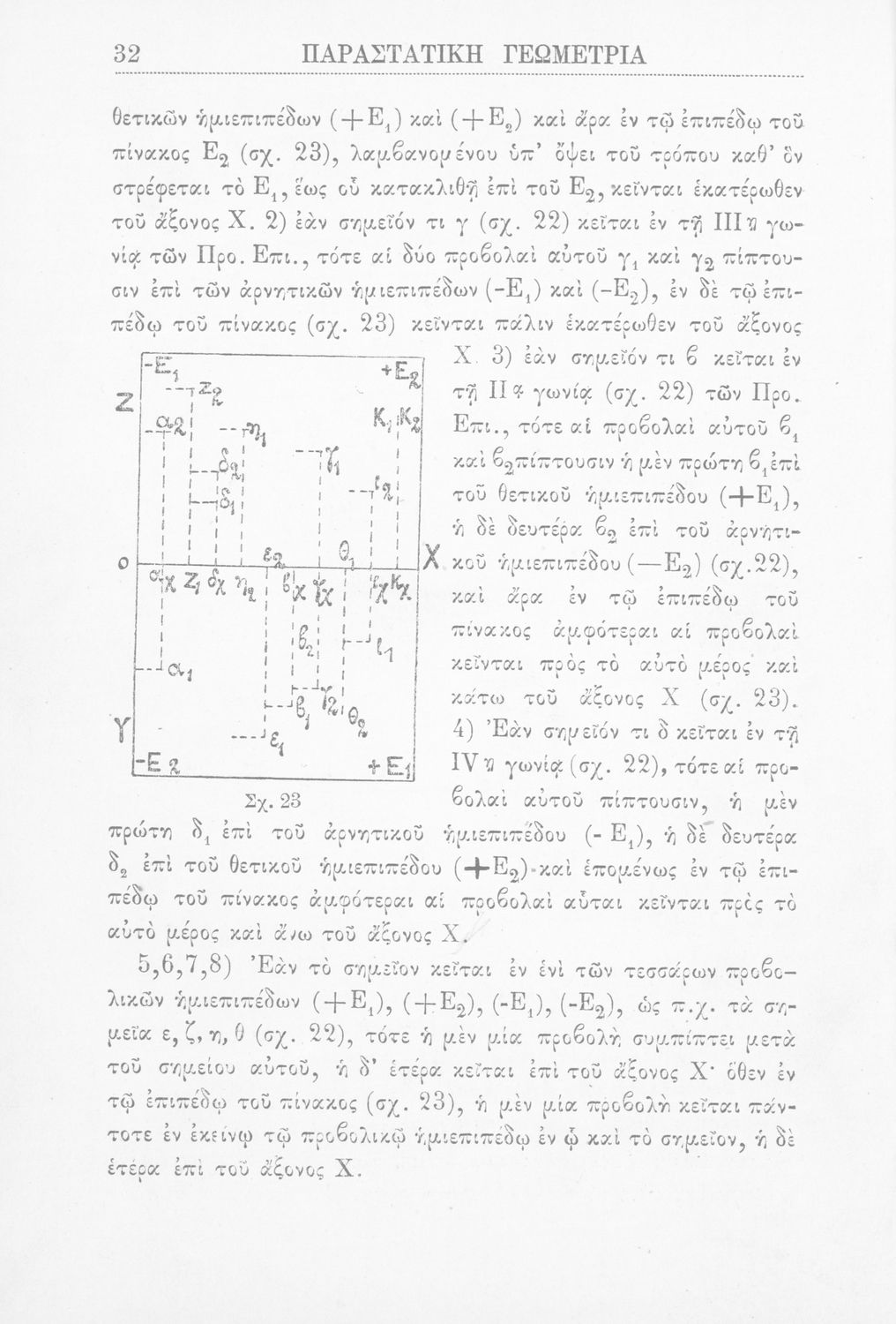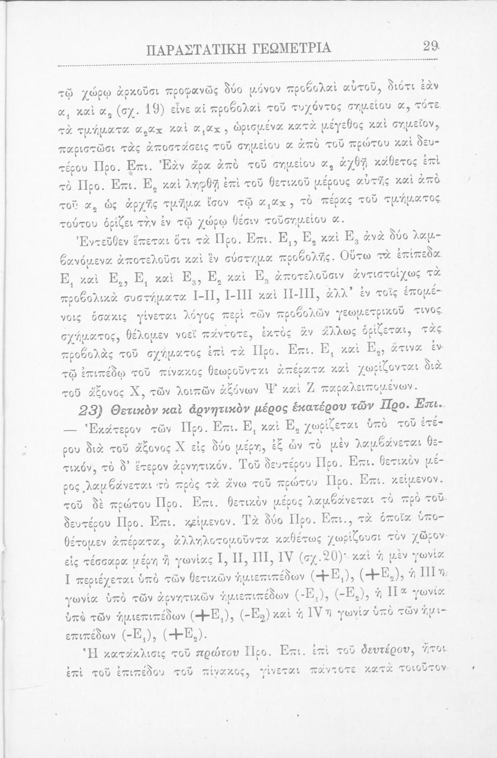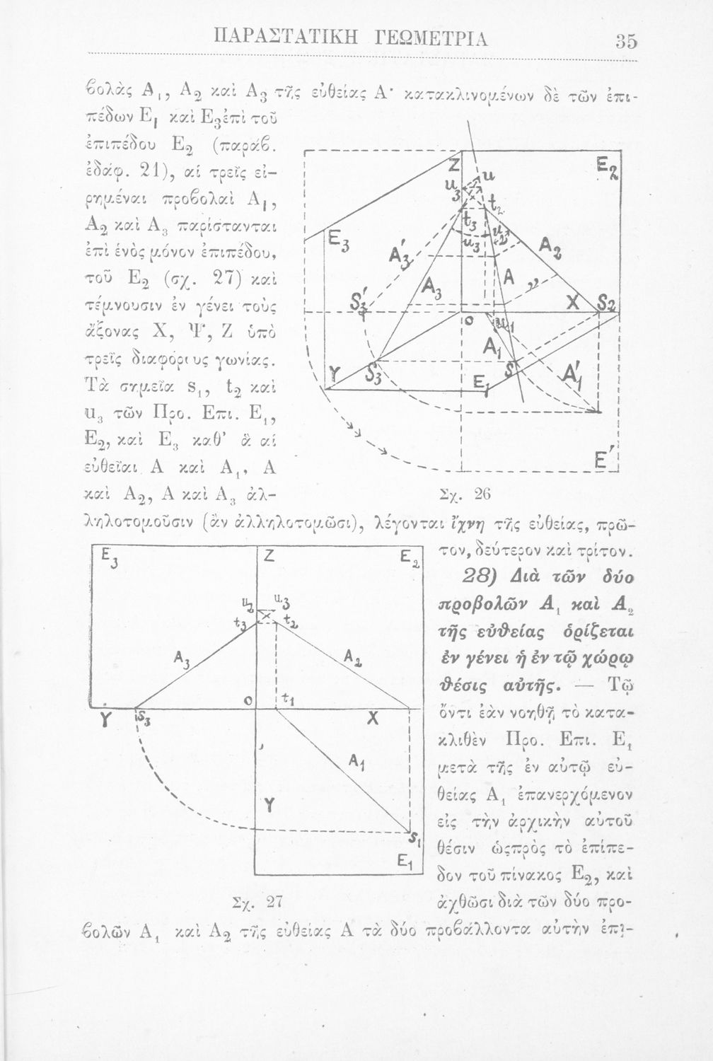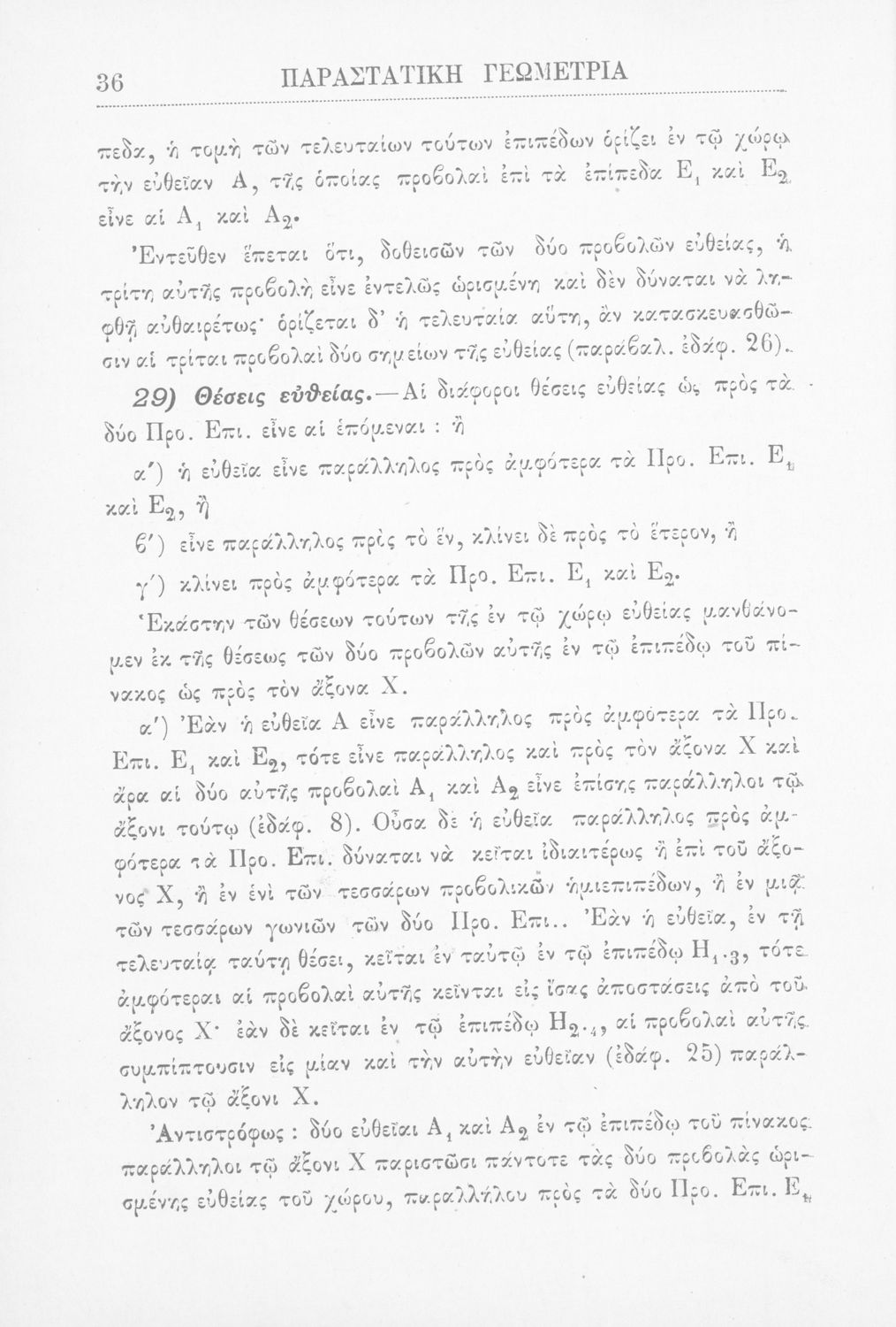 Παραστατική γεωμετρία περί ορθής προβολής σημείου, ευθείας και επιπέδου και περί των προβολικών και μετρικών σχέσεων μεταξύ των σχημάτων τούτων