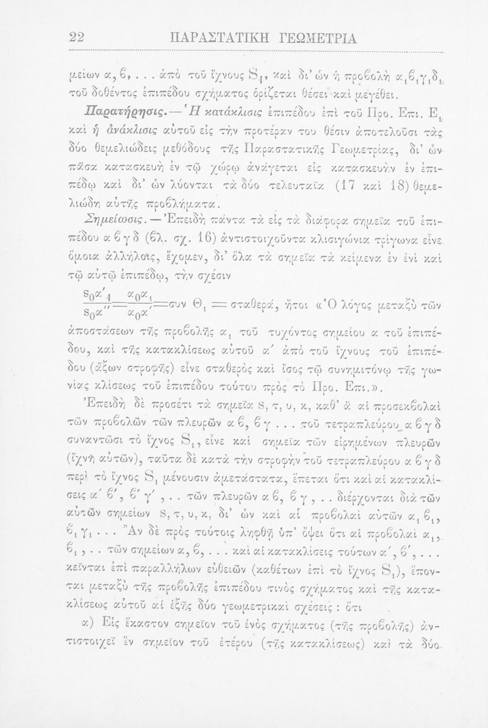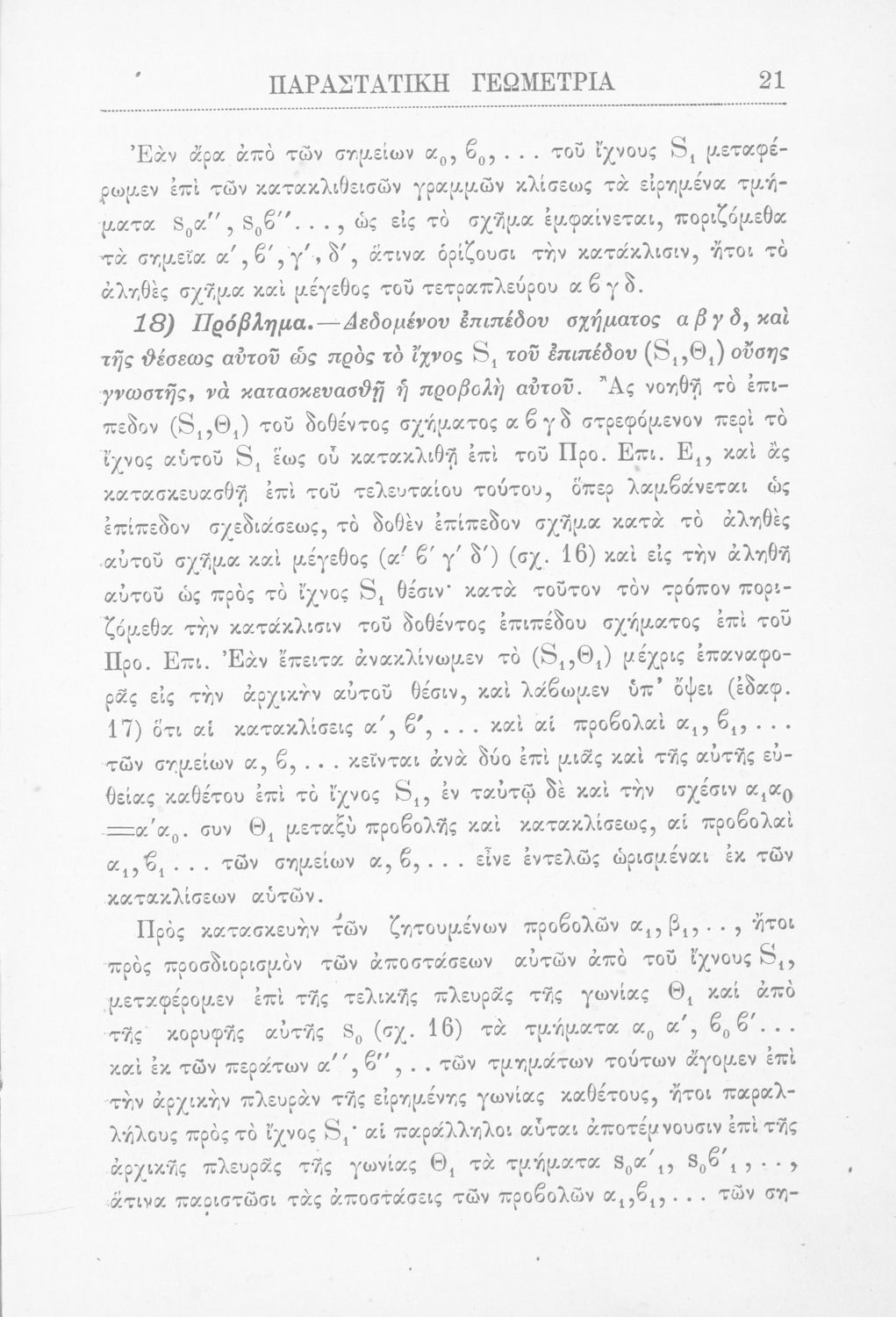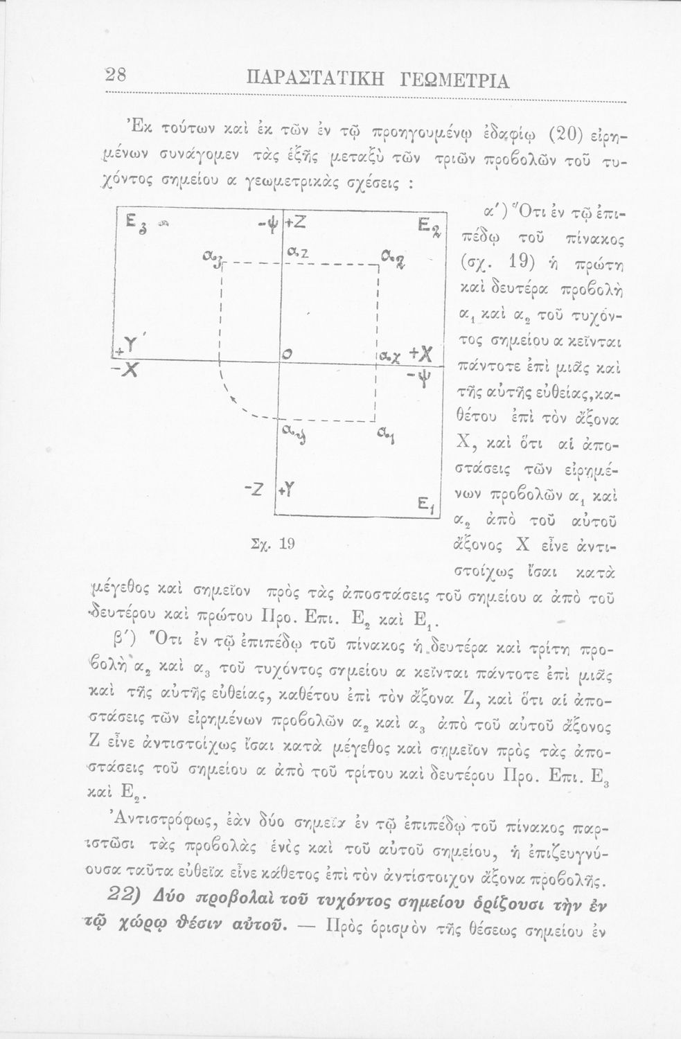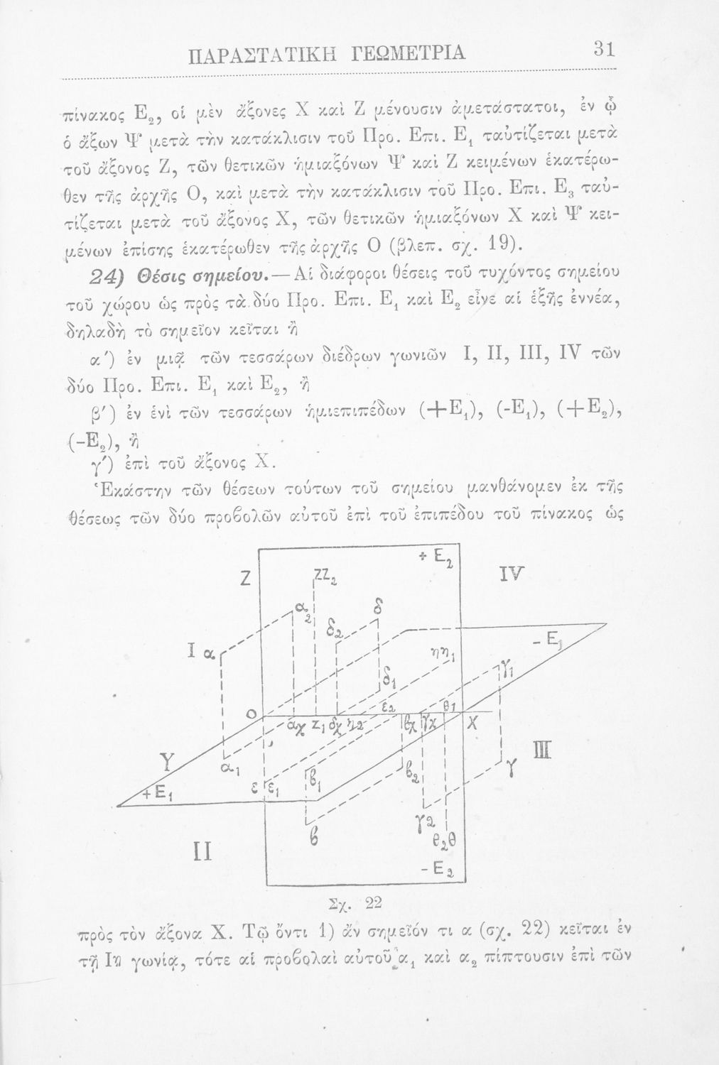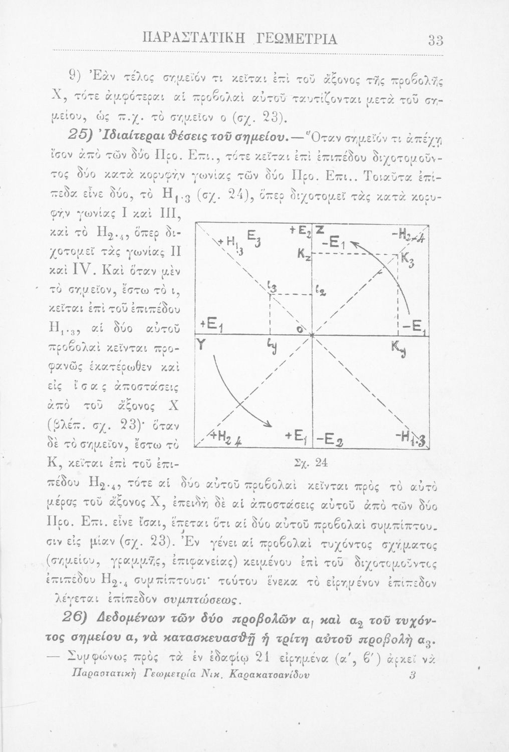 Παραστατική γεωμετρία περί ορθής προβολής σημείου, ευθείας και επιπέδου και περί των προβολικών και μετρικών σχέσεων μεταξύ των σχημάτων τούτων