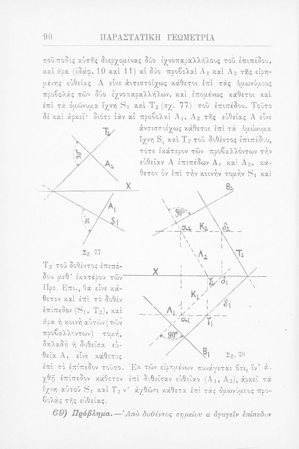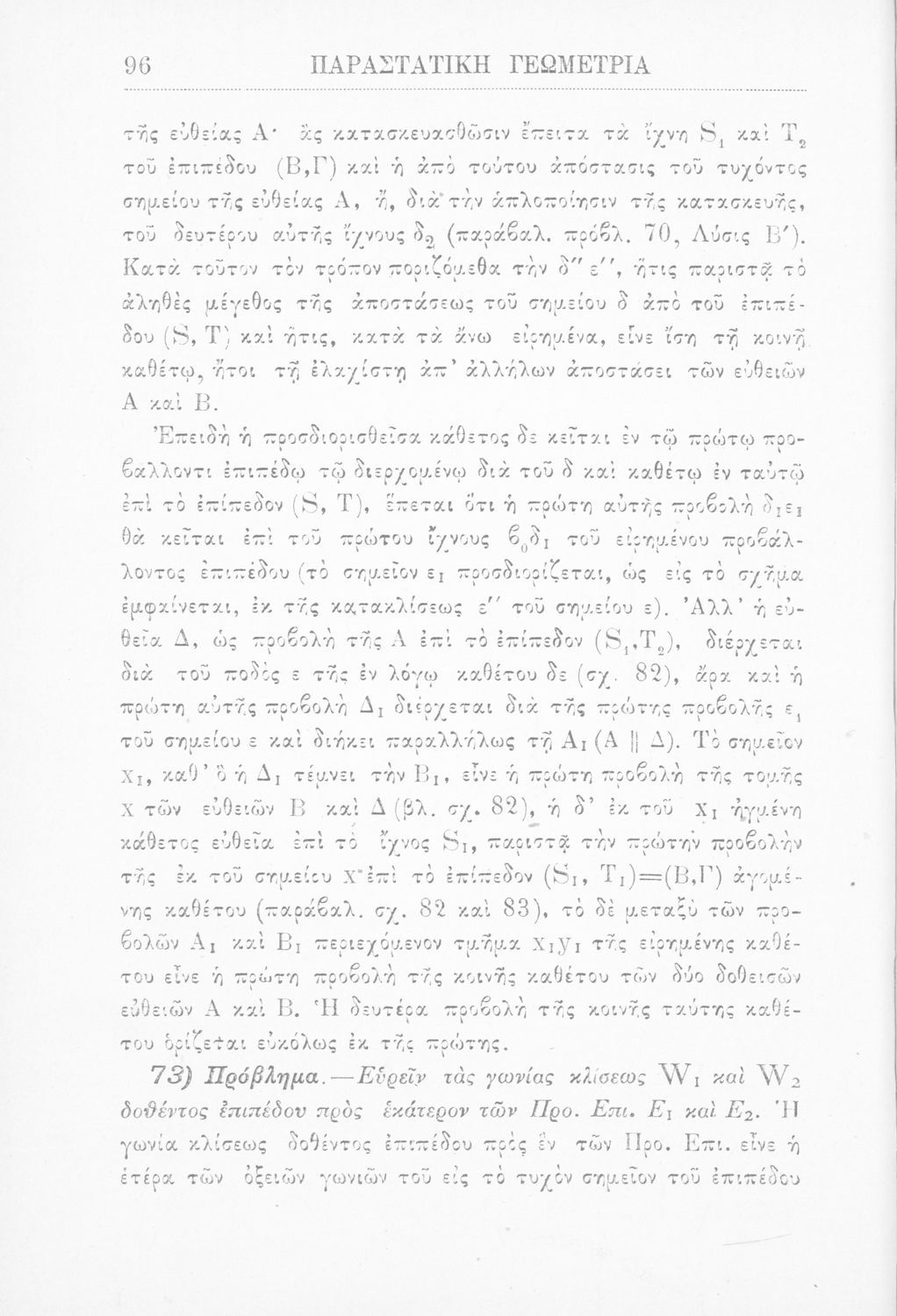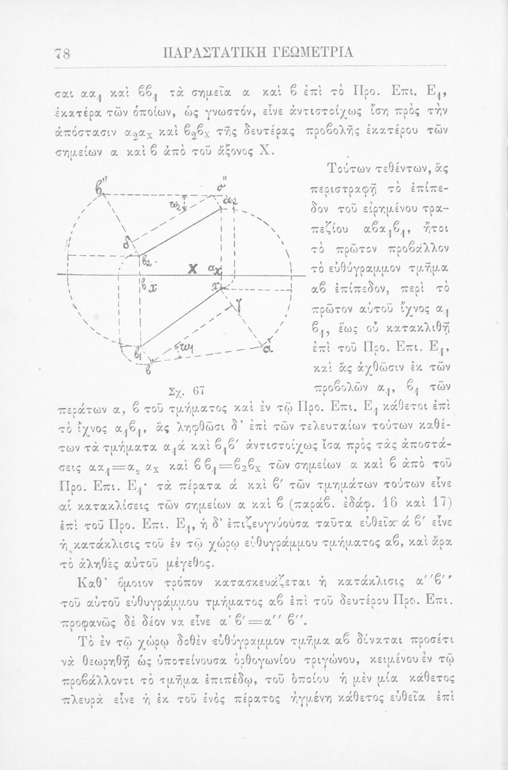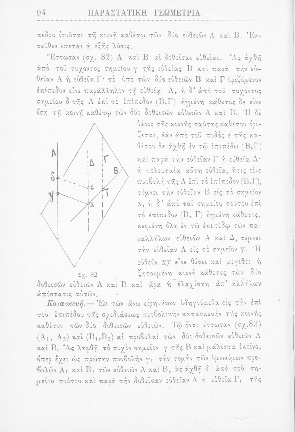 Παραστατική γεωμετρία περί ορθής προβολής σημείου, ευθείας και επιπέδου και περί των προβολικών και μετρικών σχέσεων μεταξύ των σχημάτων τούτων