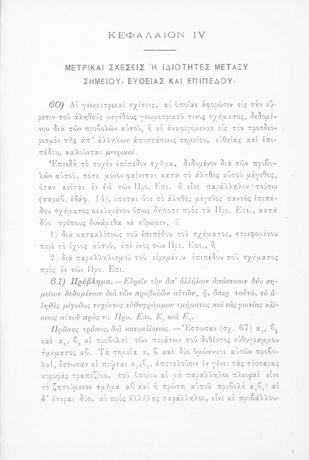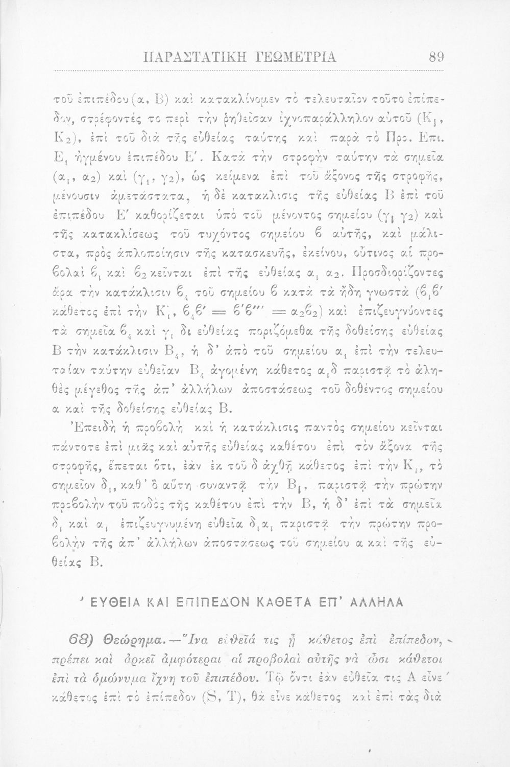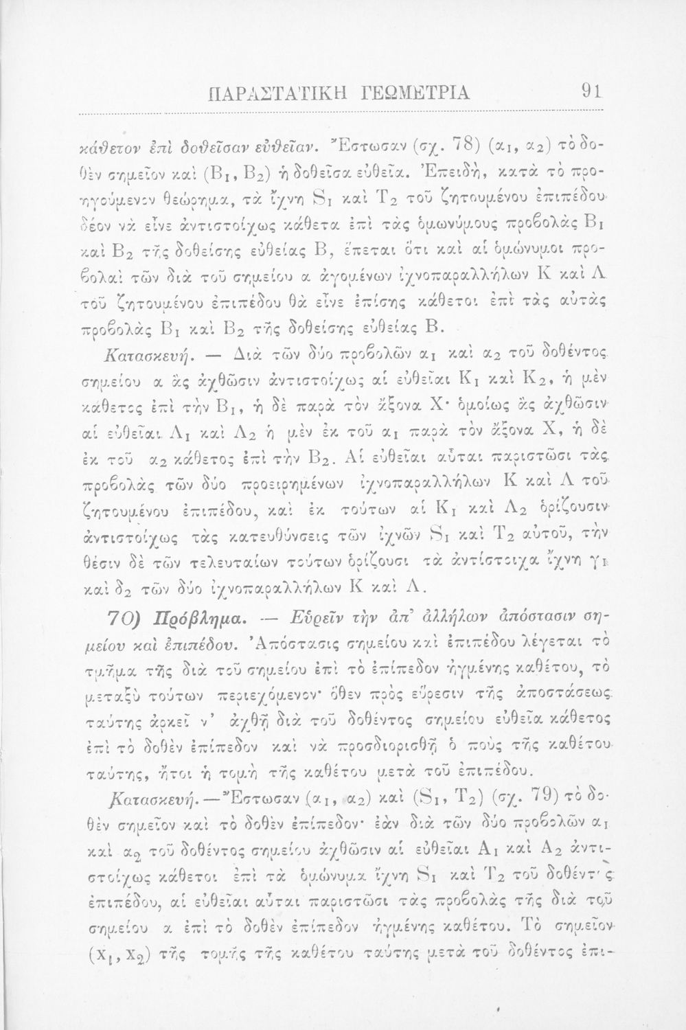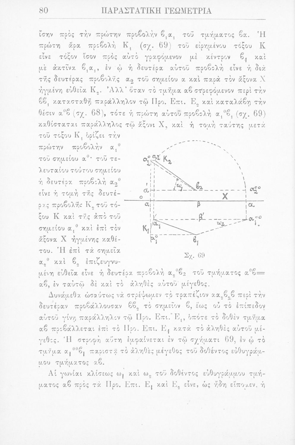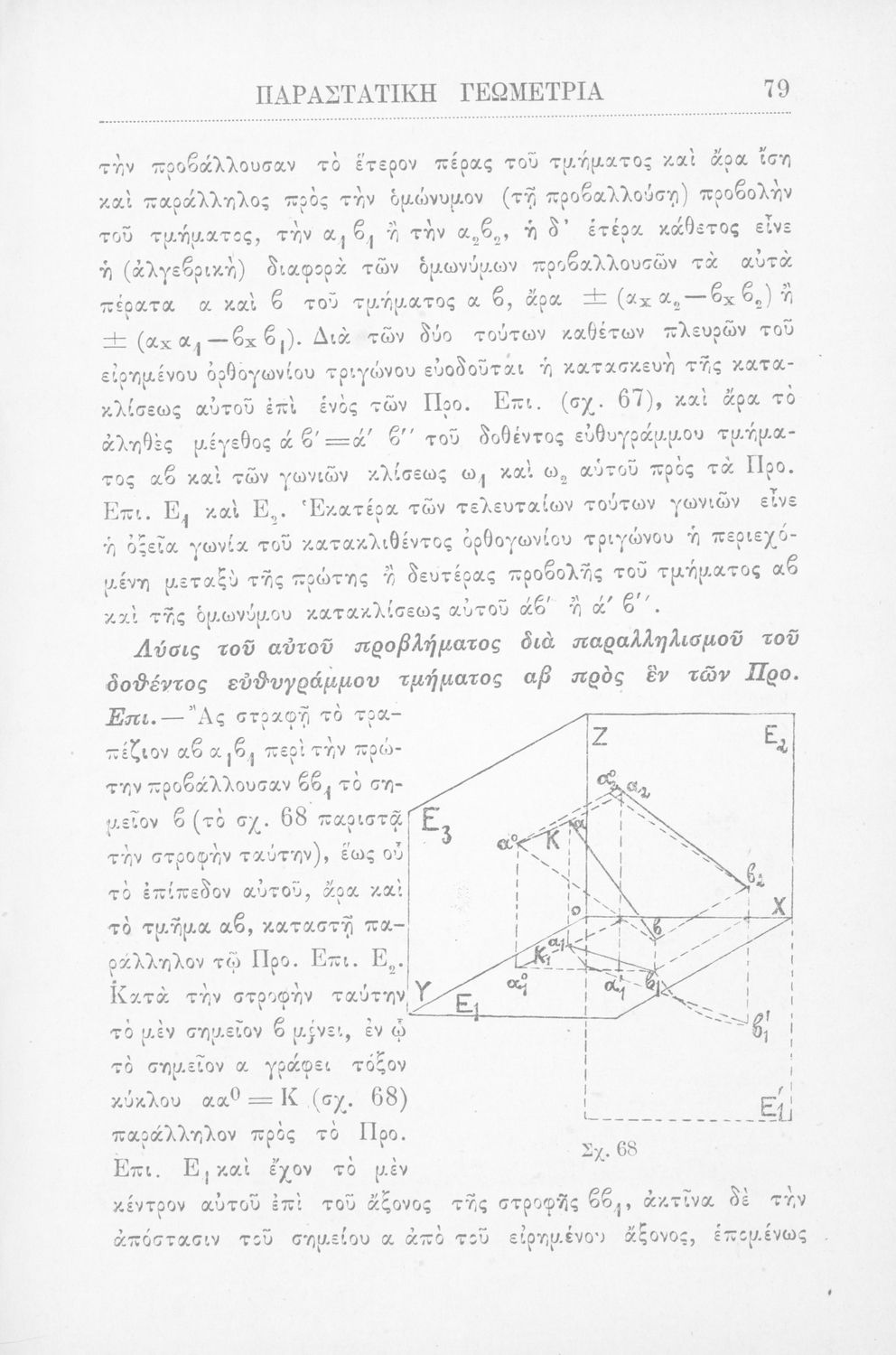 Παραστατική γεωμετρία περί ορθής προβολής σημείου, ευθείας και επιπέδου και περί των προβολικών και μετρικών σχέσεων μεταξύ των σχημάτων τούτων