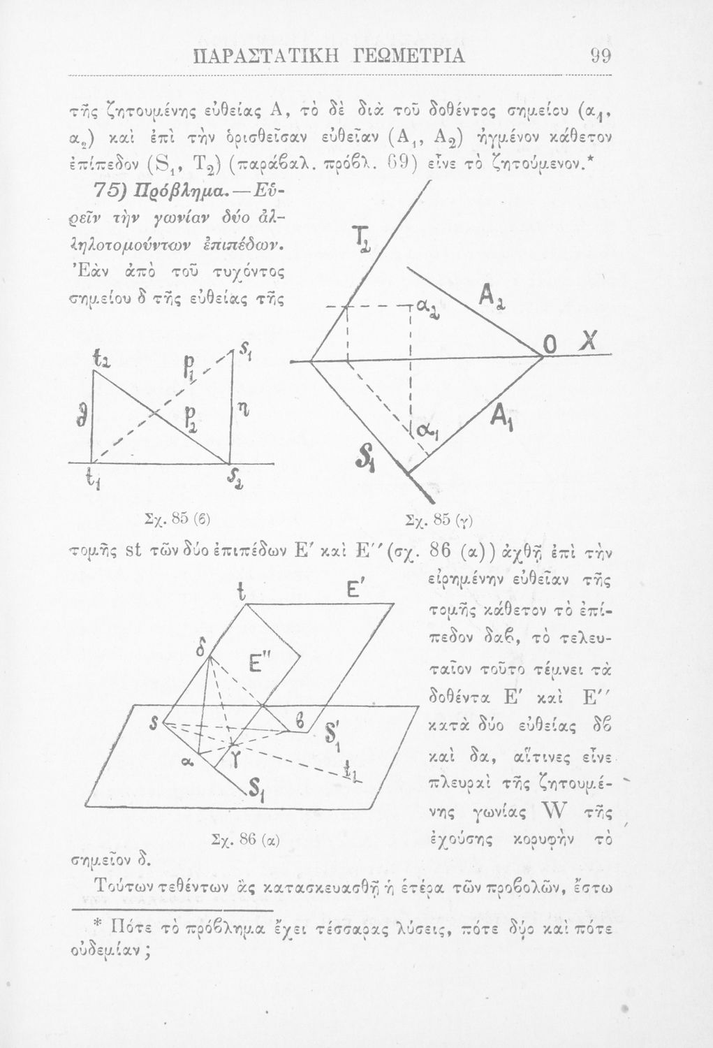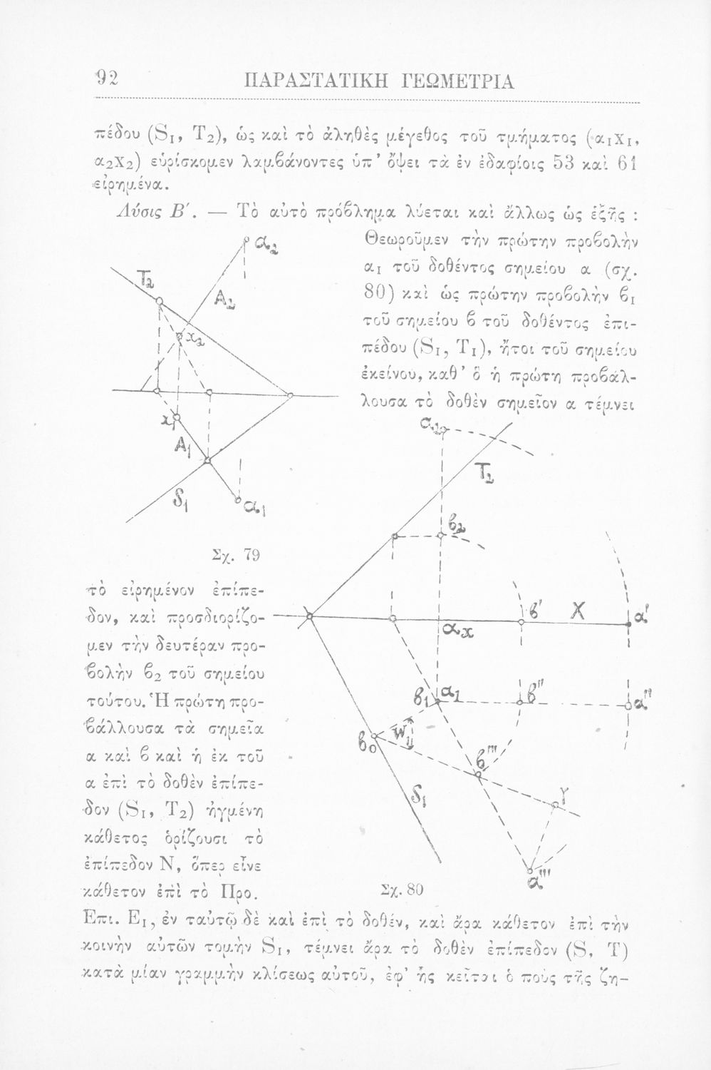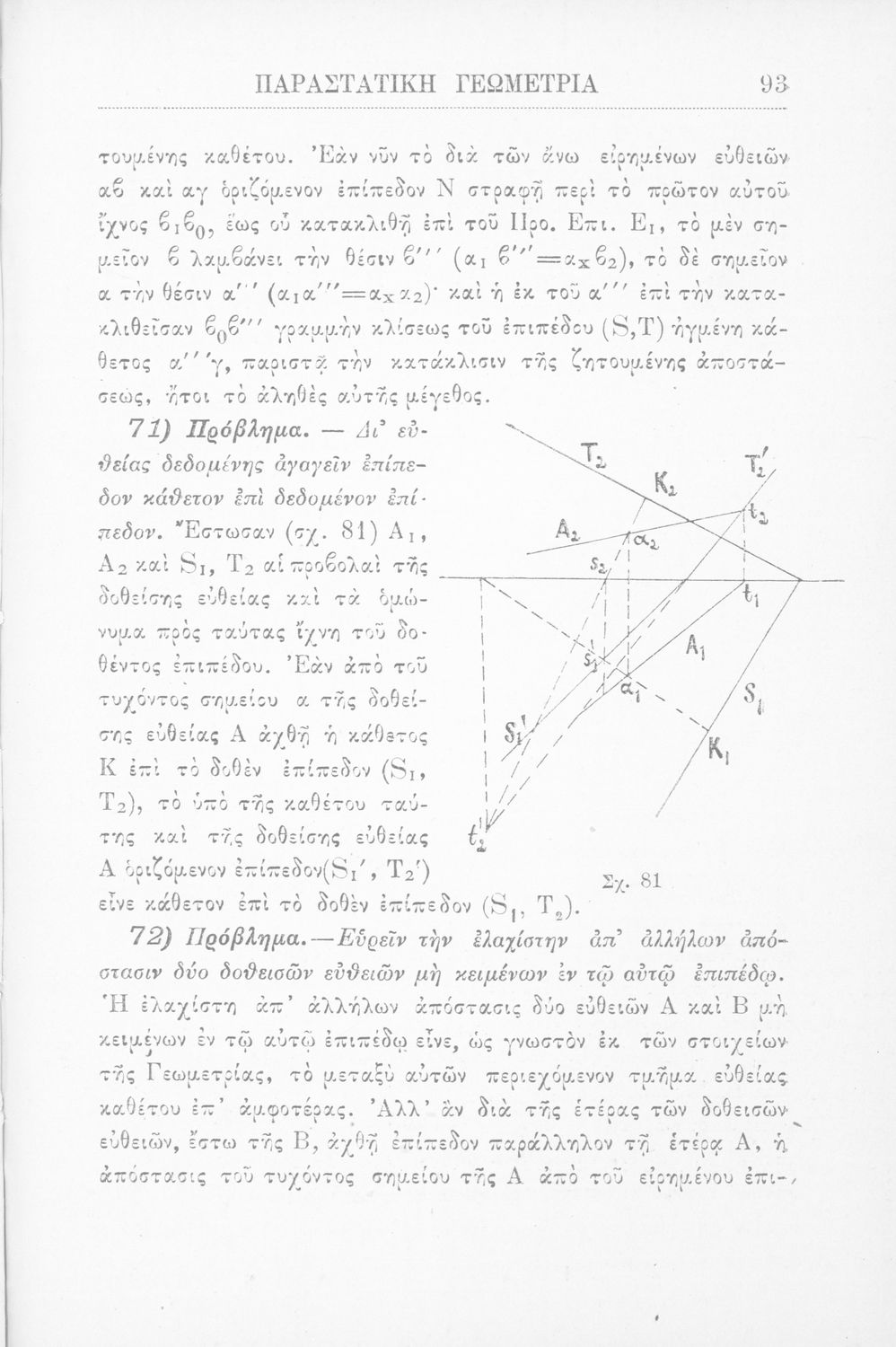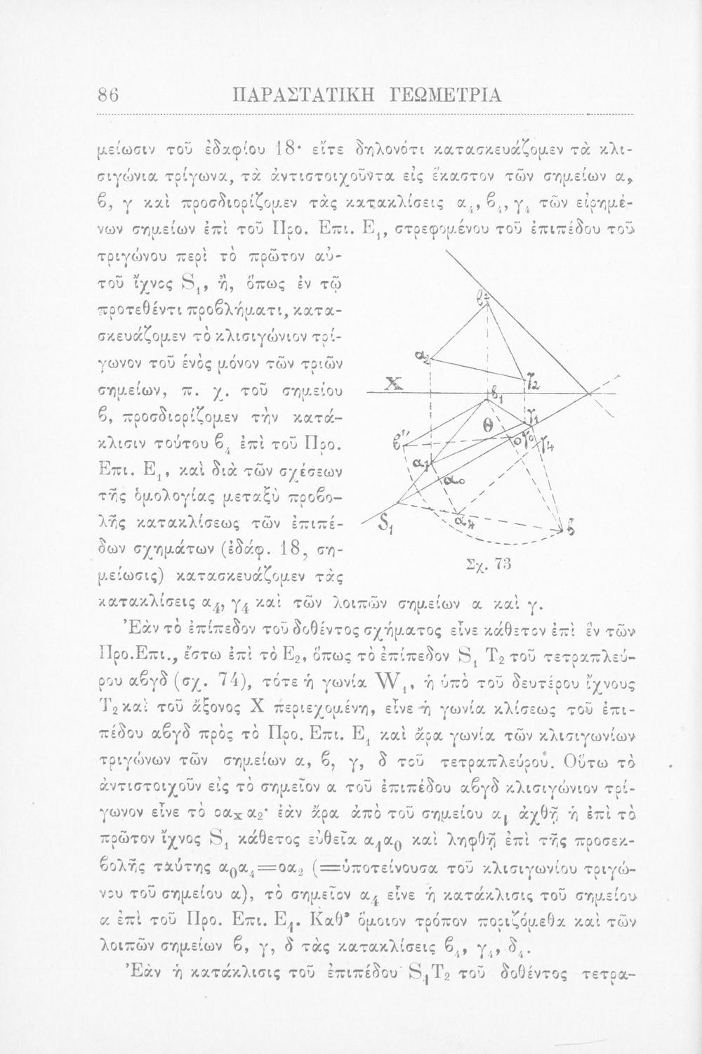 Παραστατική γεωμετρία περί ορθής προβολής σημείου, ευθείας και επιπέδου και περί των προβολικών και μετρικών σχέσεων μεταξύ των σχημάτων τούτων