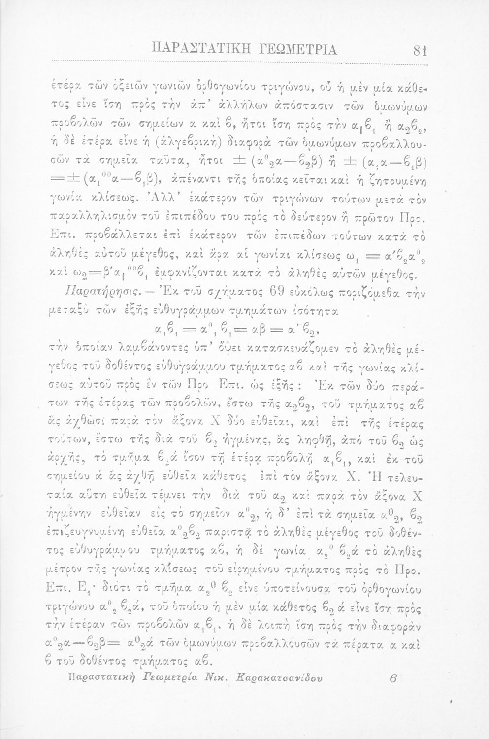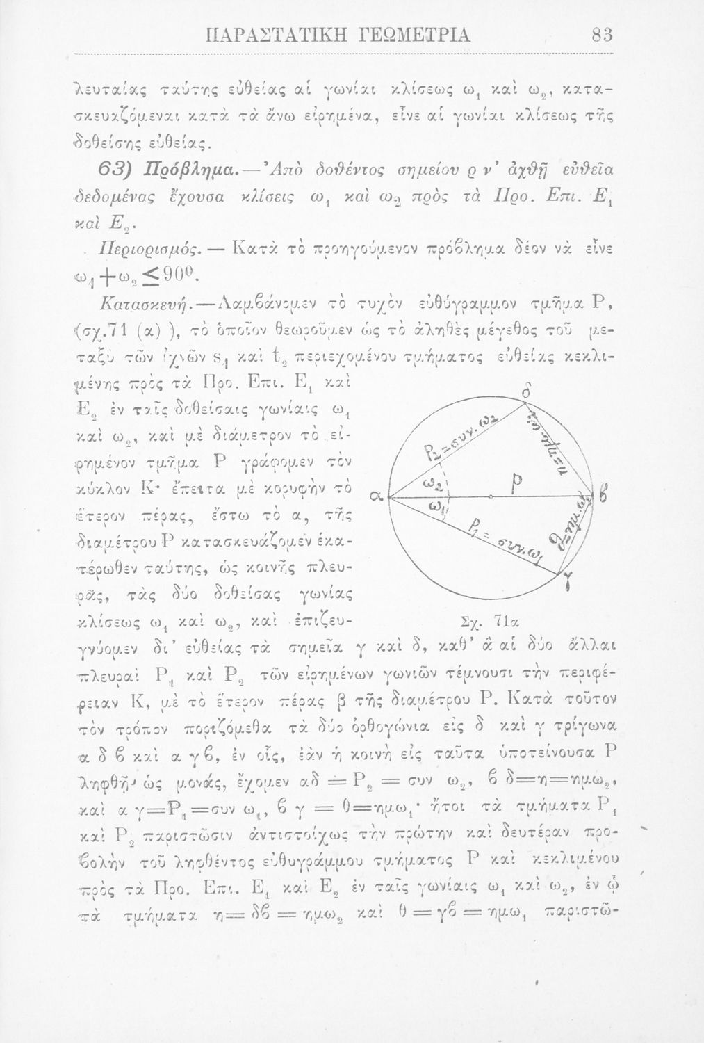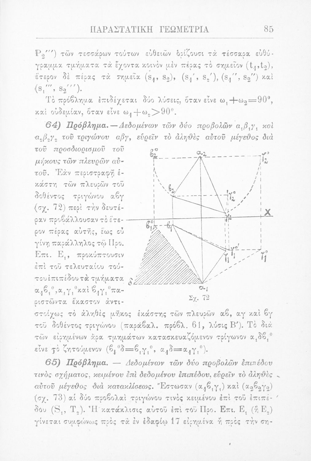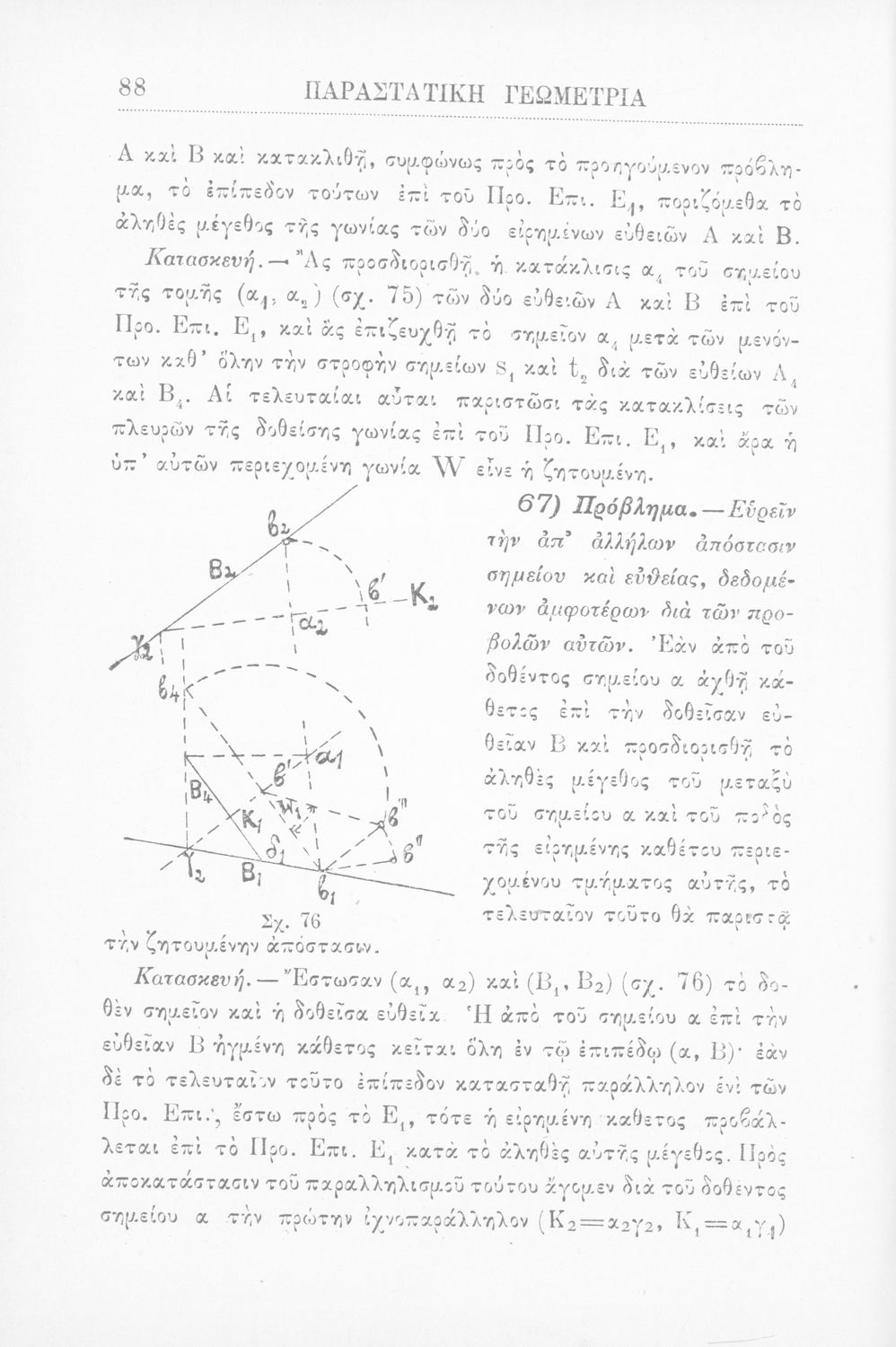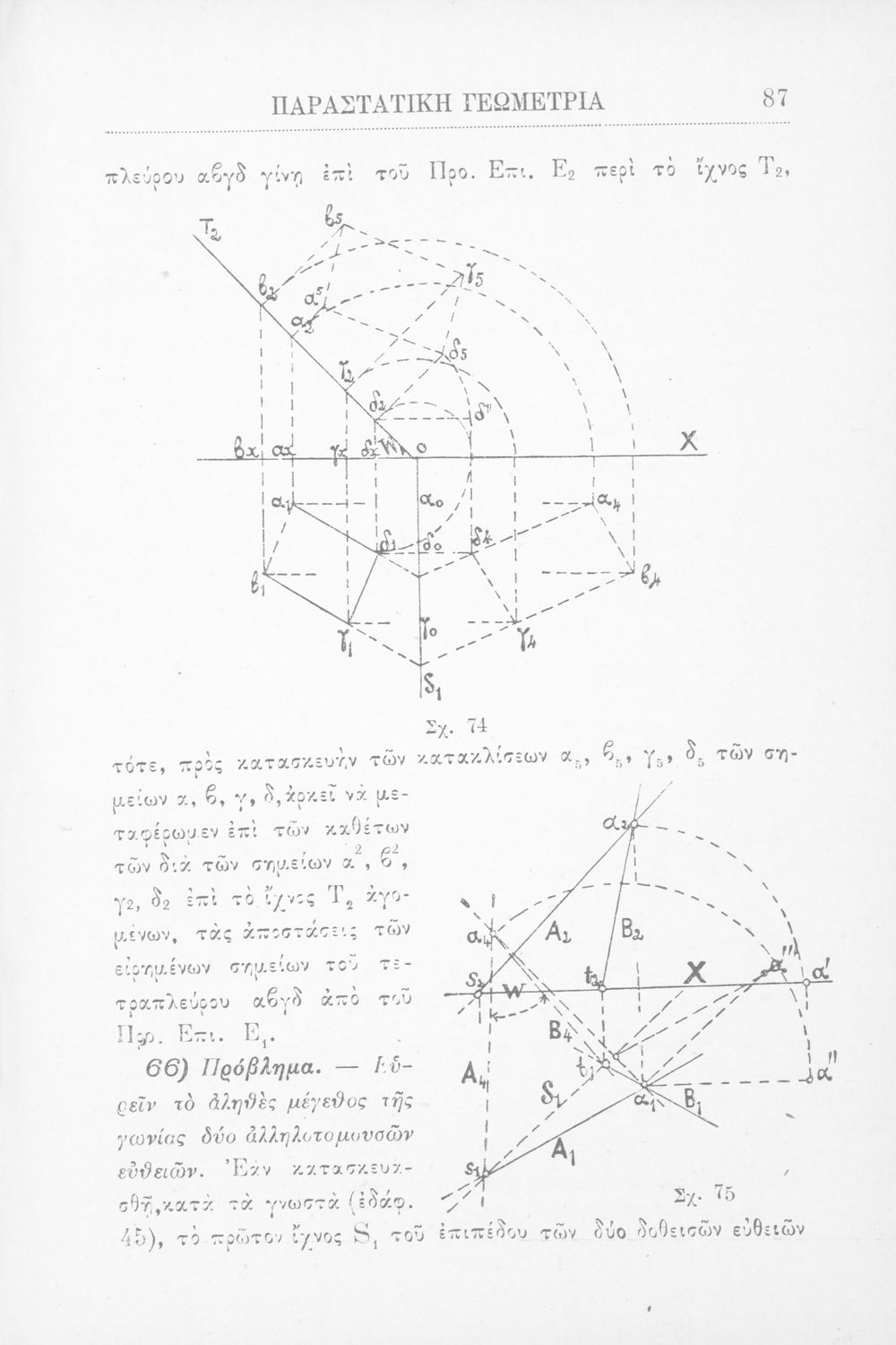 Παραστατική γεωμετρία περί ορθής προβολής σημείου, ευθείας και επιπέδου και περί των προβολικών και μετρικών σχέσεων μεταξύ των σχημάτων τούτων