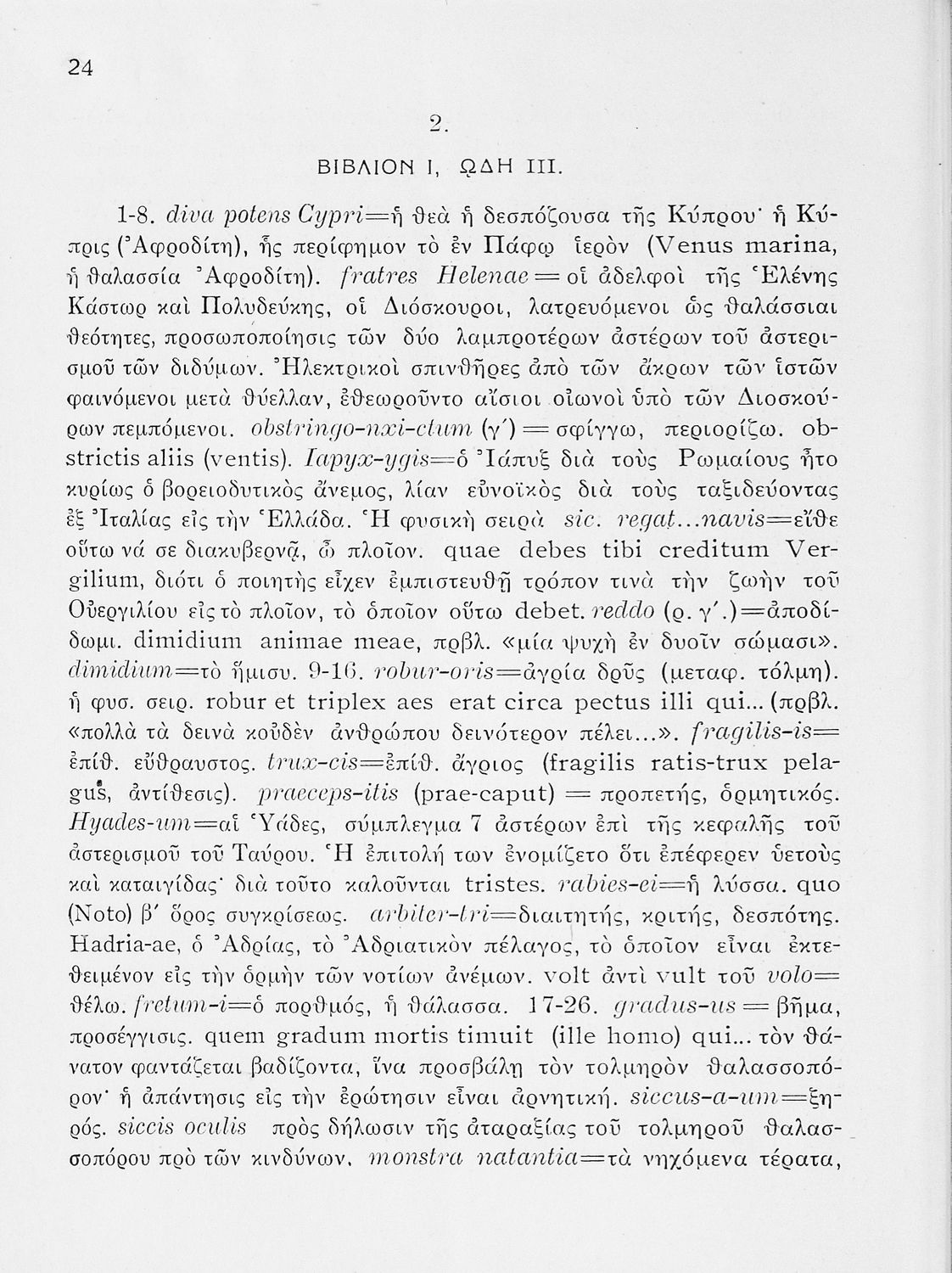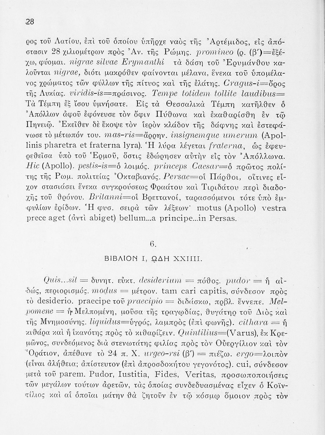 Σχολικό εγχειρίδιο Λατινικών ΣΤ΄ Γυμνασίου που περιέχει βιογραφικό σημείωμα του Οράτιου, αποσπάσματα από τις Ωδές, εισαγωγικά σχόλια και ερμηνευτικές σημειώσεις.