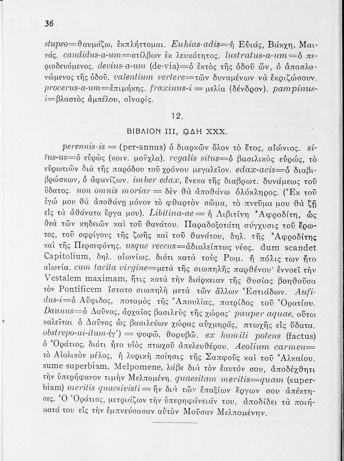Σχολικό εγχειρίδιο Λατινικών της ΣΤ ' τάξις Γυμνασίων παλαιού τύπου. Το βιβλίο περιέχει επιλογές από το έργο του Οράτιου, Ωδαί. Αρχίζει με μια εισαγωγή για τη ζωή και το έργο του Οράτιου. Στο δεύτερο μέρος ...