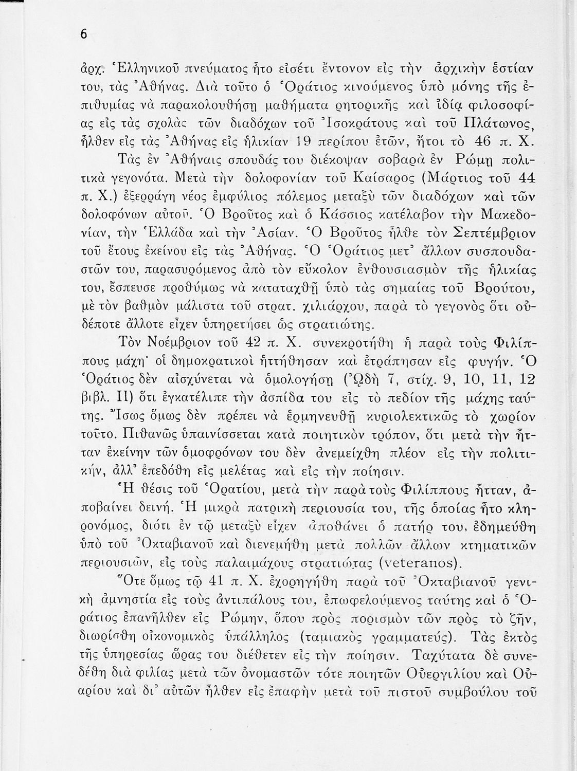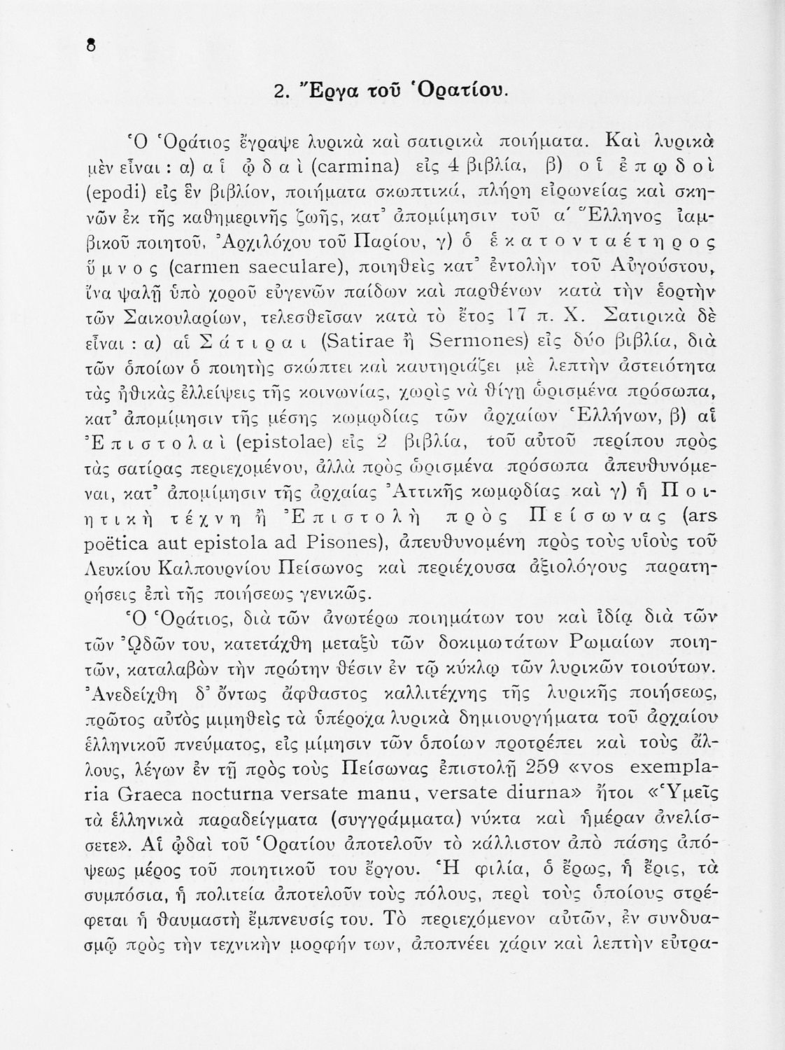 Σχολικό εγχειρίδιο Λατινικών ΣΤ΄ Γυμνασίου που περιέχει βιογραφικό σημείωμα του Οράτιου, αποσπάσματα από τις Ωδές, εισαγωγικά σχόλια και ερμηνευτικές σημειώσεις.