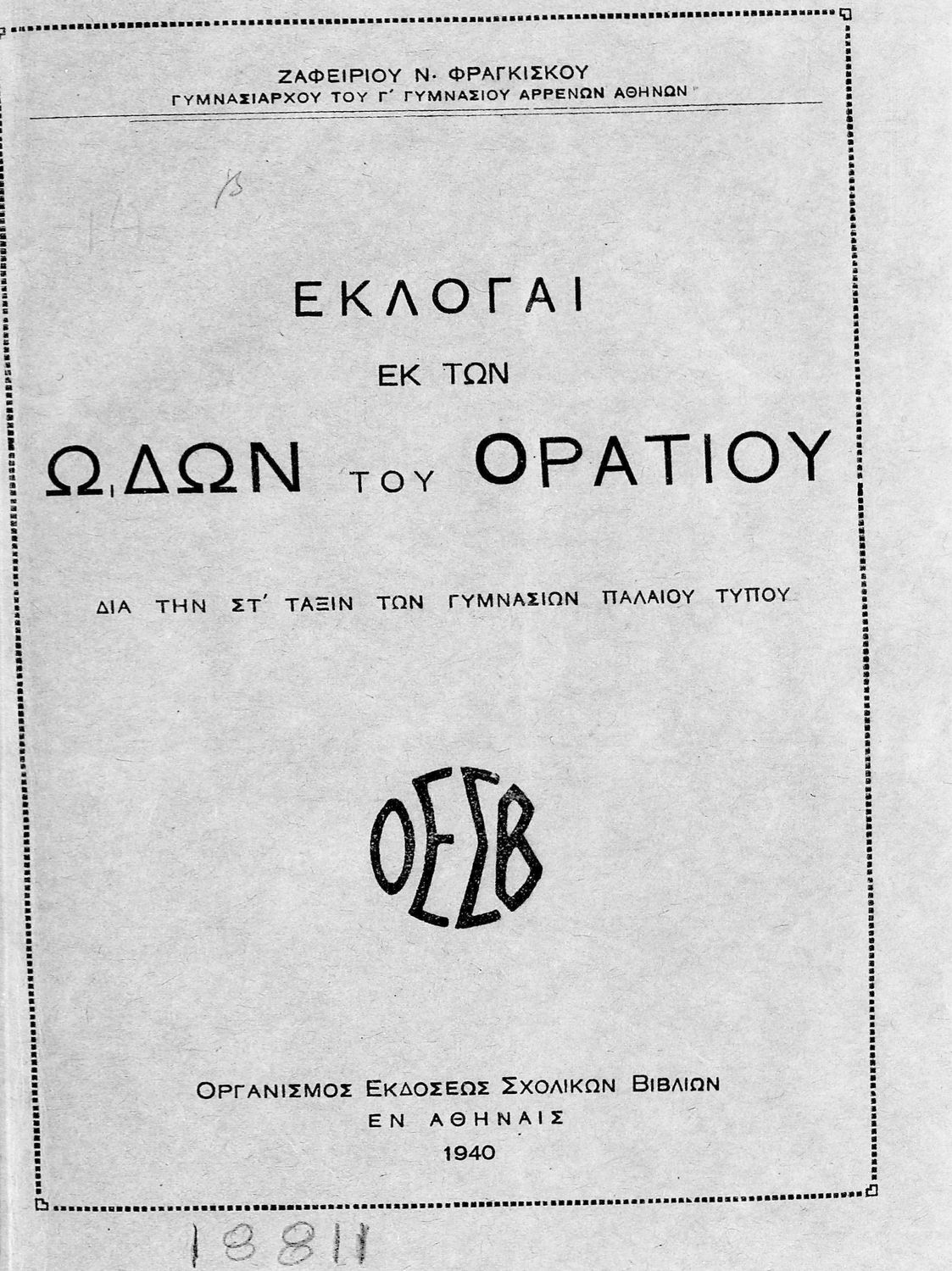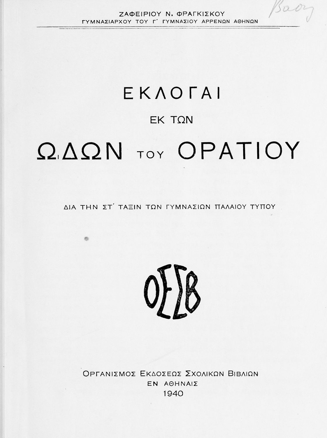 Εκδότης: Οργανισμός Εκδόσεως Σχολικών Βιβλίων Έτος έκδοσης: 1940 Τόπος έκδοσης: Αθήνα |