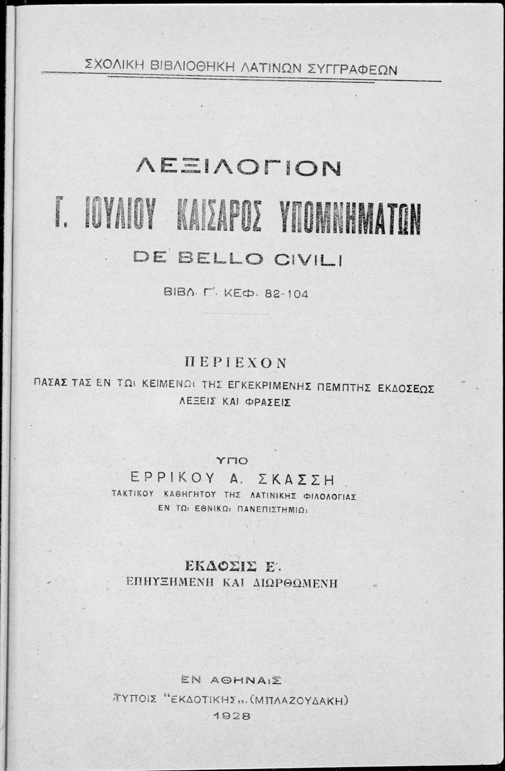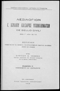 Τίτλος: Λεξιλόγιον Γ. Ιουλίου Καίσαρος υπομνήματα de bello civili βιβλ. Γ΄, κεφ. 82-104