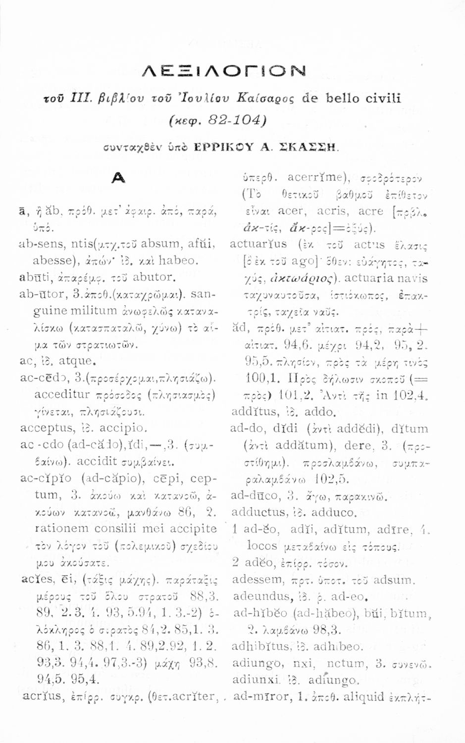 Λεξιλόγιον Γ. Ιουλίου Καίσαρος υπομνήματα de bello civili βιβλ. Γ΄, κεφ. 82-104