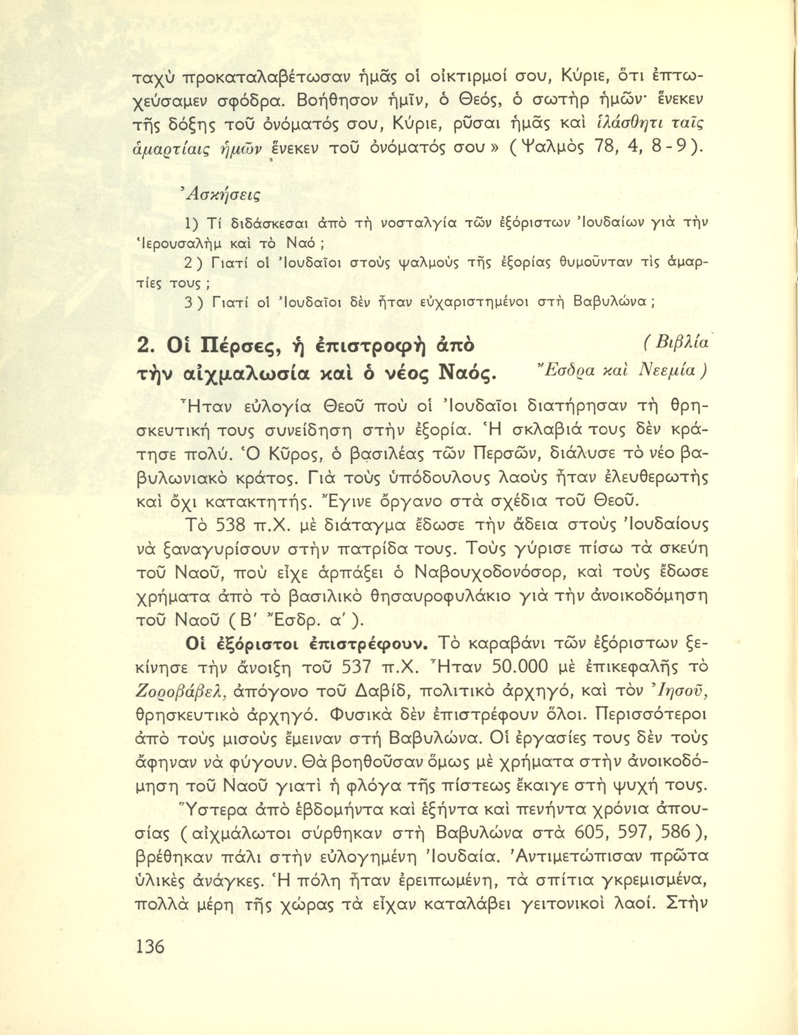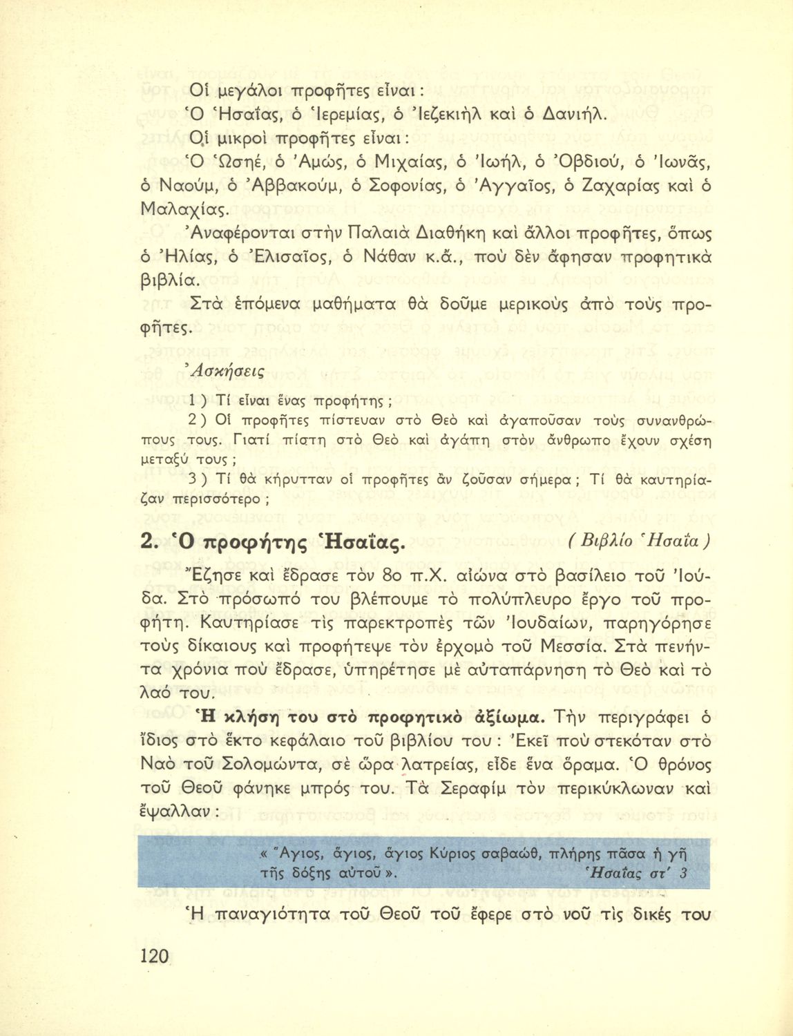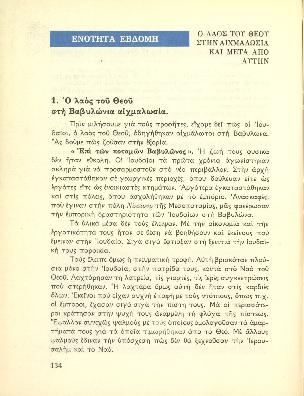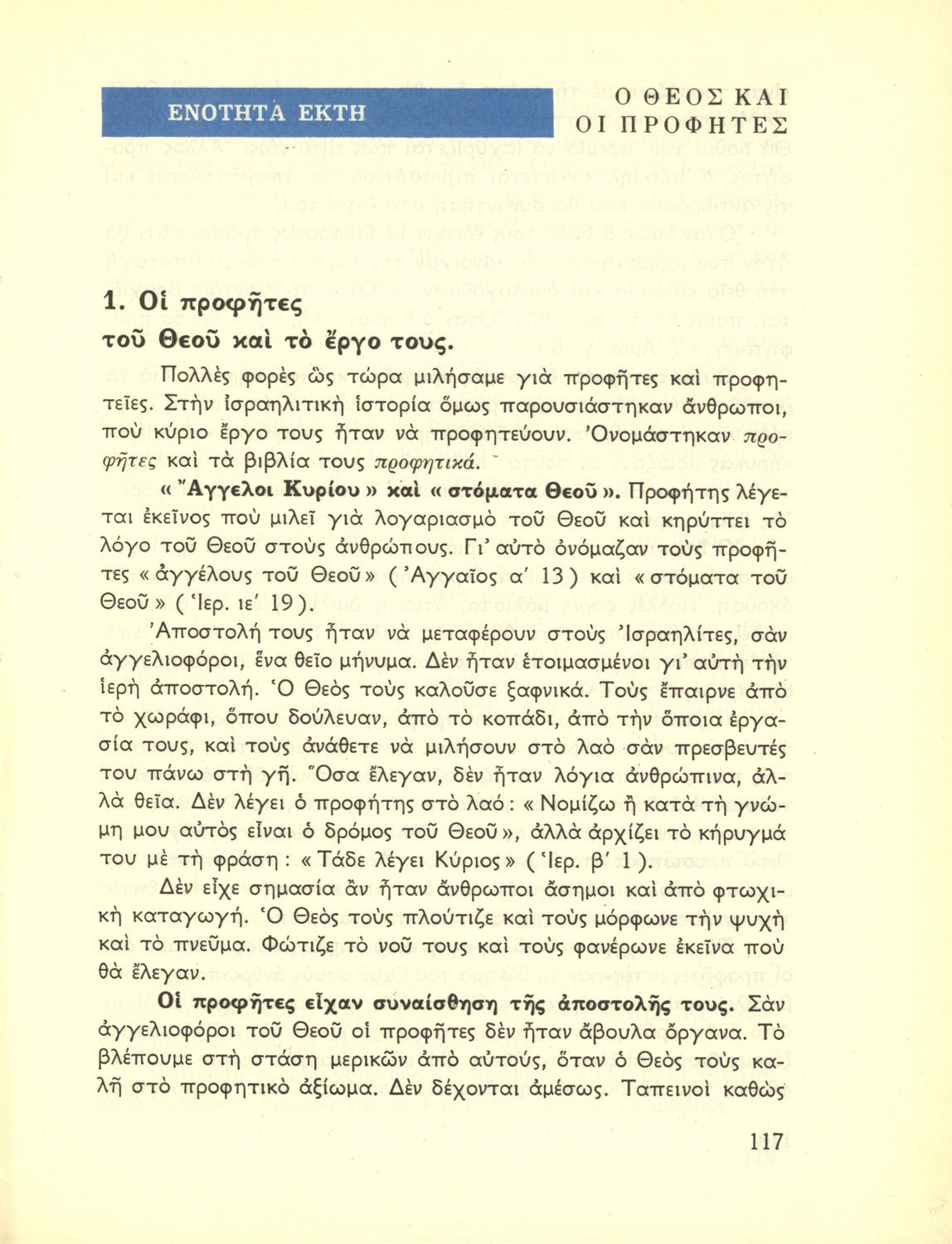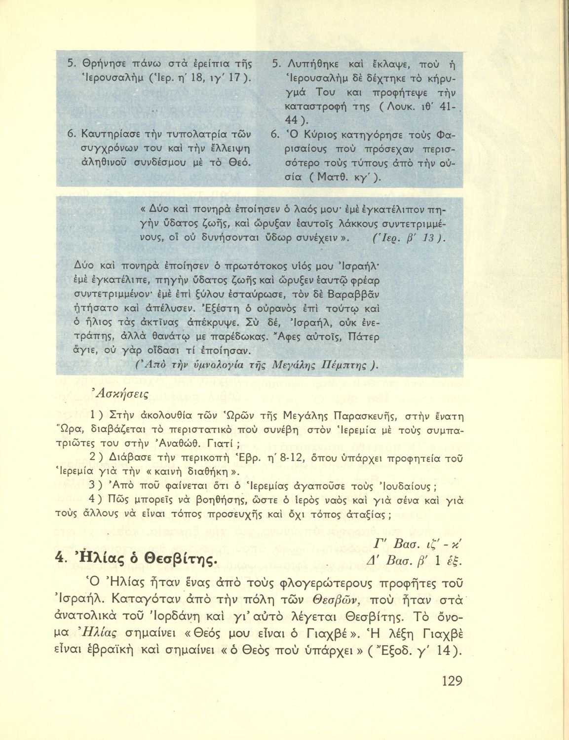 Σχολικό εγχειρίδιο Θρησκευτικών για την Ε΄ Οκταταξίου και Εξατάξιου Γυμνασίου που περιέχει εισαγωγικά σχόλια στα βιβλία της Παλαιάς και Καινής Διαθήκης, περικοπές, ερμηνευτικές και πραγματολογικές σημειώσεις