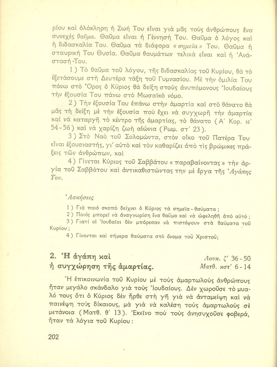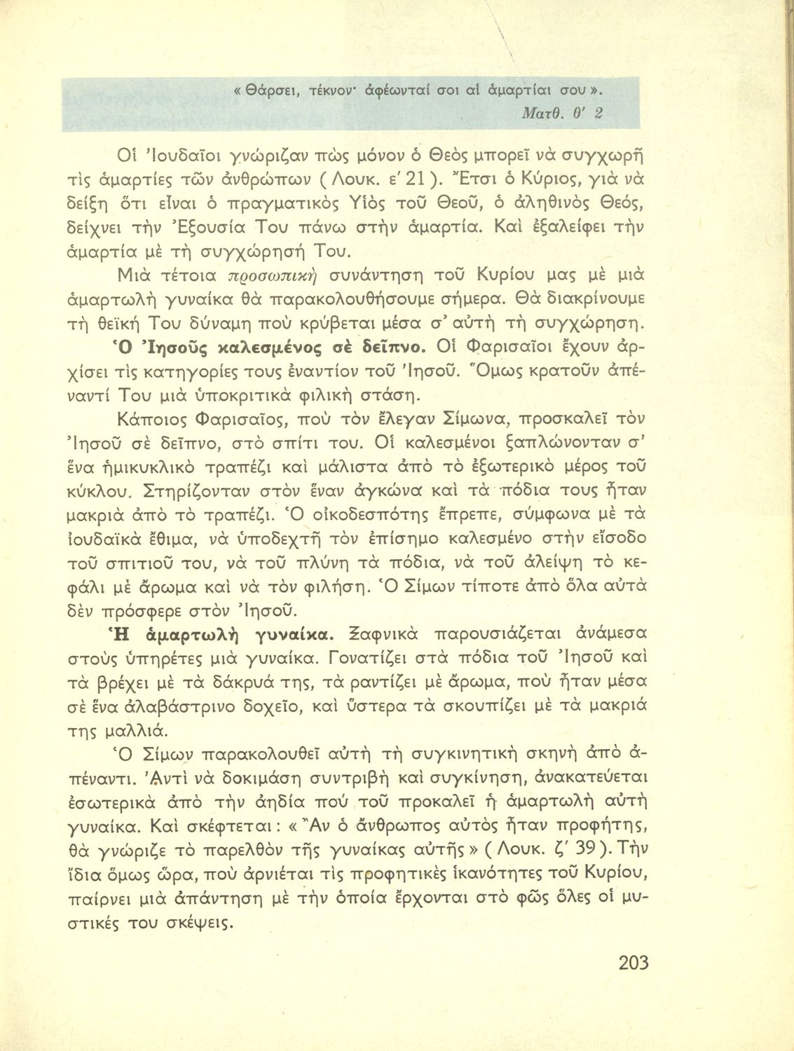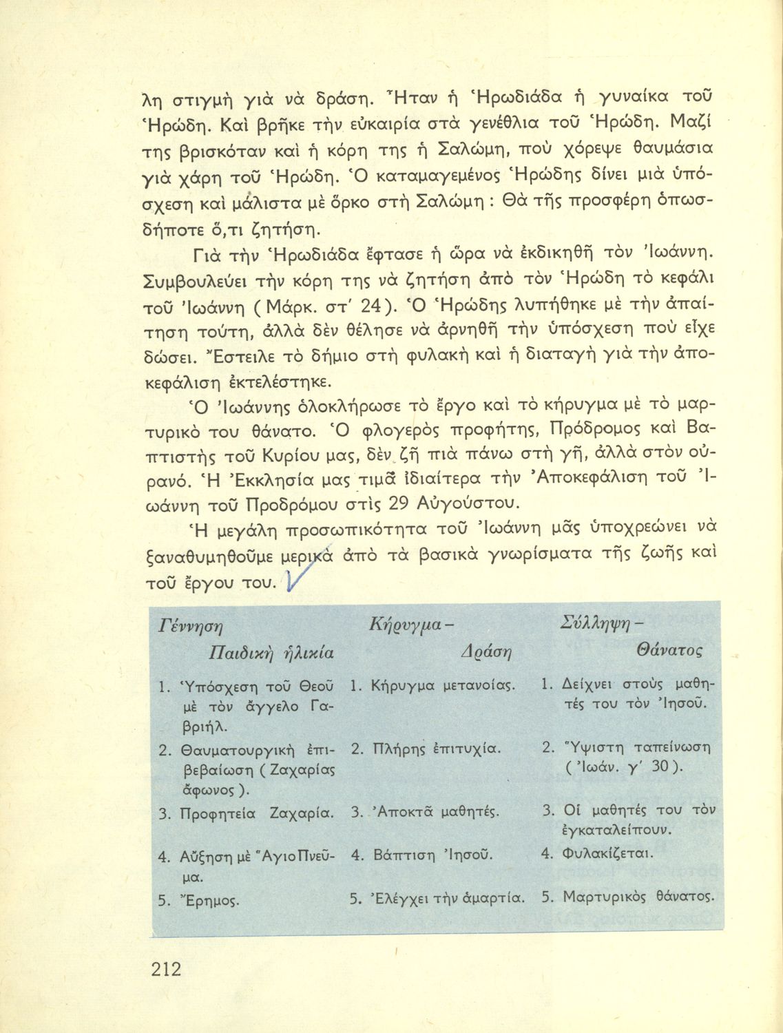 Σχολικό εγχειρίδιο Θρησκευτικών που περιλαμβάνει εισαγωγικά σχόλια στα βιβλία της Παλαιάς και Καινής Διαθήκης, περικοπές, ερμηνευτικές και πραγματολογικές σημειώσεις και πίνακα με τα κυριότερα ονόματα.