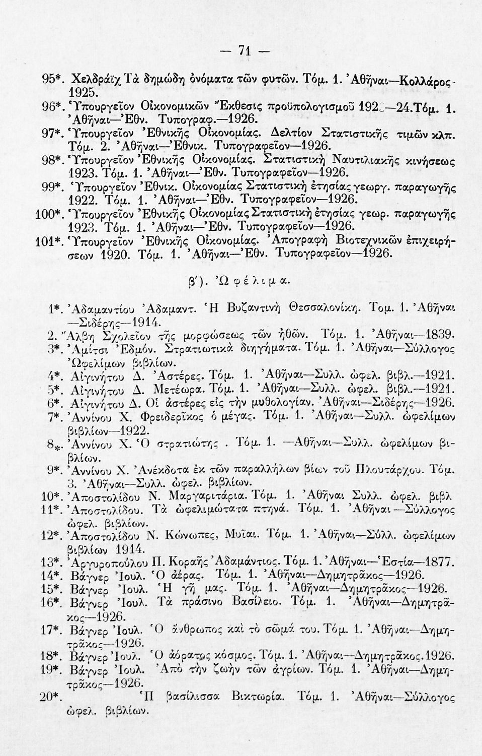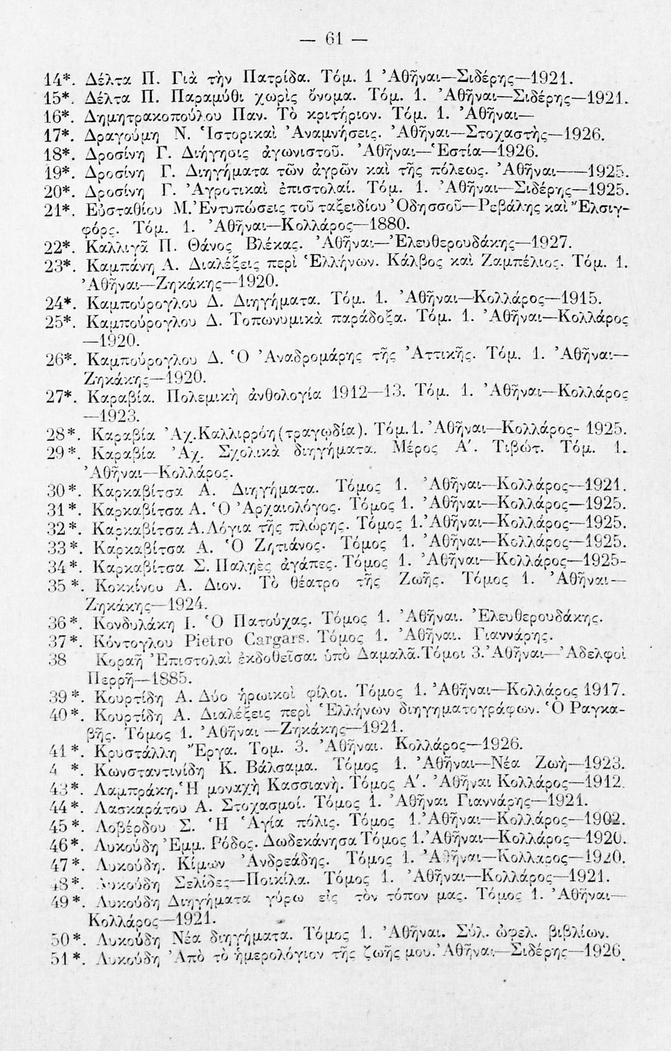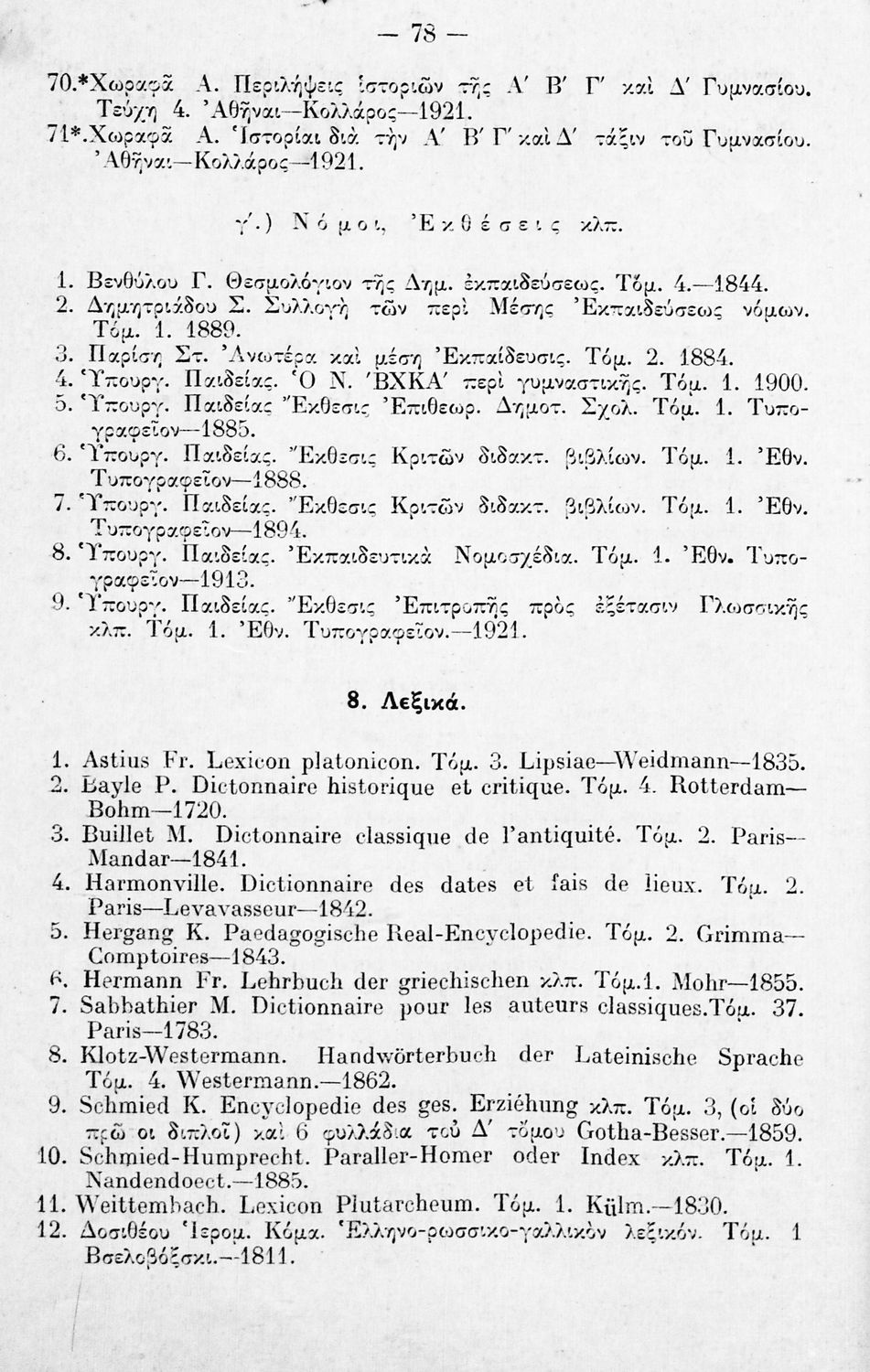 Έκδοση του Α΄ Γυμνασίου Αρρένων Αθηνών που περιλαμβάνει τον εσωτερικό κανονισμό του σχολείου και της μαθητικής κοινότητας, κατάλογο των εκδρομών και επισκέψεων για τα έτη 1925-1927, το αναλυτικό και ωρολόγιο πρόγραμμα, δύο μαθητικές εκθέσεις, τα ονόματα των μαθητών τις Α΄ Γυμνασίου που προήχθησαν, τα εποπτικά μέσα του σχολείου, και κατάλογο της βιβλιοθήκης . Ο επιμελητής της ήταν Γυμνασιάρχης του Σχολείου. Στο οπισθόφυλλο υπάρχει σκίτσο ασπρόμαυρου χάρτη από εκδρομή των μαθητών στην Επίδαυρο