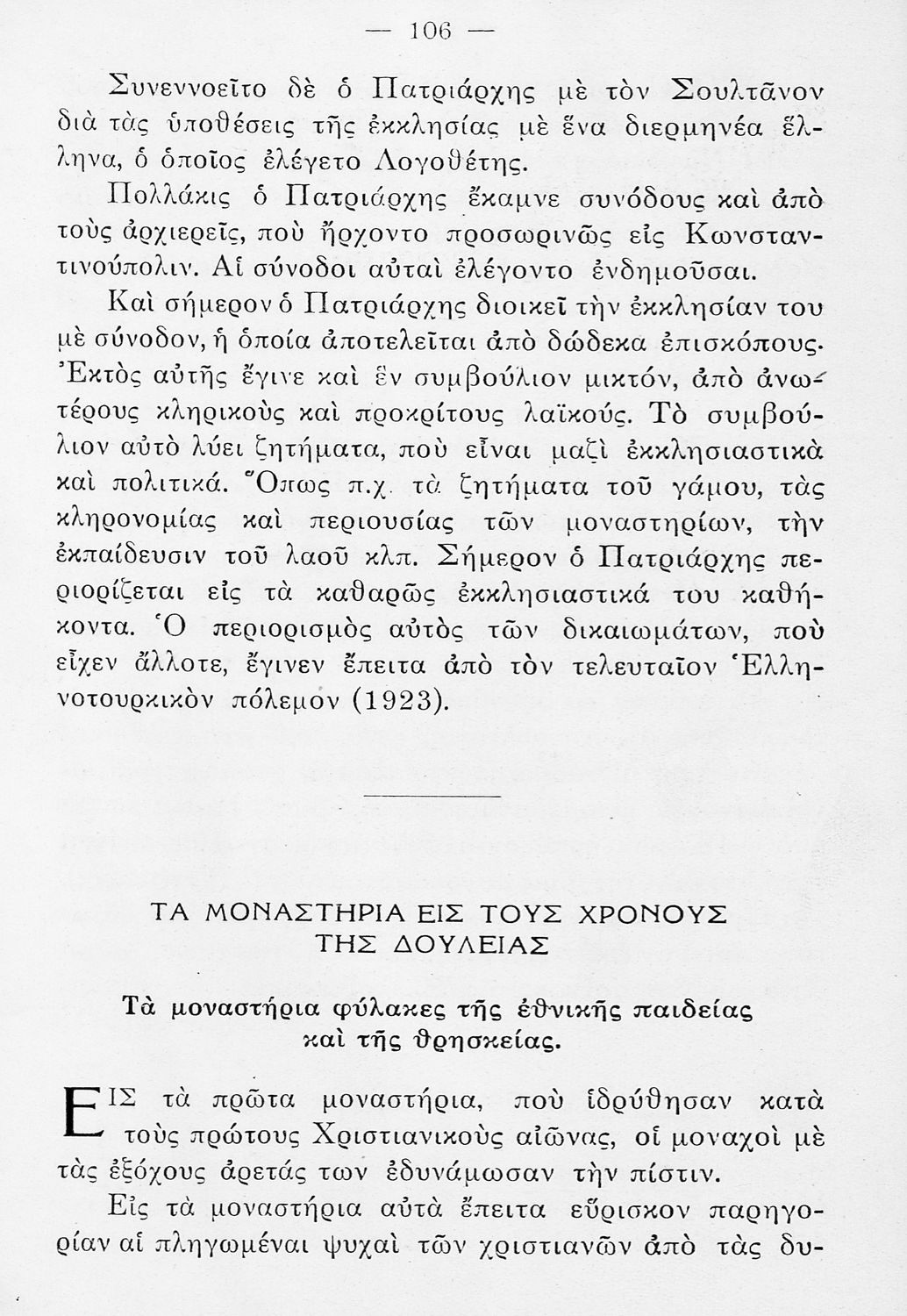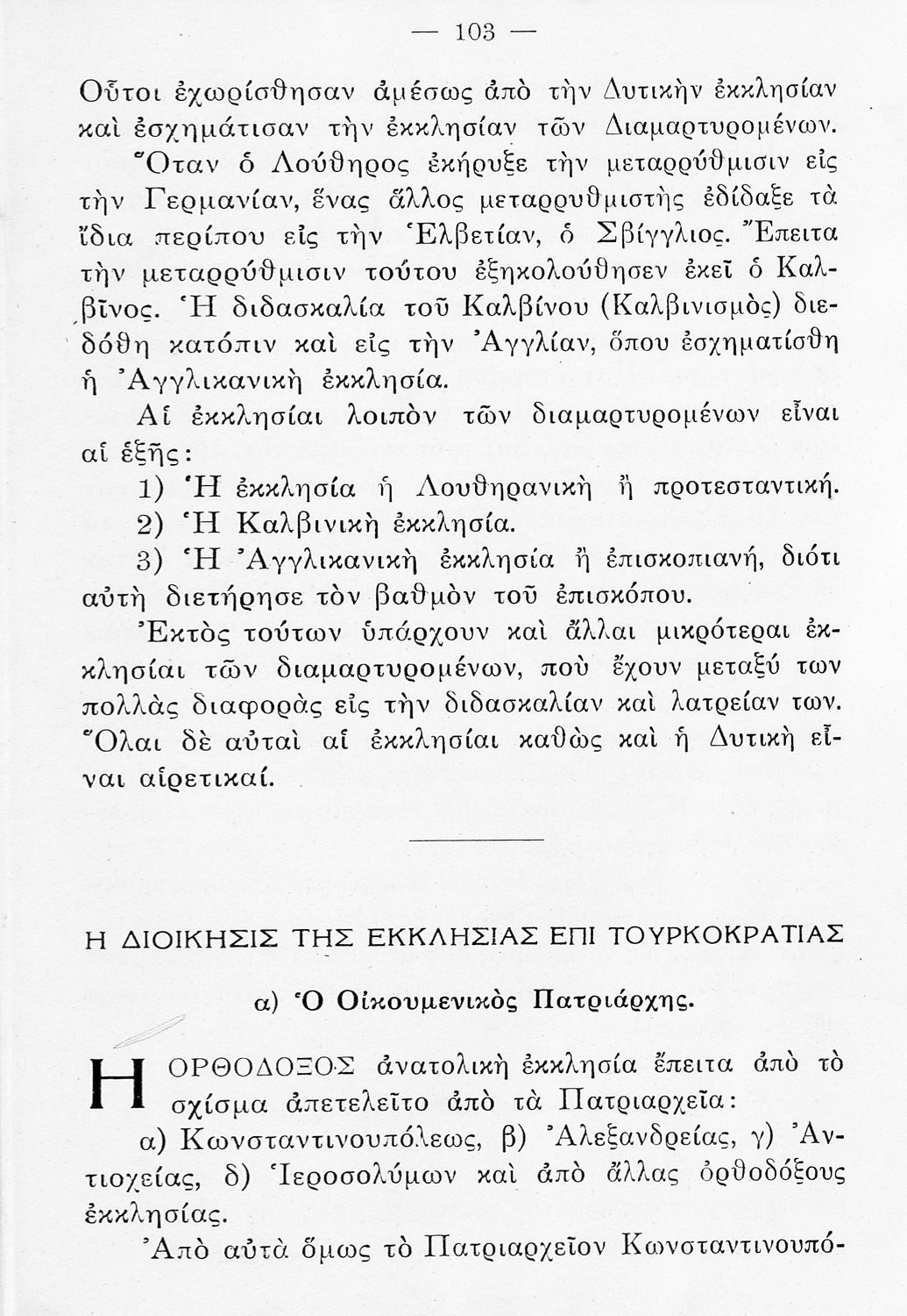 Βαθμίδα εκπαίδευσης: Πρωτοβάθμια Τάξη: Ε' Δημοτικού Μάθημα: Θρησκευτικά Γλώσσα: Καθαρεύουσα Παρουσίαση περιεχομένου: Σχολικό εγχειρίδιο Θρησκευτικών Ε΄ Δημοτικού που αποτελεί μια ιστορική επισκόπηση της Ορθόδοξης Εκκλησίας από την ίδρυσή της μέχρι την ίδρυση της Εκκλησίας της Ελλάδας και πραγματεύεται τις σχέσεις της Ορθοδοξίας με τα άλλα χριστιανικά δόγμα. |