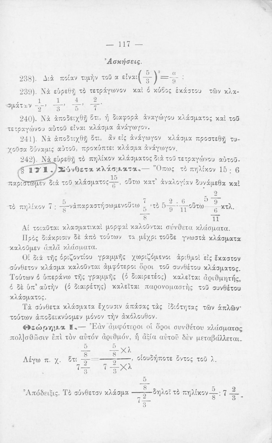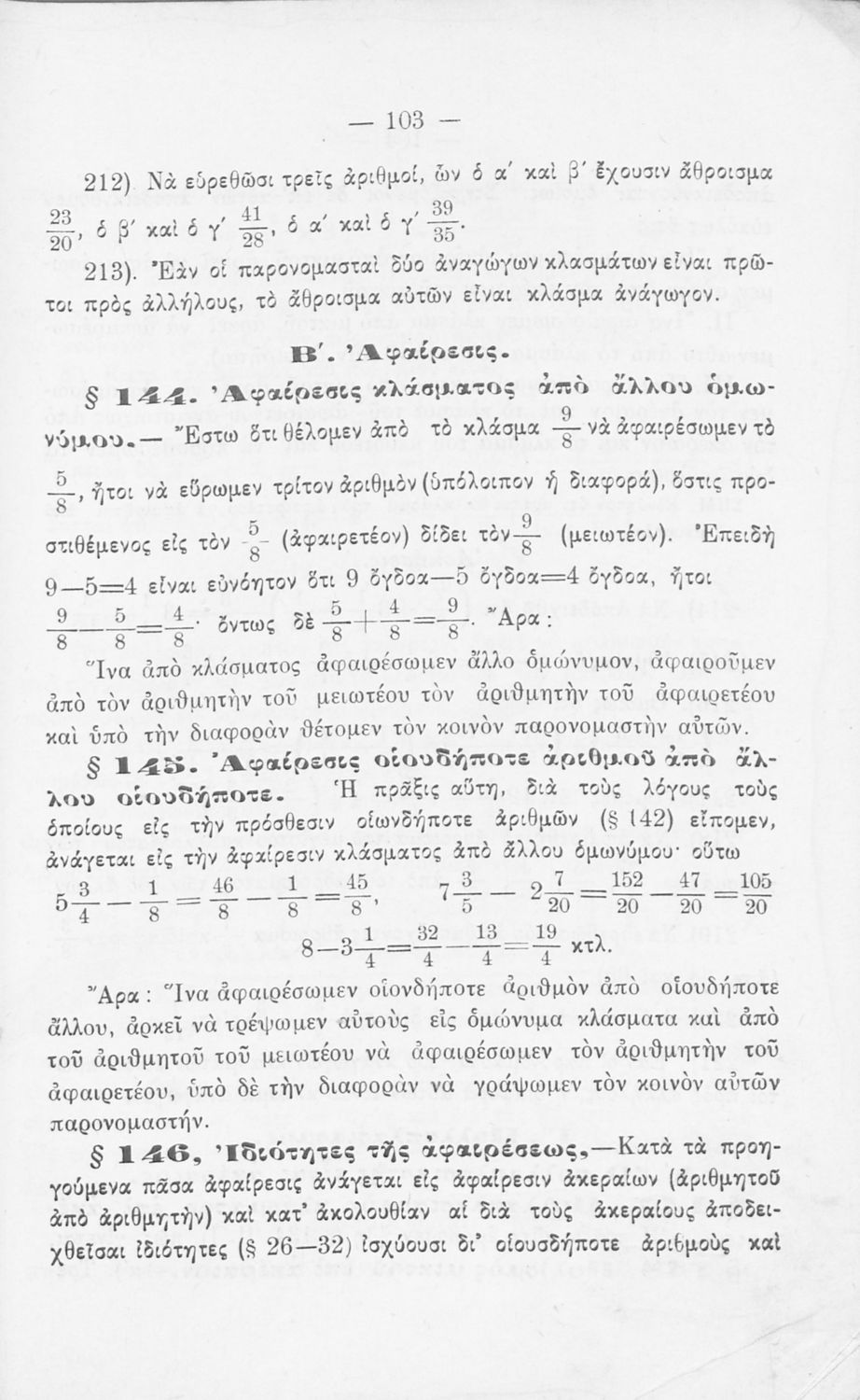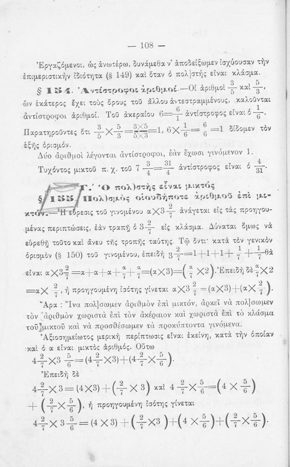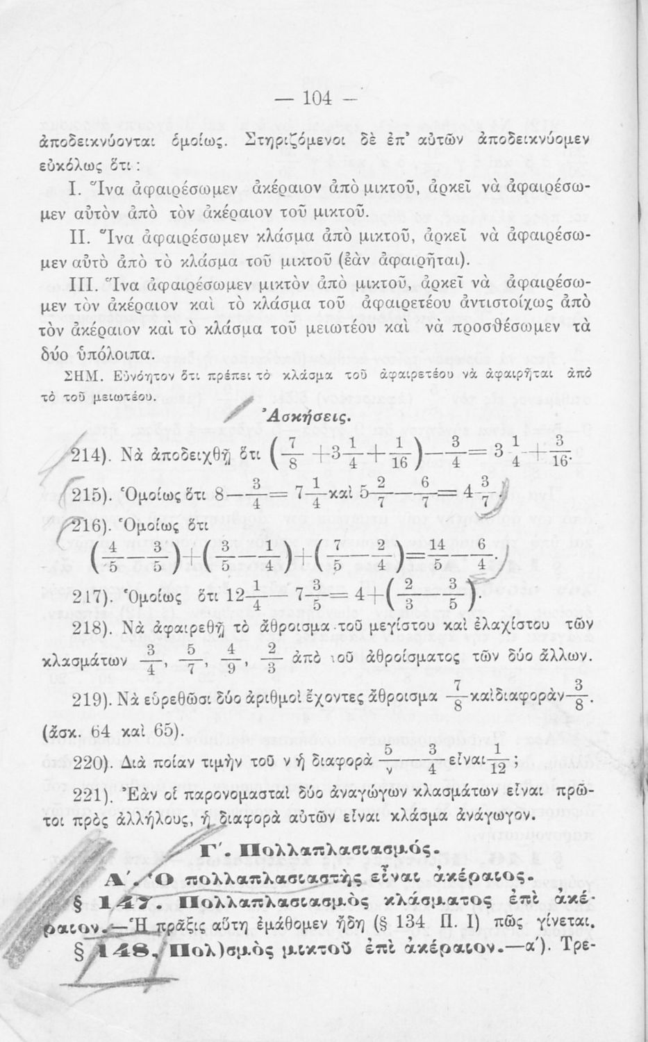 Σχολικό εγχειρίδιο Αριθμητικής για τα Γυμνάσια και Λύκεια που εστιάζει στις αριθμητικές πράξεις με ακέραιους αριθμούς και κλάσματα και είναι χωρισμένο σε ορισμούς, θεωρήματα και ασκήσεις.