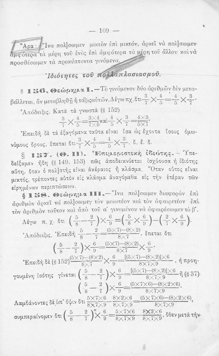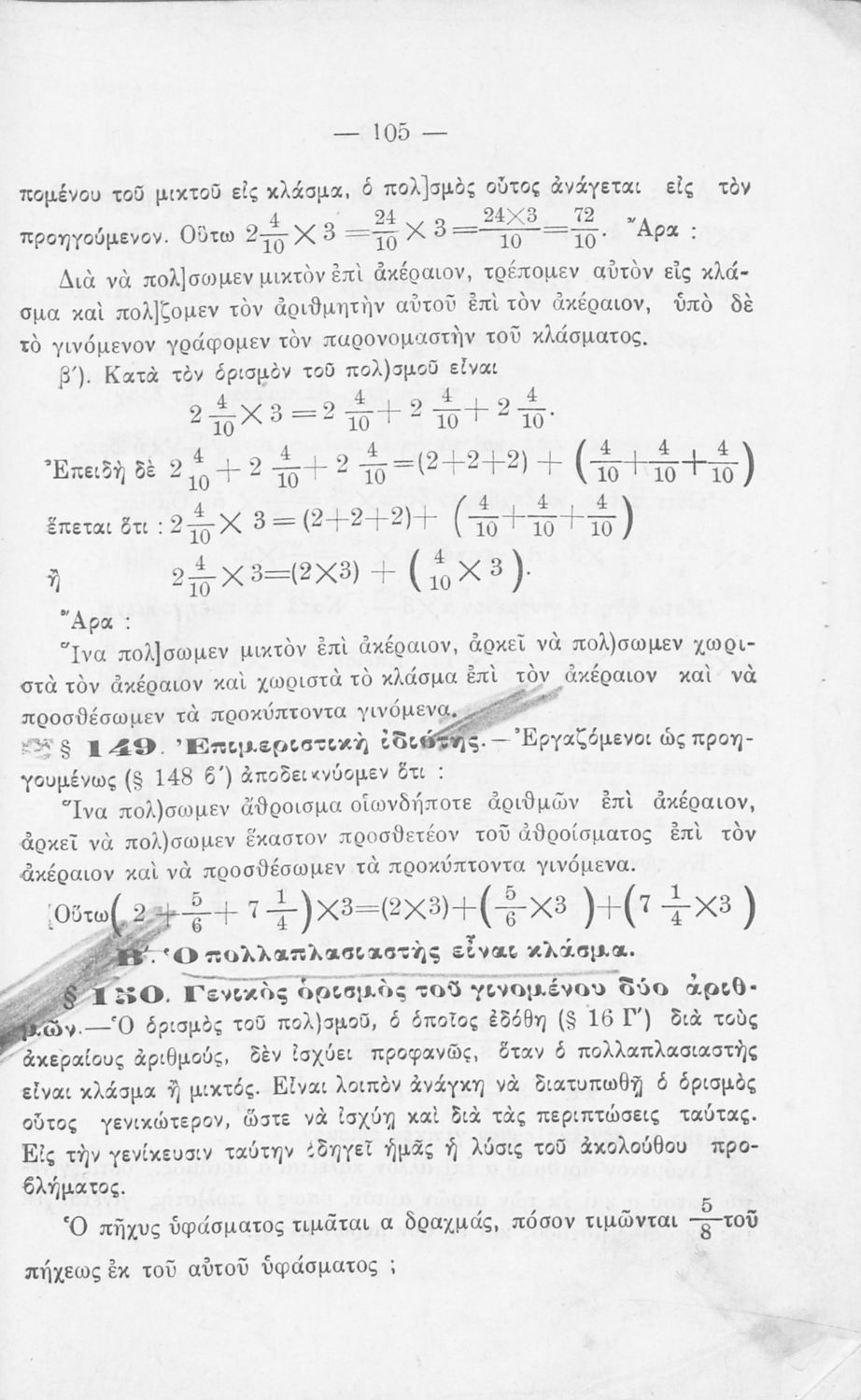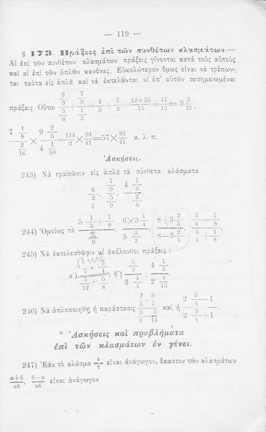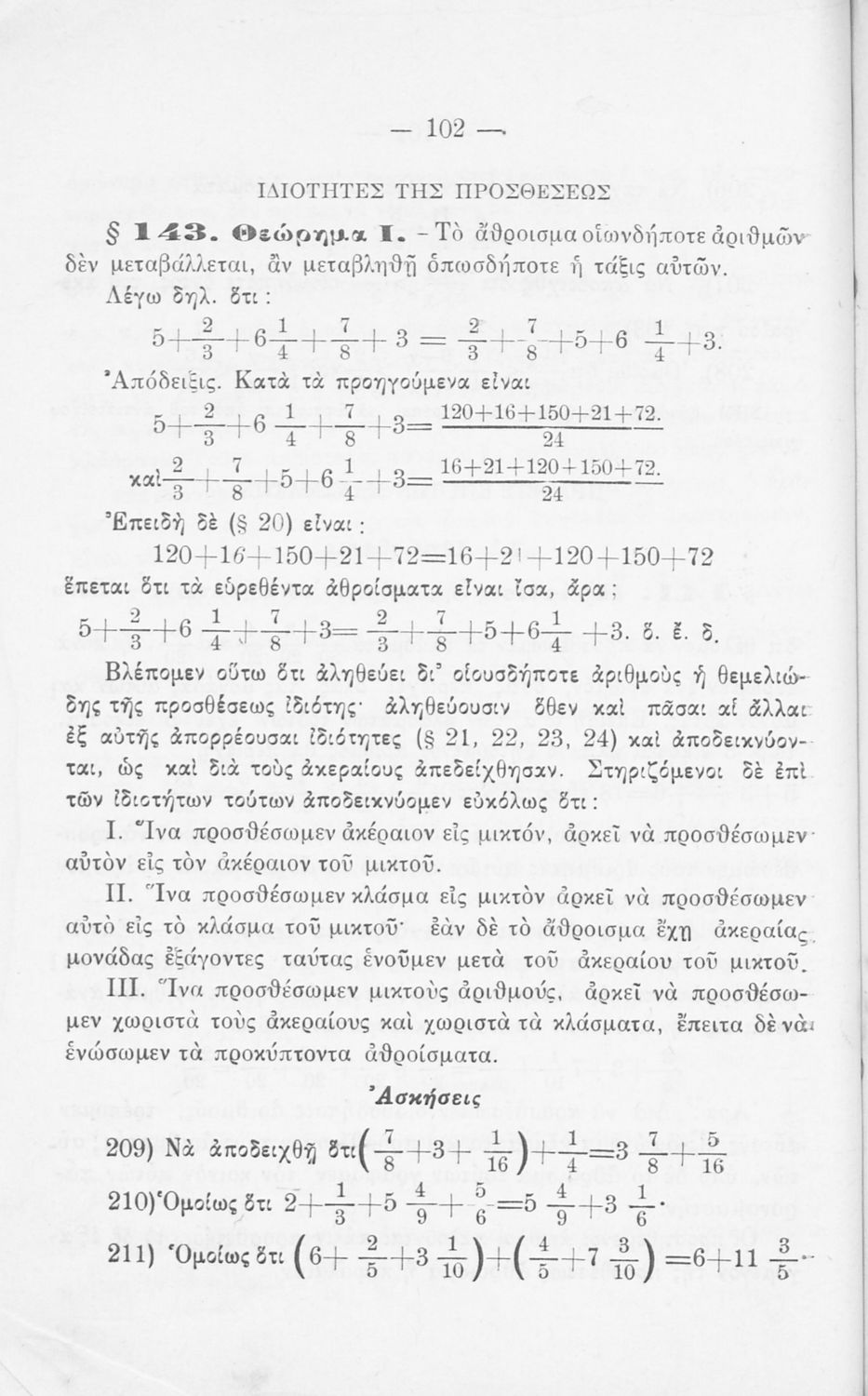 Σχολικό εγχειρίδιο Αριθμητικής για τα Γυμνάσια και Λύκεια που εστιάζει στις αριθμητικές πράξεις με ακέραιους αριθμούς και κλάσματα και είναι χωρισμένο σε ορισμούς, θεωρήματα και ασκήσεις.