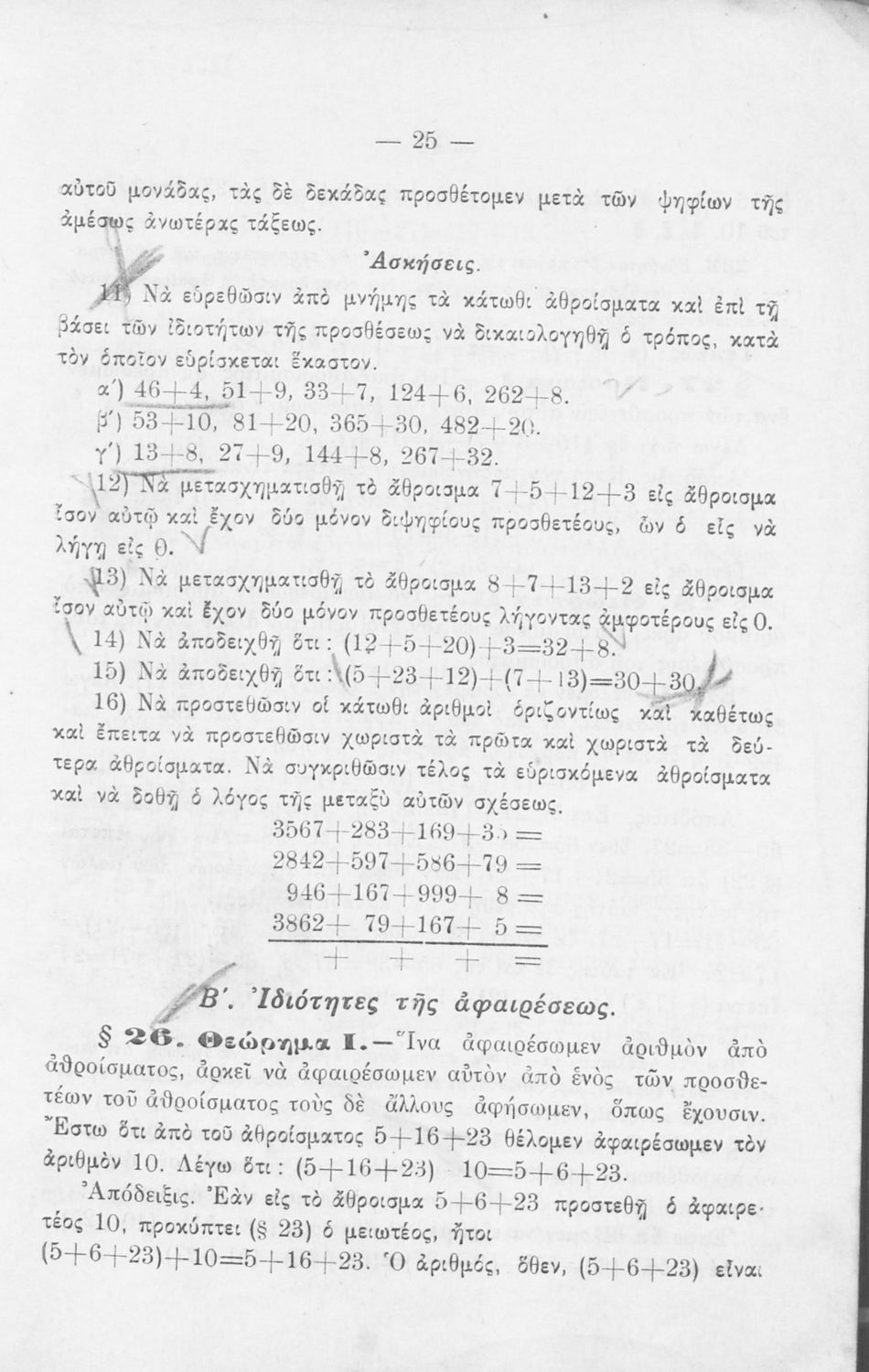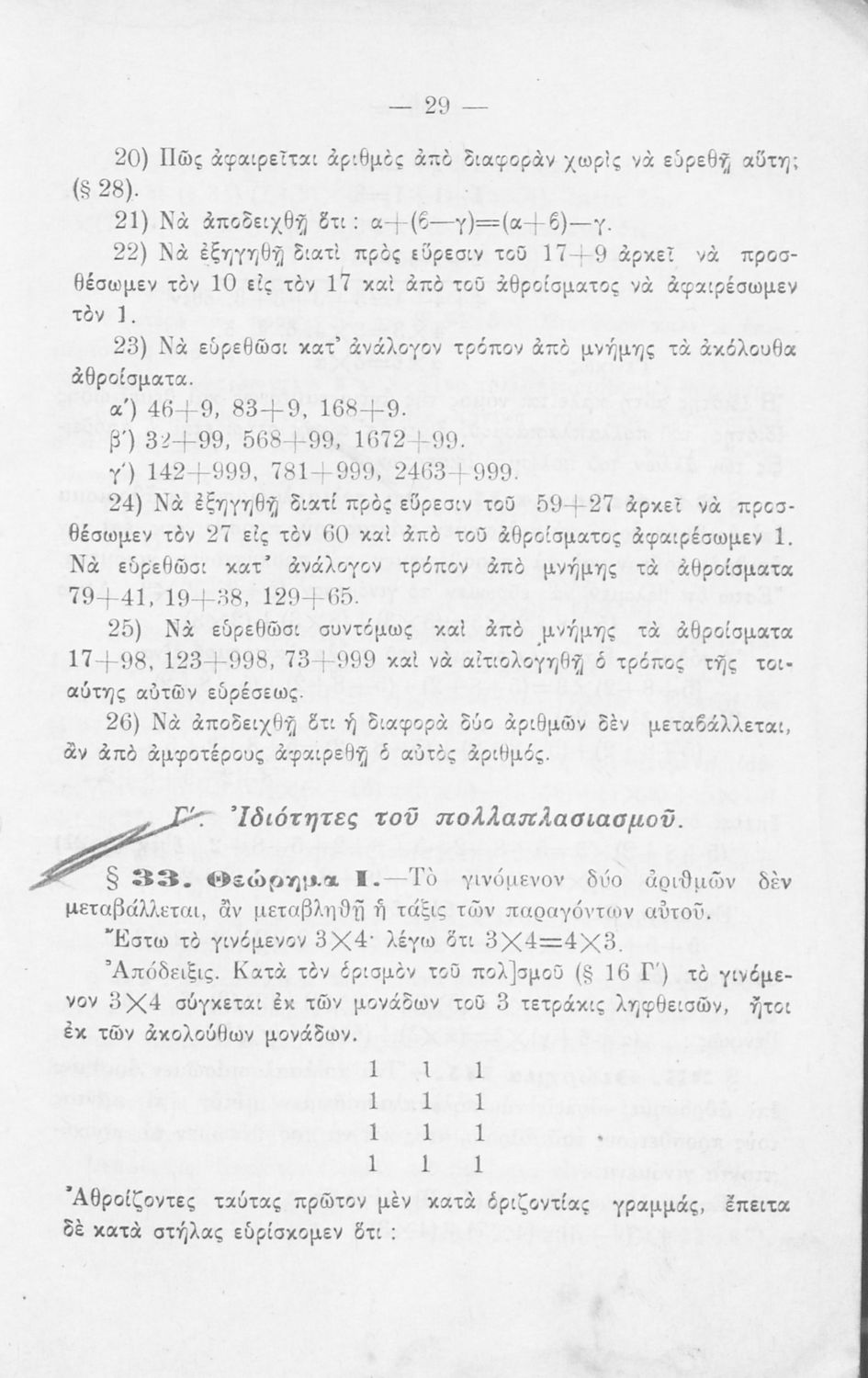 Παιδαγωγικό βοήθημα για τους Δημοδιδασκάλους, τους υποψηφίους των Σχολών Ανωτάτης Εμπορικής και τους μαθητές Πρακτικών Λυκείων των Γυμνασίων που περιέχει ασκήσεις ανώτερης αριθμητικής.