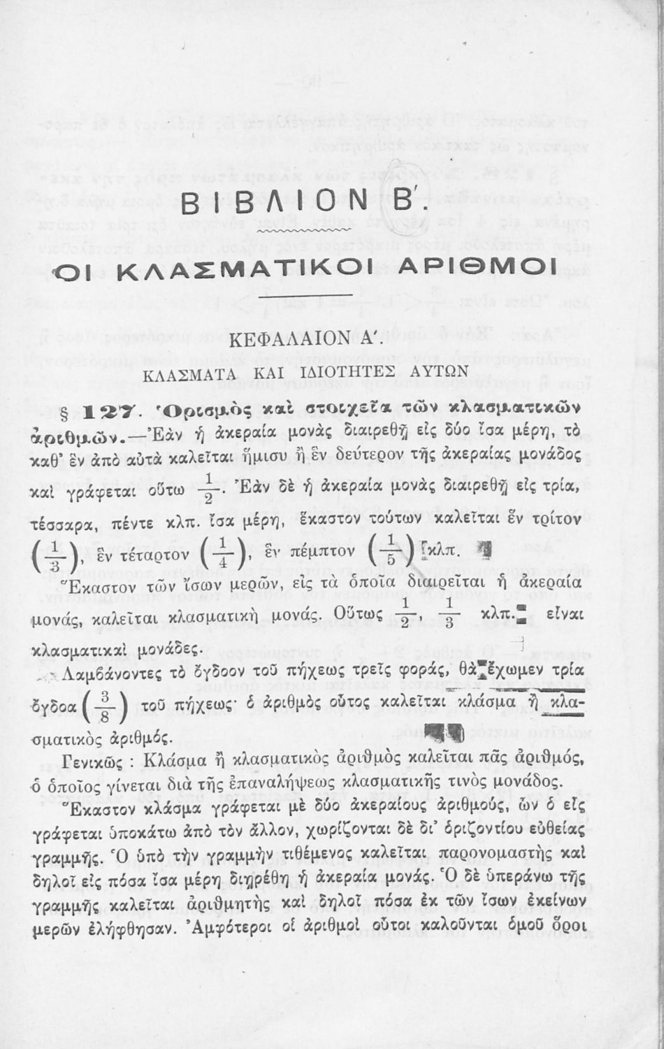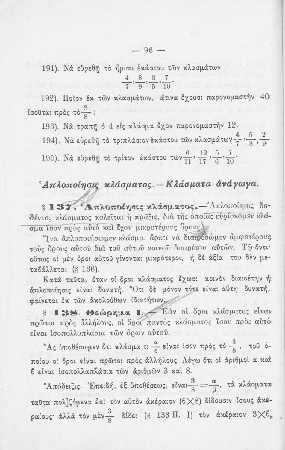Σχολικό εγχειρίδιο Αριθμητικής για τα Γυμνάσια και Λύκεια που εστιάζει στις αριθμητικές πράξεις με ακέραιους αριθμούς και κλάσματα και είναι χωρισμένο σε ορισμούς, θεωρήματα και ασκήσεις.