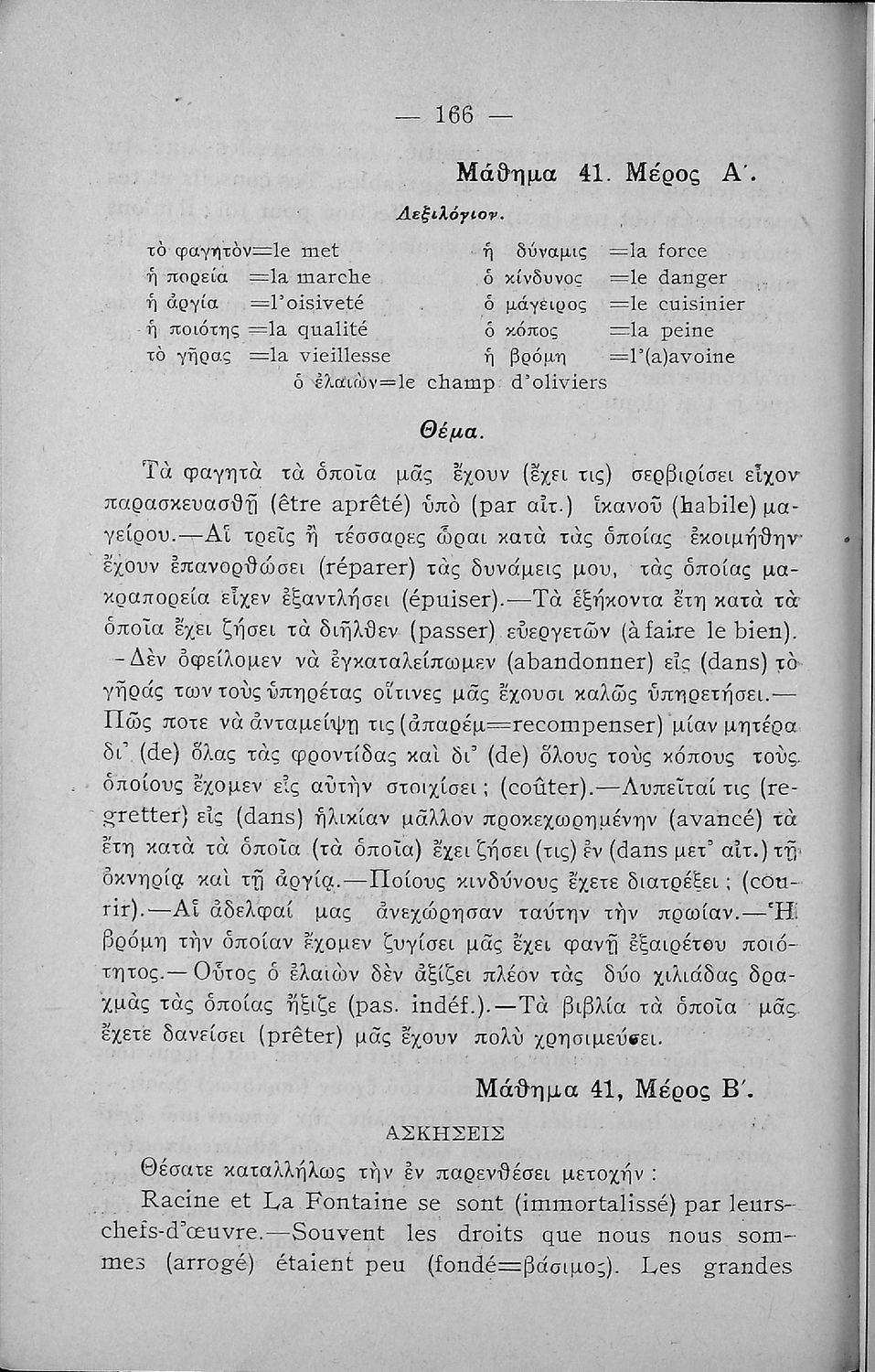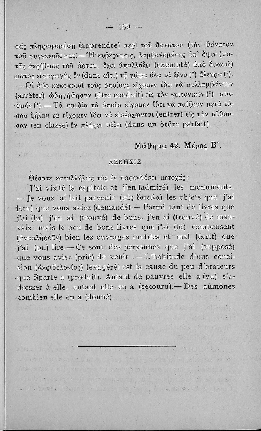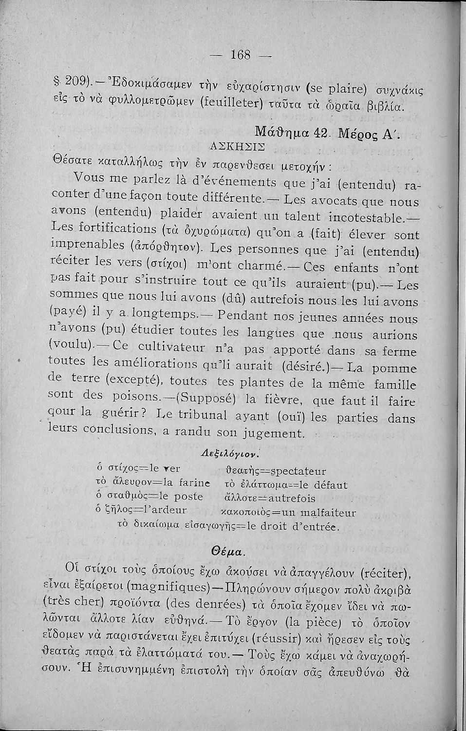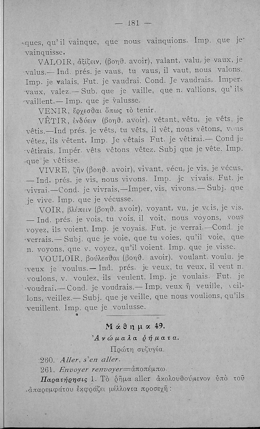 Γραμματική της Γαλλικής γλώσσας για τα Τετρατάξια Γυμνάσια, τη Γ΄ τάξη των Αστικών Σχολείων των Θηλέων και τα Διδασκαλεία της Δημοτικής Εκπαίδευσης που περιλαμβάνει θεωρία, ασκήσεις και λεξιλόγιο.