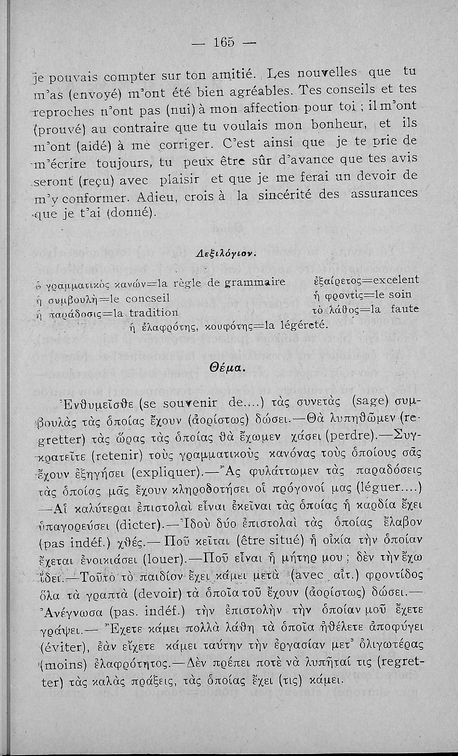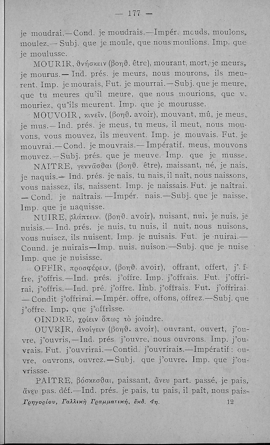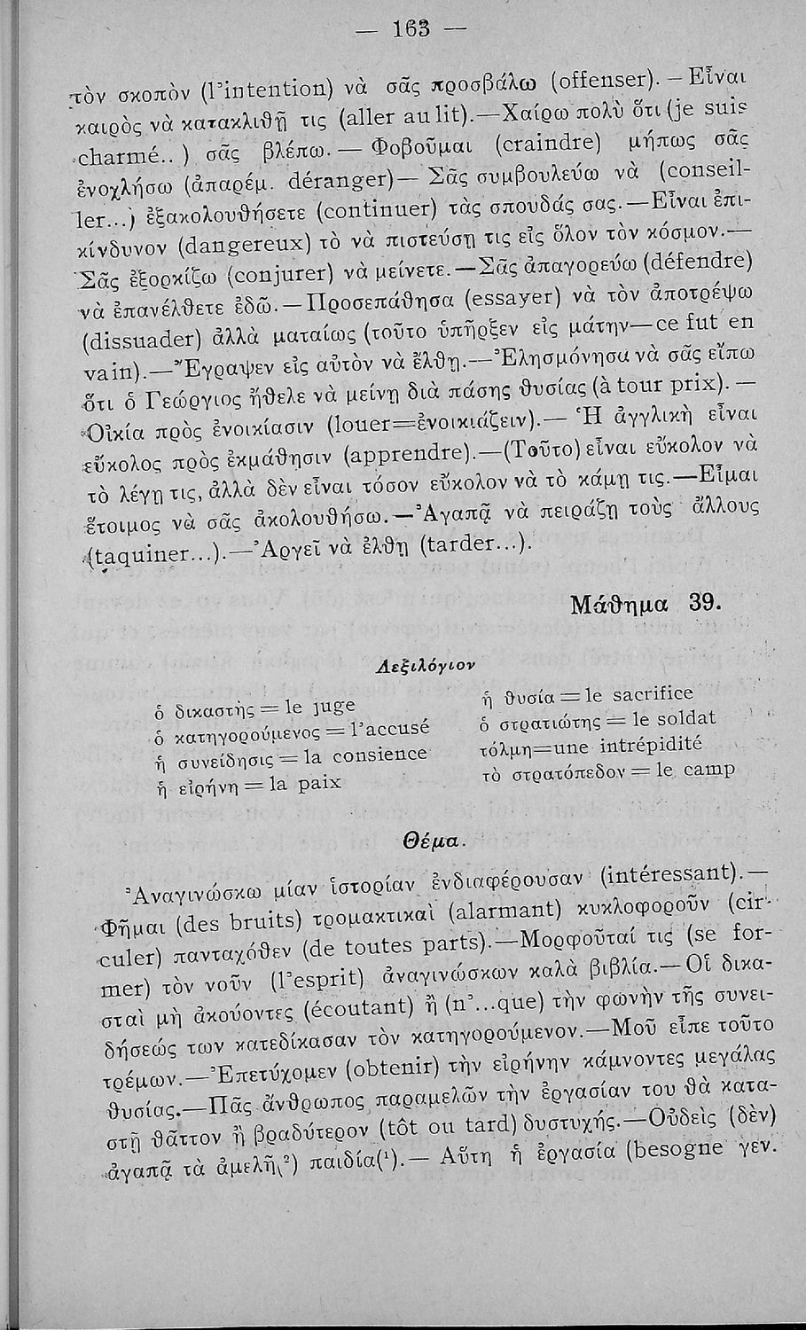 Γραμματική της Γαλλικής γλώσσας για τα Τετρατάξια Γυμνάσια, τη Γ΄ τάξη των Αστικών Σχολείων των Θηλέων και τα Διδασκαλεία της Δημοτικής Εκπαίδευσης που περιλαμβάνει θεωρία, ασκήσεις και λεξιλόγιο.