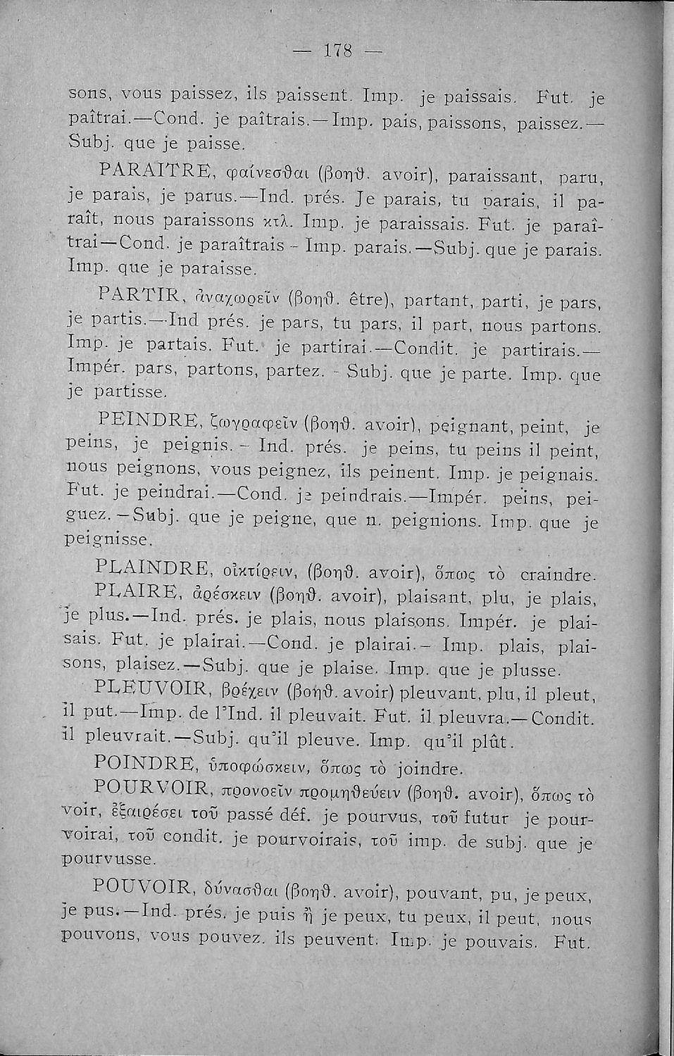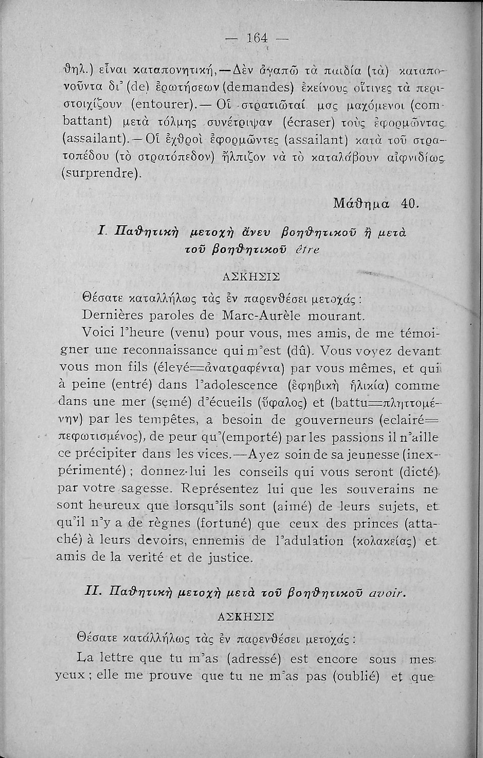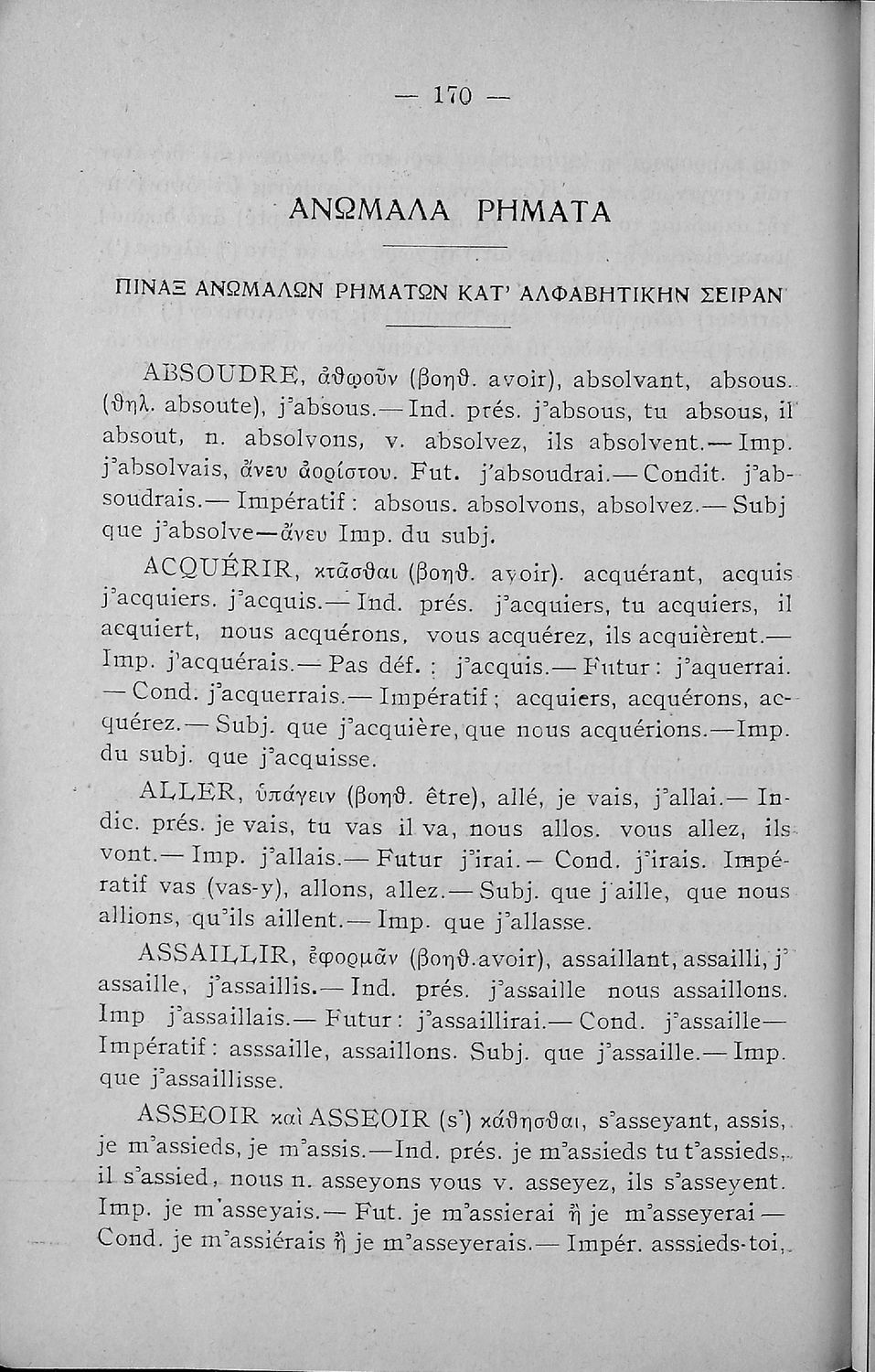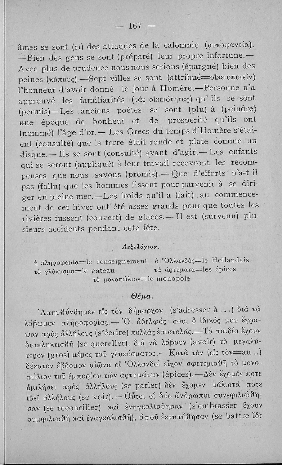 Γραμματική της Γαλλικής γλώσσας για τα Τετρατάξια Γυμνάσια, τη Γ΄ τάξη των Αστικών Σχολείων των Θηλέων και τα Διδασκαλεία της Δημοτικής Εκπαίδευσης που περιλαμβάνει θεωρία, ασκήσεις και λεξιλόγιο.