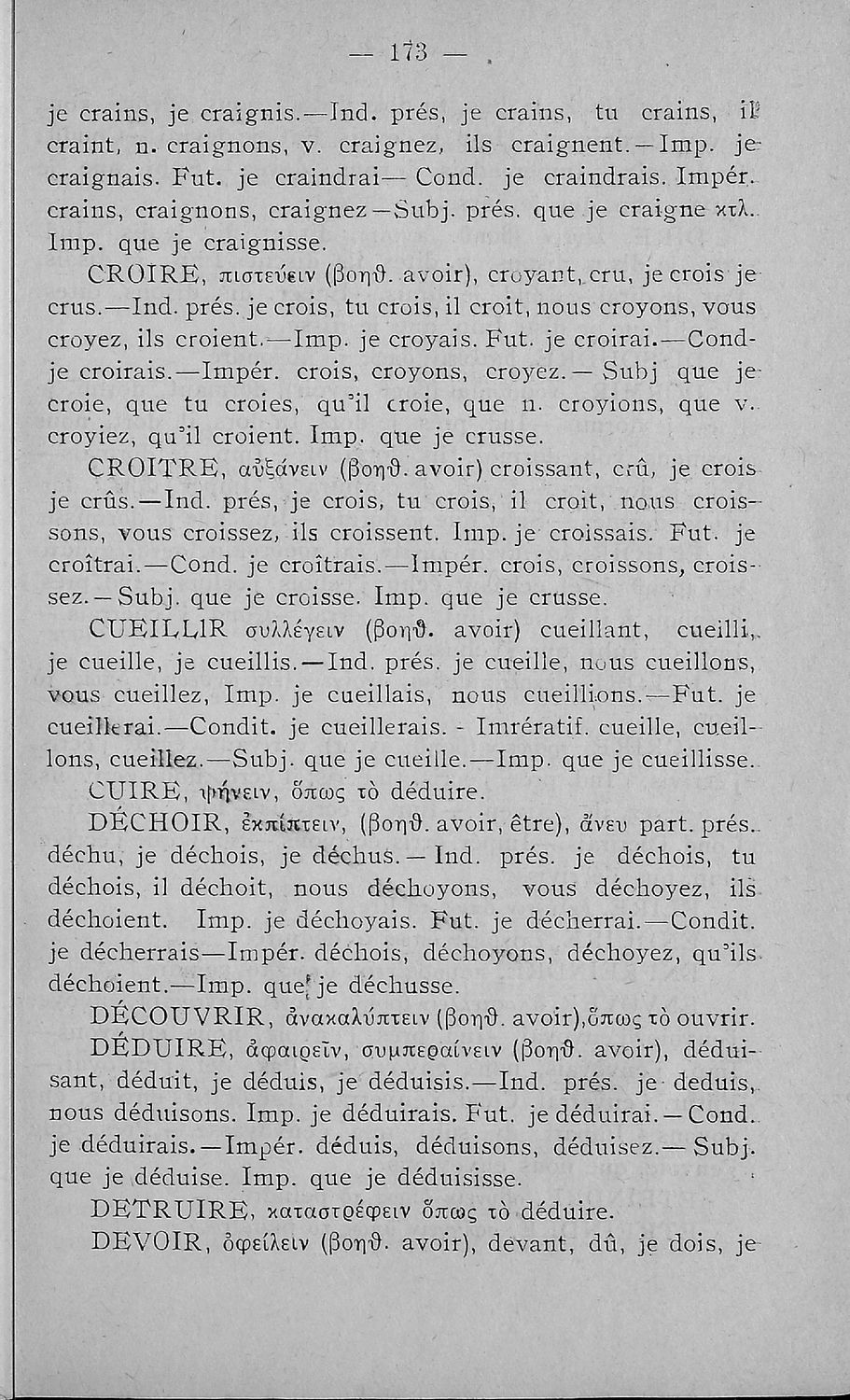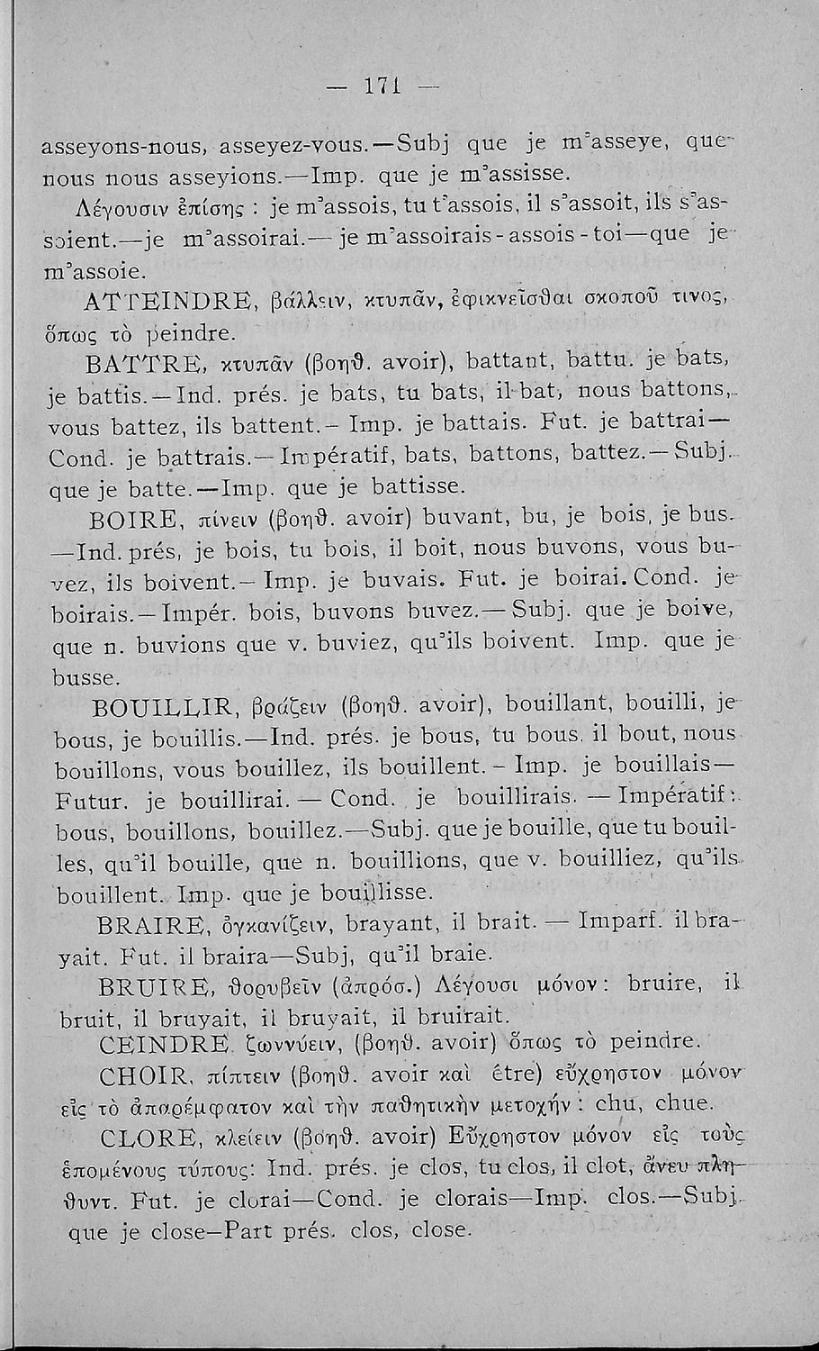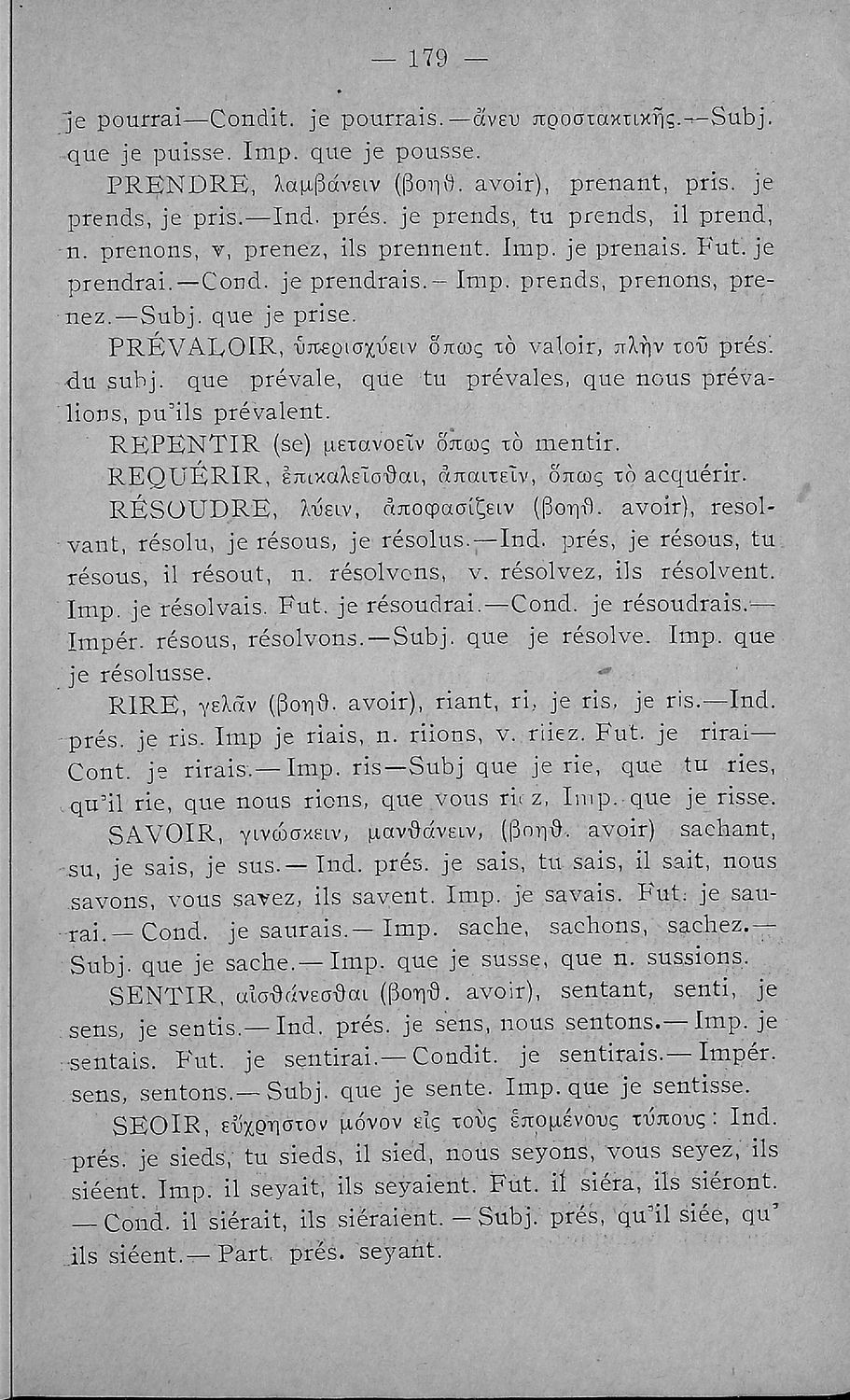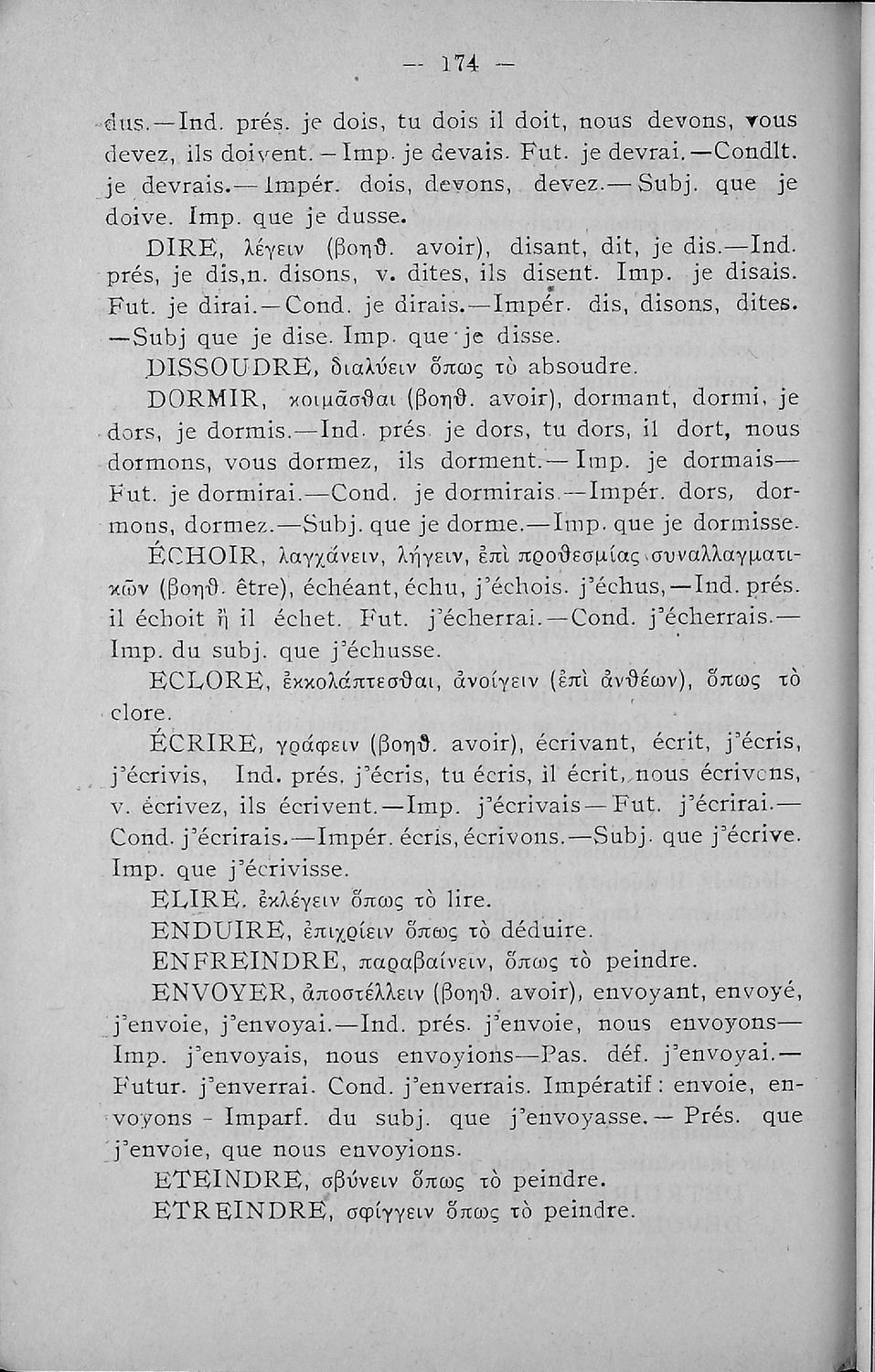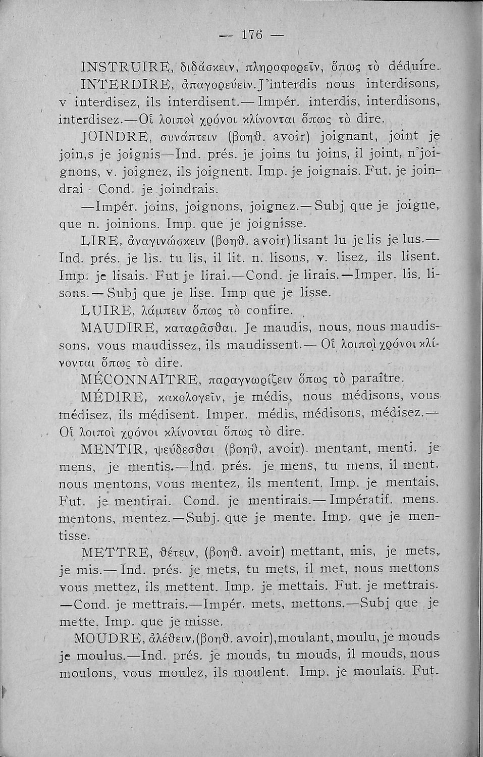 Σχολικό εγχειρίδιο Γαλλικών για τα Γυμνάσια, Αστικά Σχολεία και Διδασκαλεία που περιλαμβάνει τη γραμματική και το συντακτικό της γαλλικής γλώσσας, παραδείγματα και ασκήσεις.