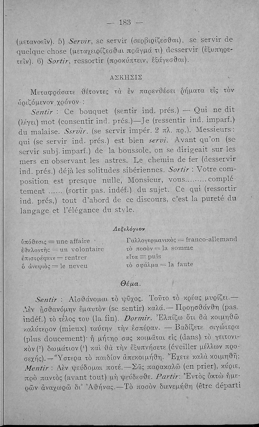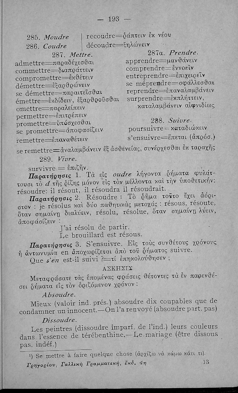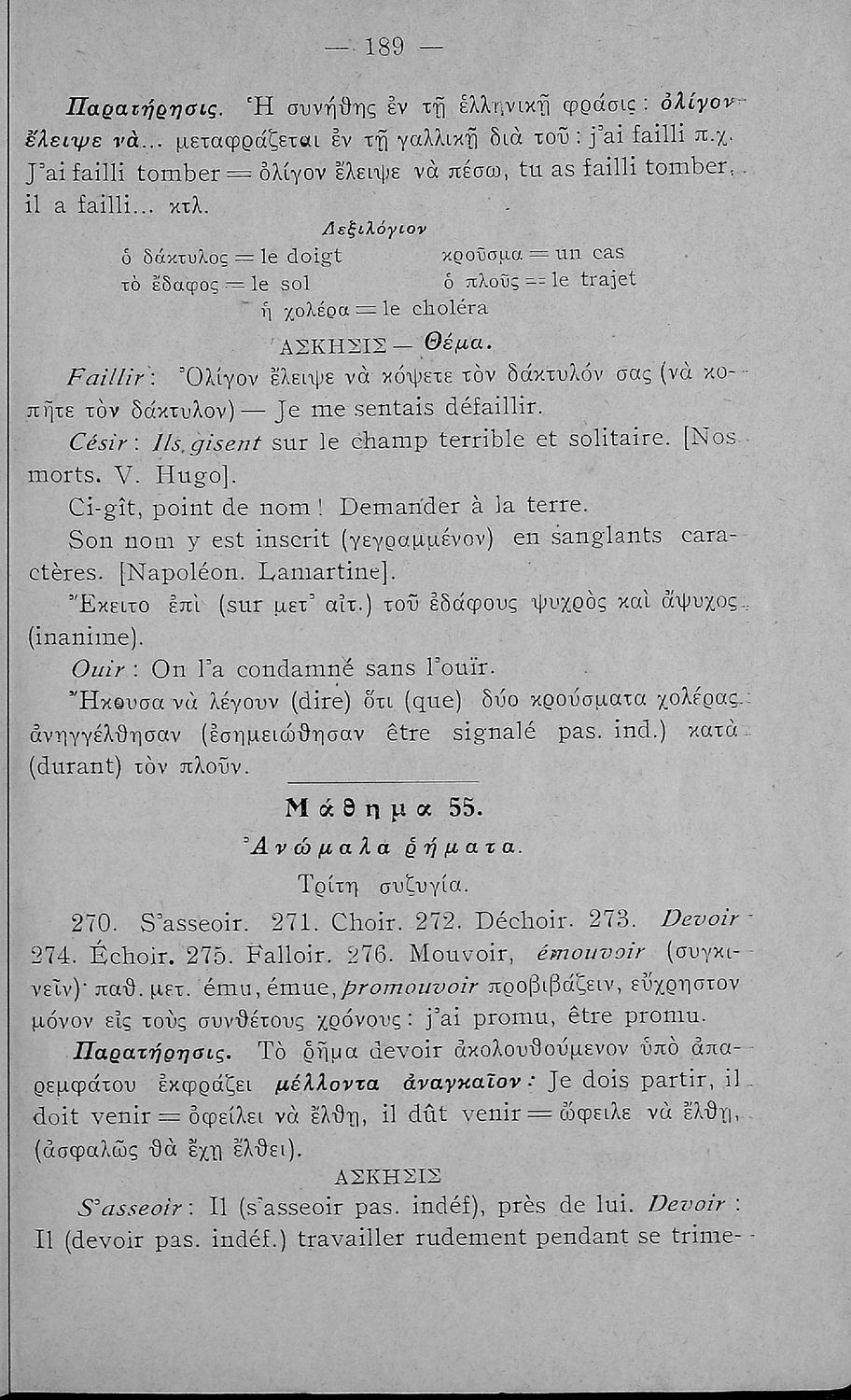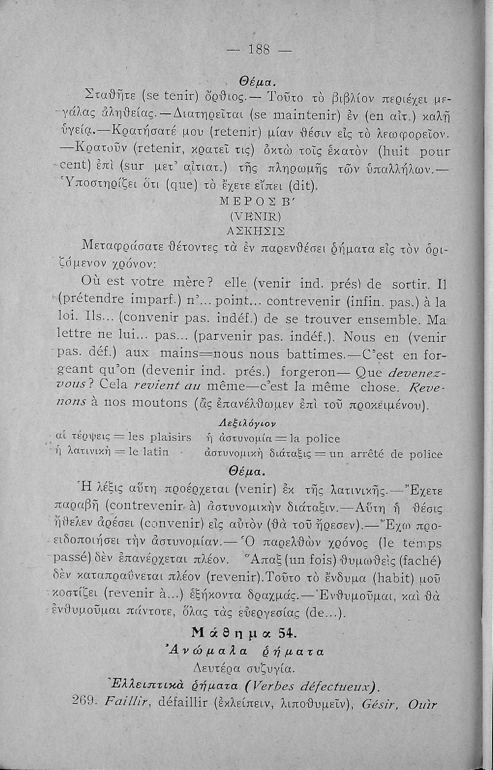 Γραμματική της Γαλλικής γλώσσας για τα Τετρατάξια Γυμνάσια, τη Γ΄ τάξη των Αστικών Σχολείων των Θηλέων και τα Διδασκαλεία της Δημοτικής Εκπαίδευσης που περιλαμβάνει θεωρία, ασκήσεις και λεξιλόγιο.