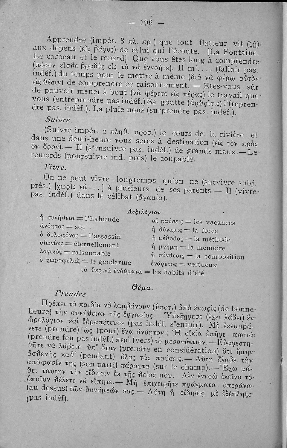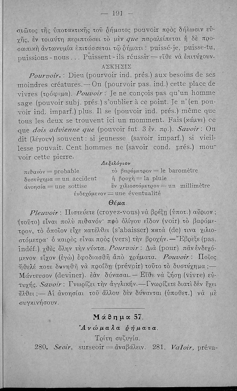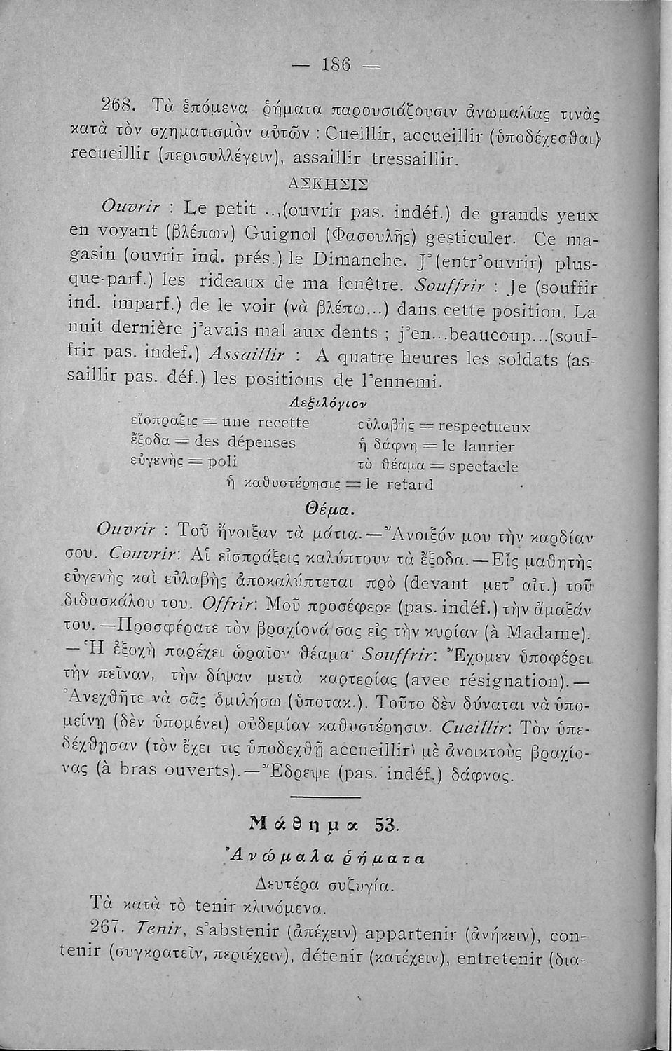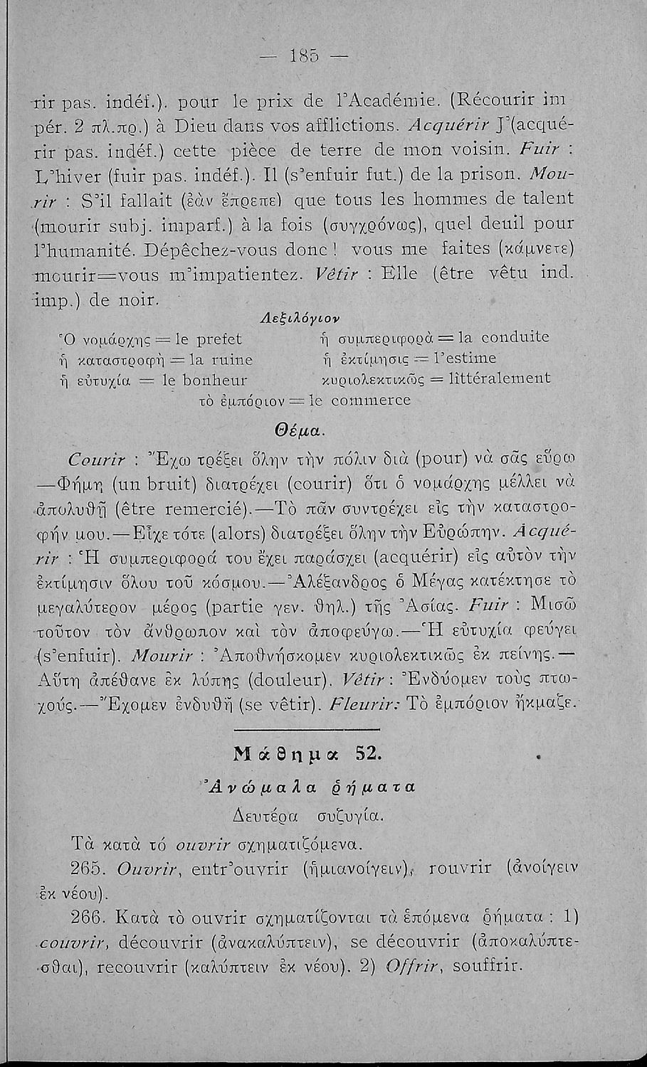 Γραμματική της Γαλλικής γλώσσας για τα Τετρατάξια Γυμνάσια, τη Γ΄ τάξη των Αστικών Σχολείων των Θηλέων και τα Διδασκαλεία της Δημοτικής Εκπαίδευσης που περιλαμβάνει θεωρία, ασκήσεις και λεξιλόγιο.
