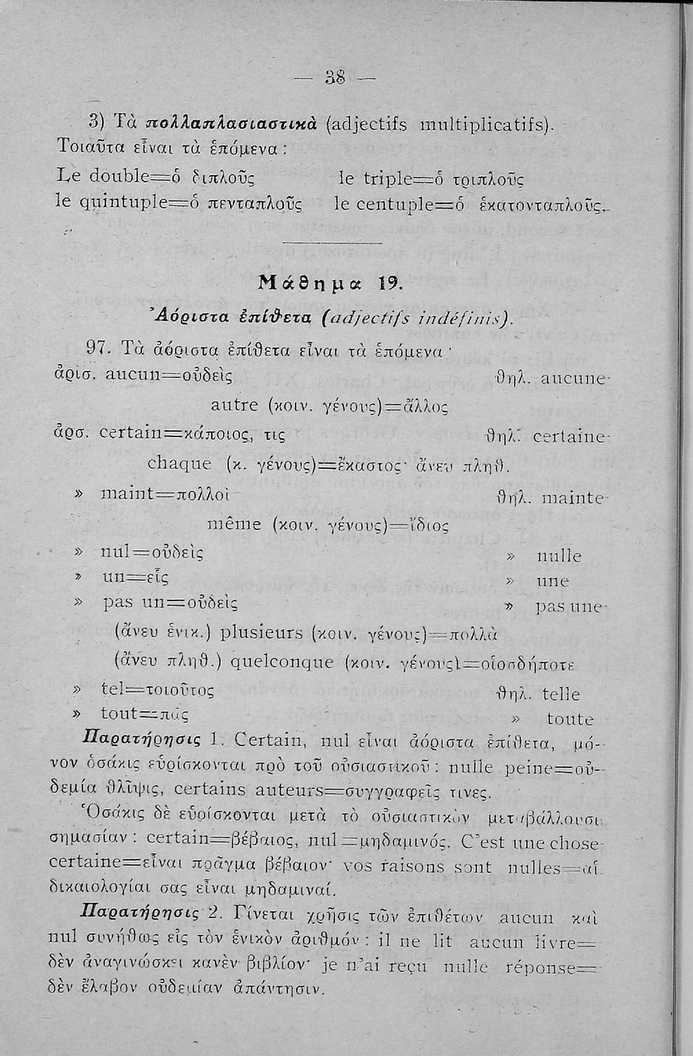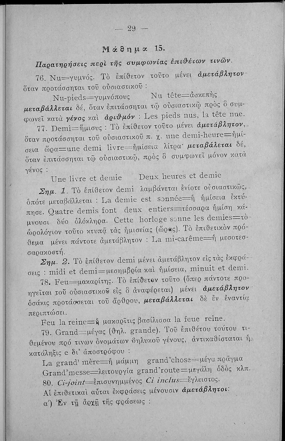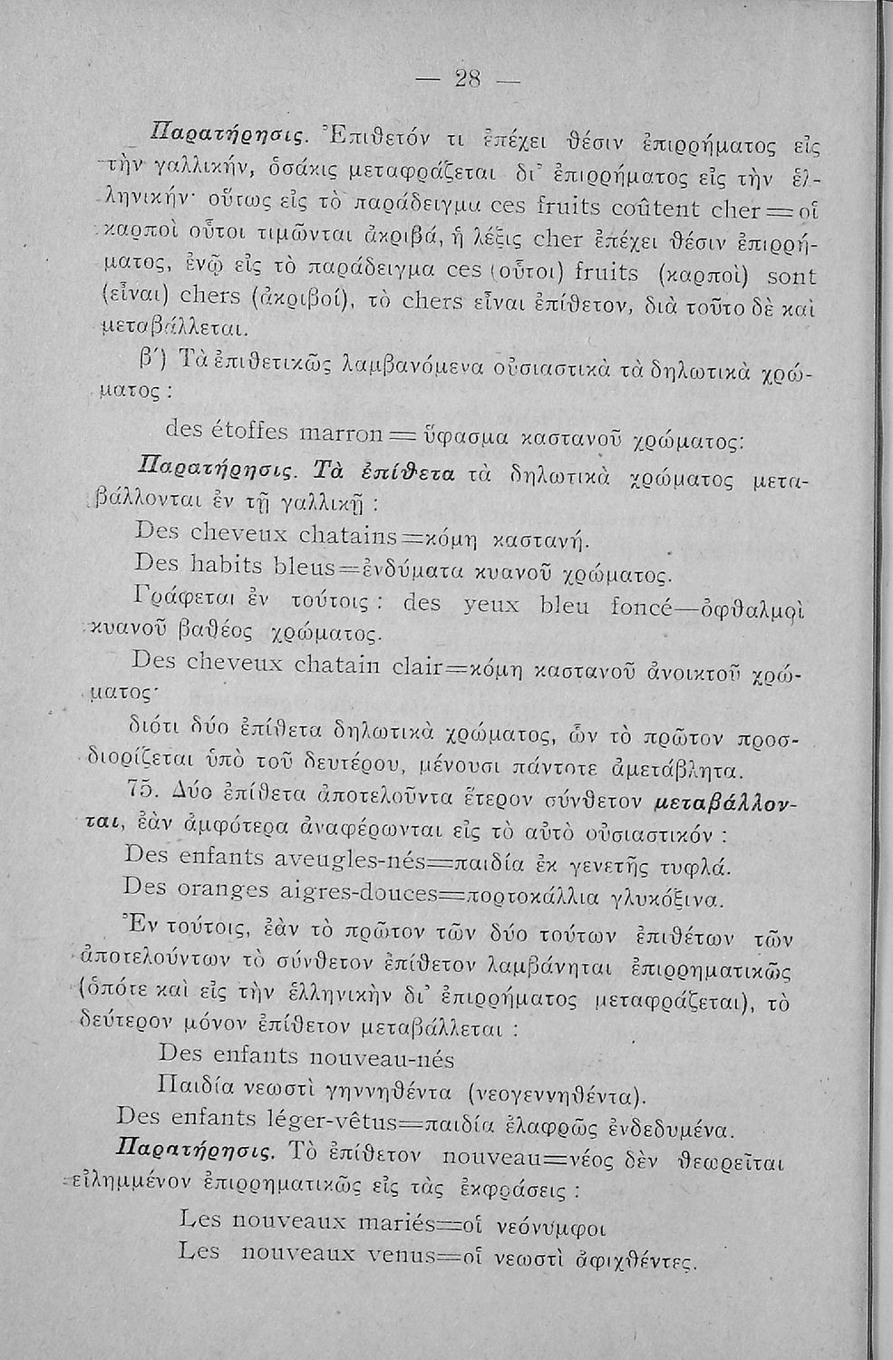 Γραμματική της Γαλλικής γλώσσας για τα Τετρατάξια Γυμνάσια, τη Γ΄ τάξη των Αστικών Σχολείων των Θηλέων και τα Διδασκαλεία της Δημοτικής Εκπαίδευσης που περιλαμβάνει θεωρία, ασκήσεις και λεξιλόγιο.