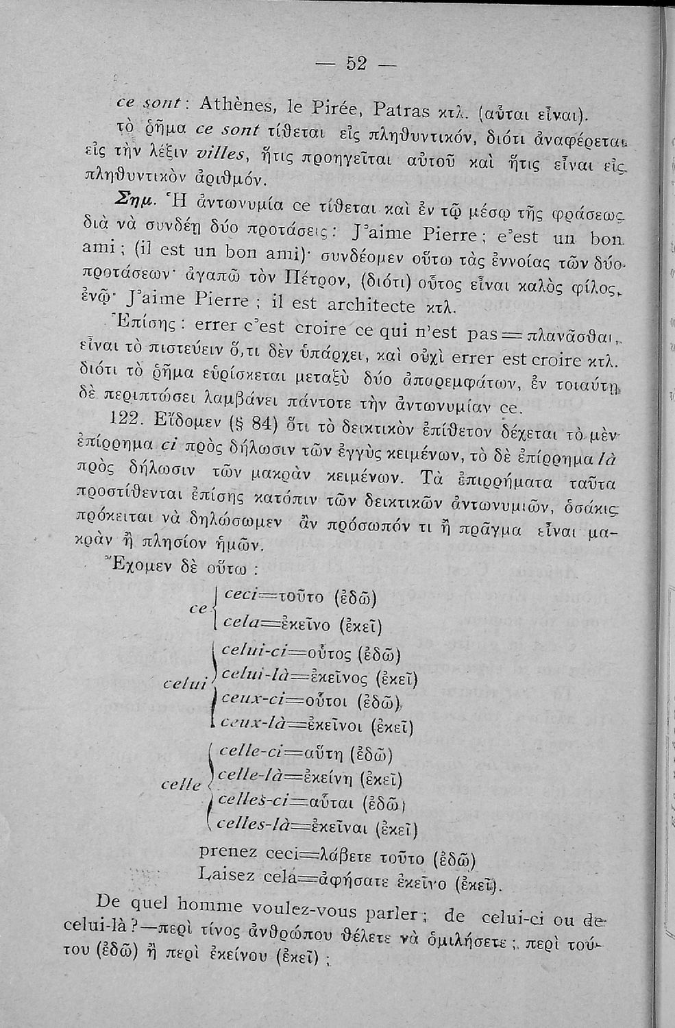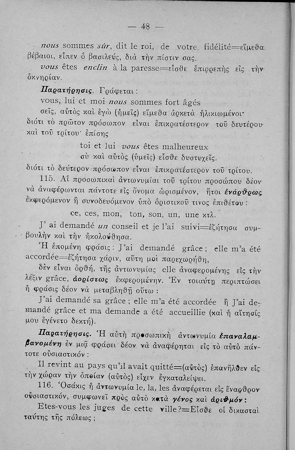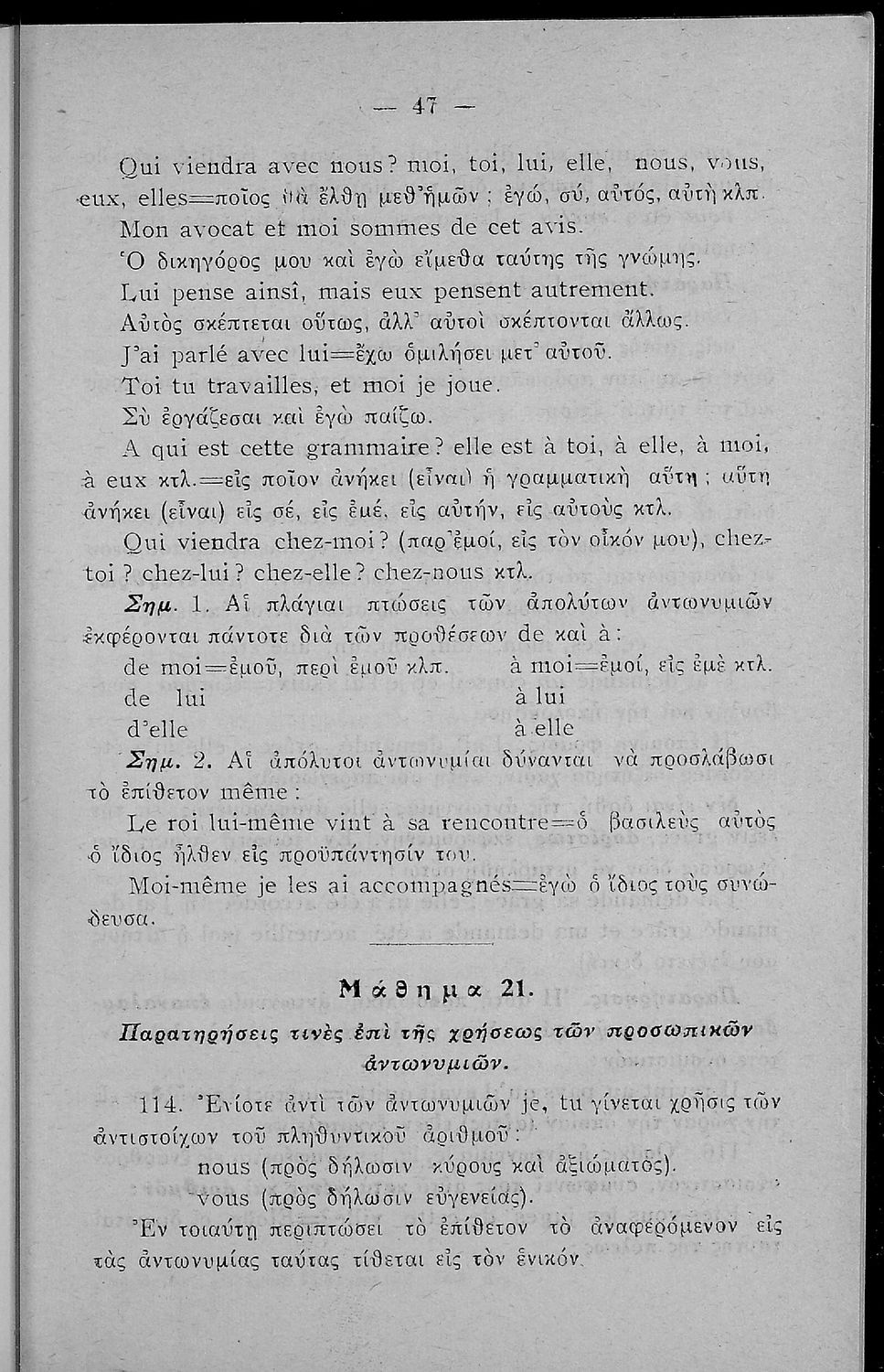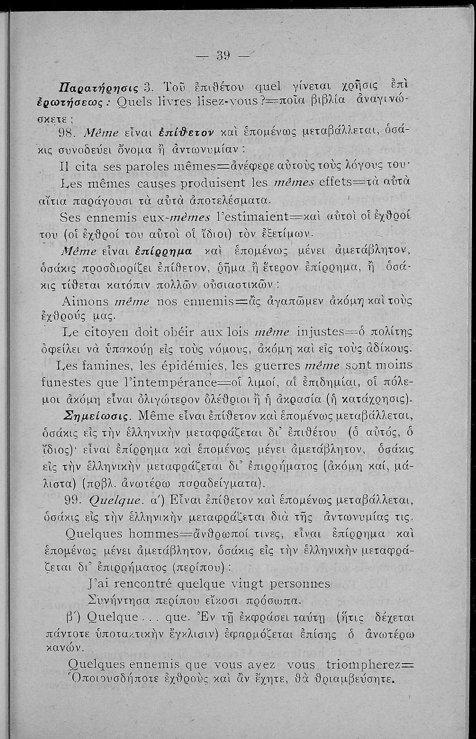 Γραμματική της Γαλλικής γλώσσας για τα Τετρατάξια Γυμνάσια, τη Γ΄ τάξη των Αστικών Σχολείων των Θηλέων και τα Διδασκαλεία της Δημοτικής Εκπαίδευσης που περιλαμβάνει θεωρία, ασκήσεις και λεξιλόγιο.