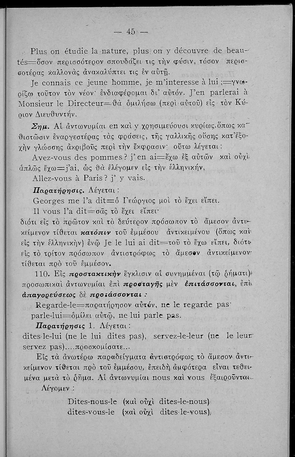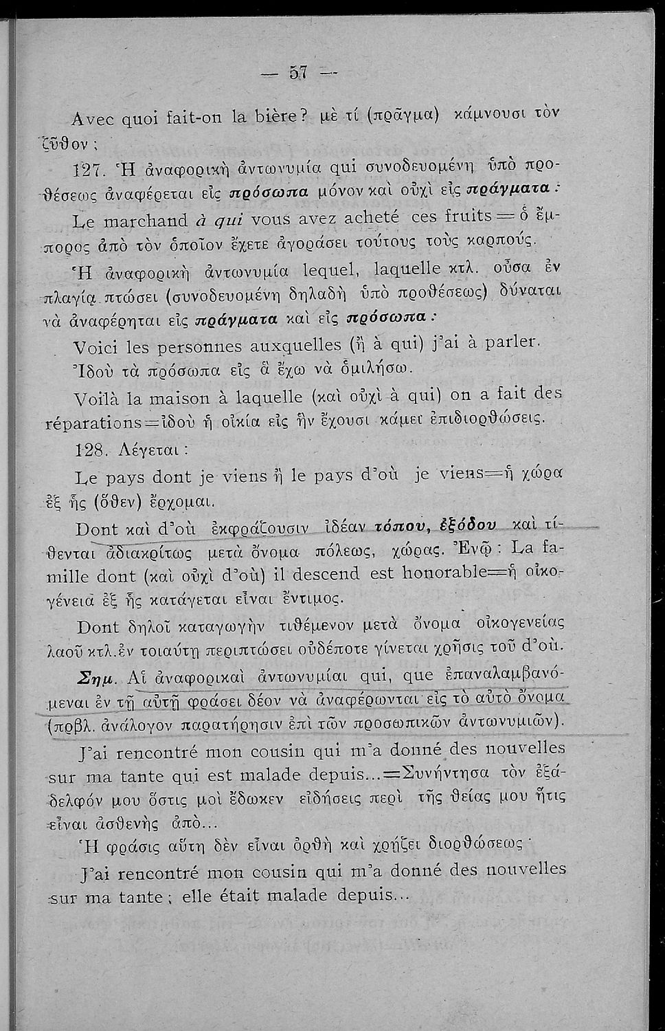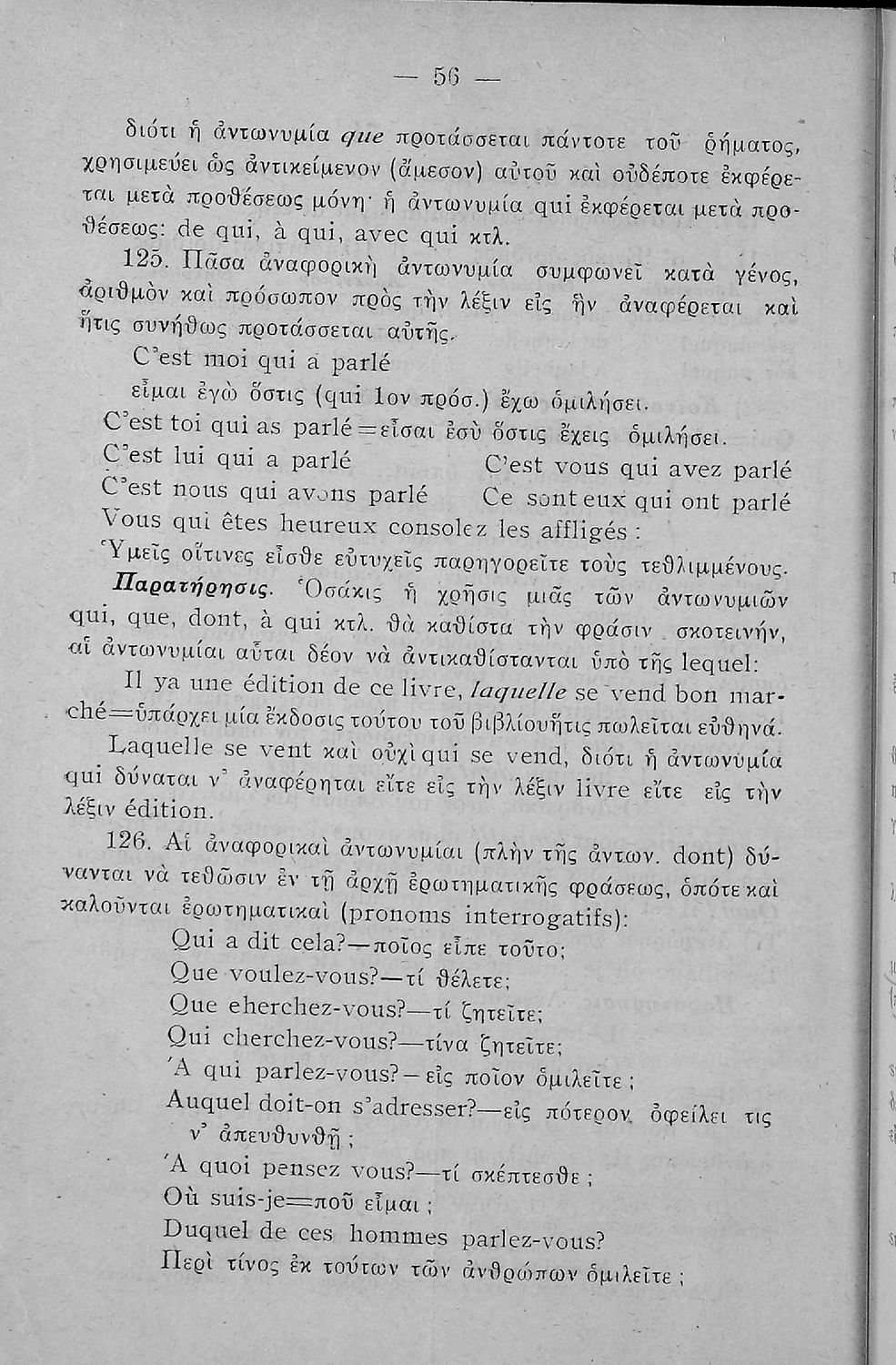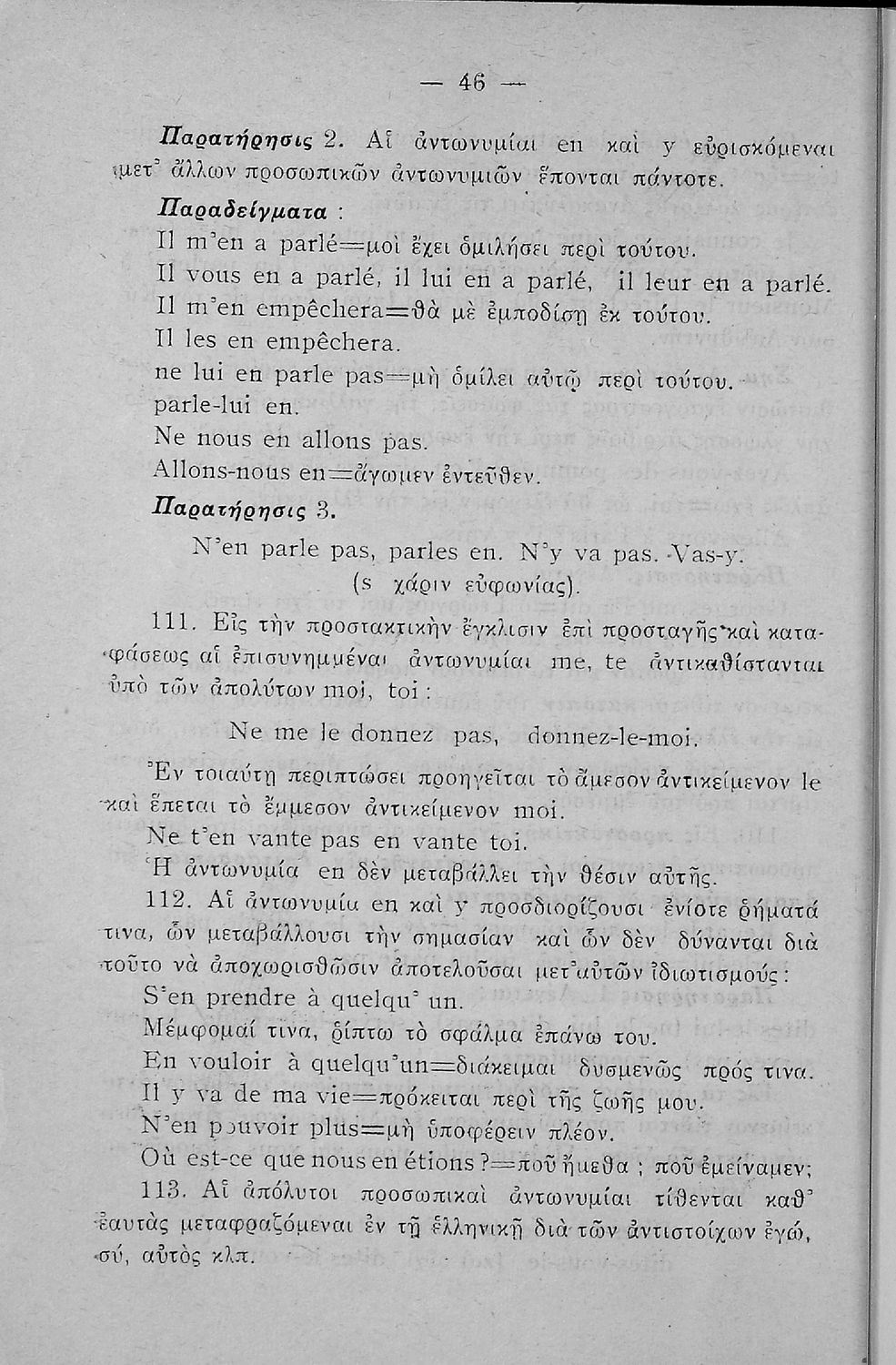 Γραμματική της Γαλλικής γλώσσας για τα Τετρατάξια Γυμνάσια, τη Γ΄ τάξη των Αστικών Σχολείων των Θηλέων και τα Διδασκαλεία της Δημοτικής Εκπαίδευσης που περιλαμβάνει θεωρία, ασκήσεις και λεξιλόγιο.