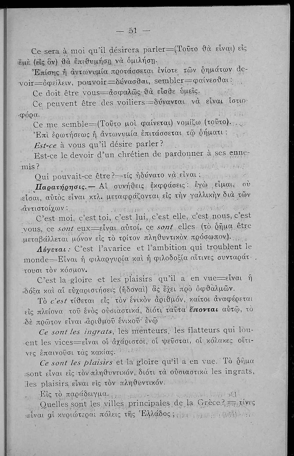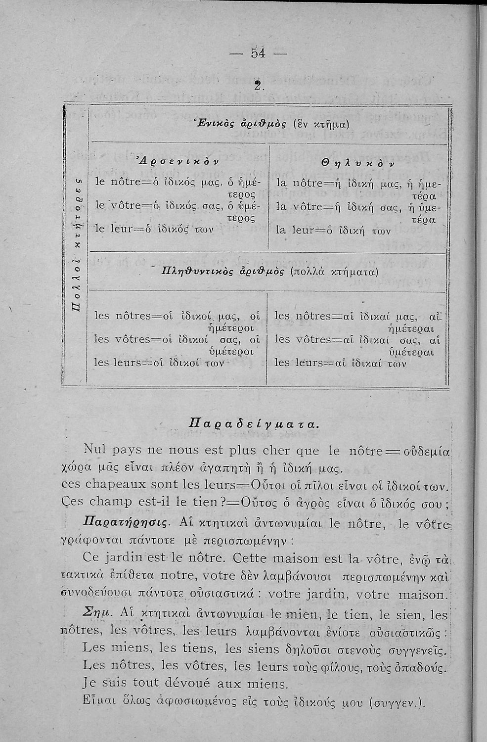 Γραμματική της γαλλικής γλώσσης δια τας τέσσαρας τάξεις των Τετραταξίων Γυμνασίων, τας αντιστοίχους τάξεις των λοιπών σχολείων της μ. εκπαιδεύσεως, την γ΄ τάξιν των Αστικών Σχολείων των θηλέων και τα διδασκαλεία της δημοτικής εκπαιδεύσεως
