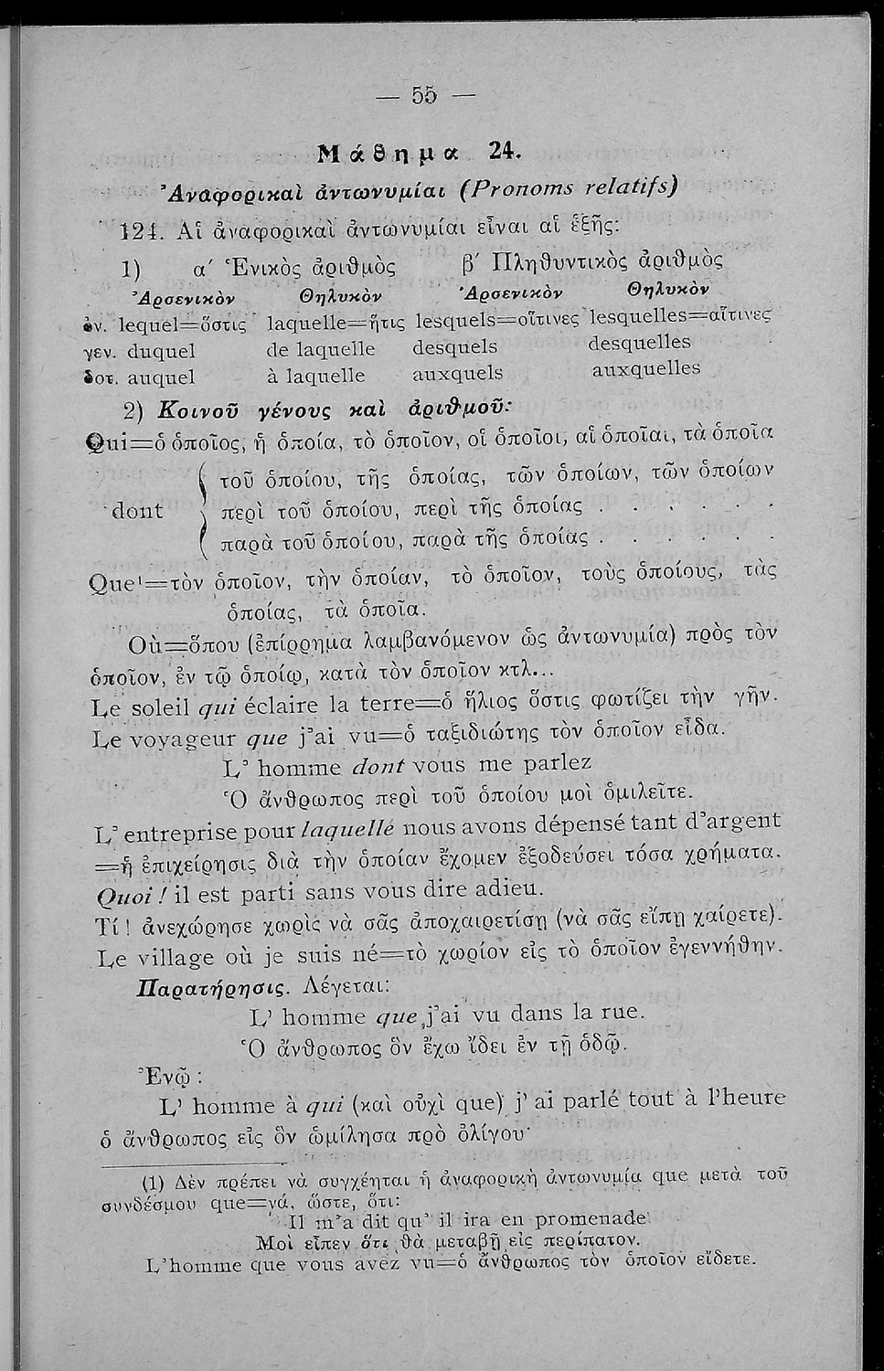 Γραμματική της Γαλλικής γλώσσας για τα Τετρατάξια Γυμνάσια, τη Γ΄ τάξη των Αστικών Σχολείων Θηλέων και τα Διδασκαλεία της Δημοτικής Εκπαίδευσης που περιλαμβάνει θεωρία, ασκήσεις και λεξιλόγιο.