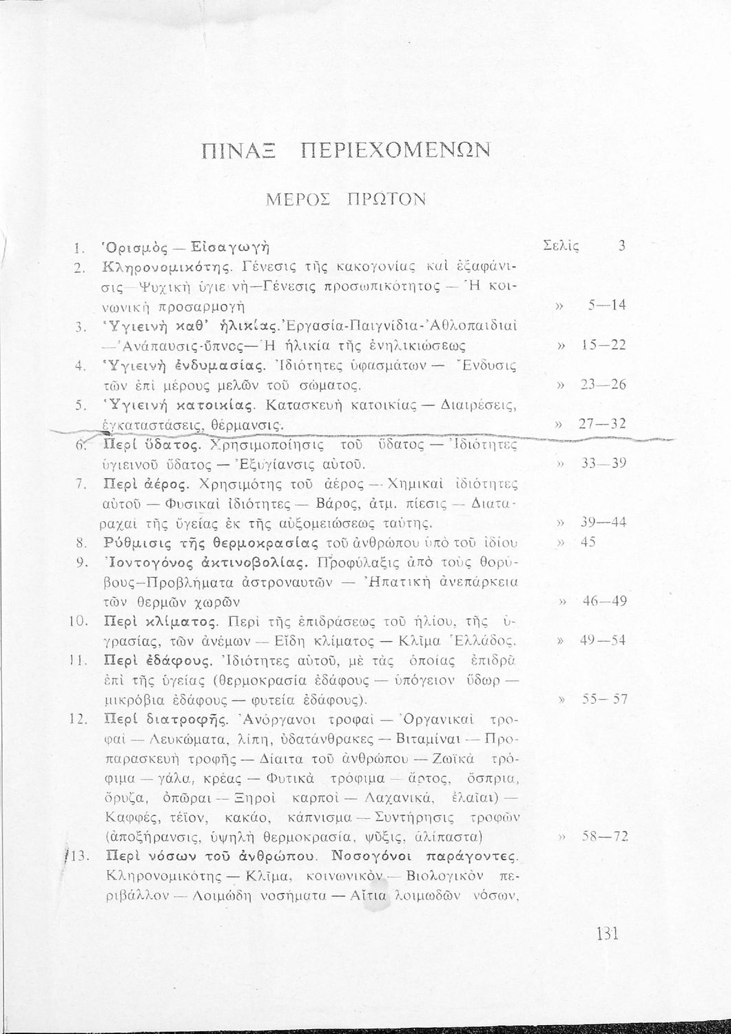 Σχολικό εγχειρίδιο Υγιεινής για τα Γυμνάσια και την Α΄ Λυκείου που εστιάζει στην περιβαντολλογική διάσταση της υγιεινής, τα λοιμώδη νοσήματα και τις πρώτες βοήθειες.
