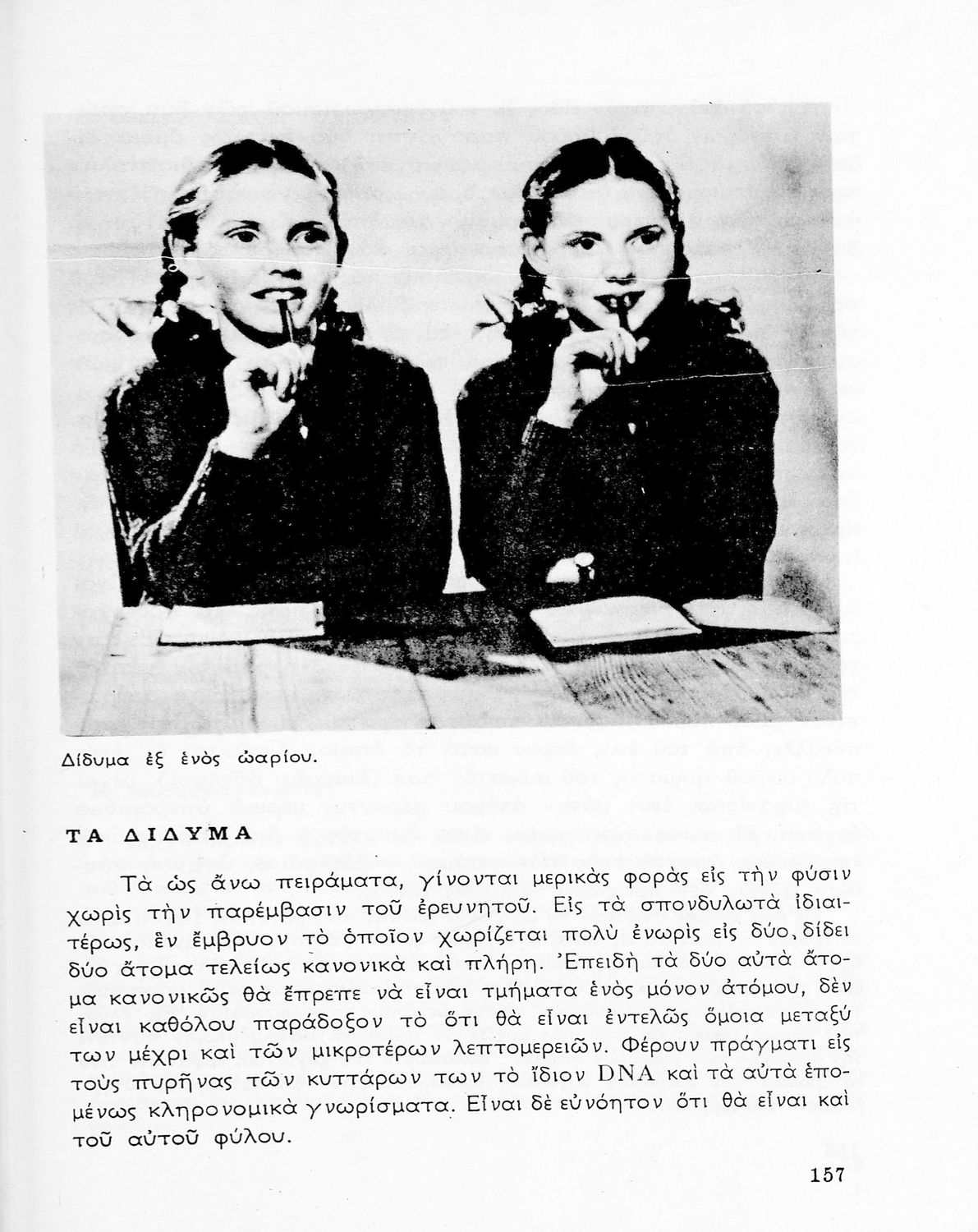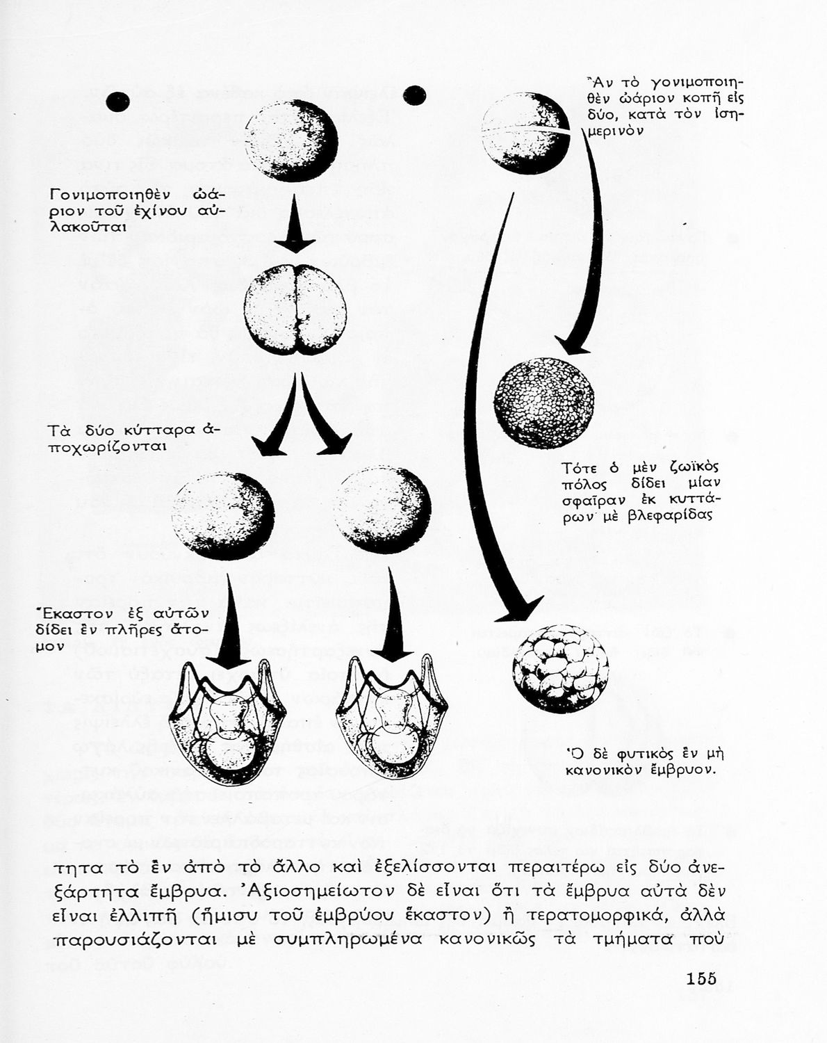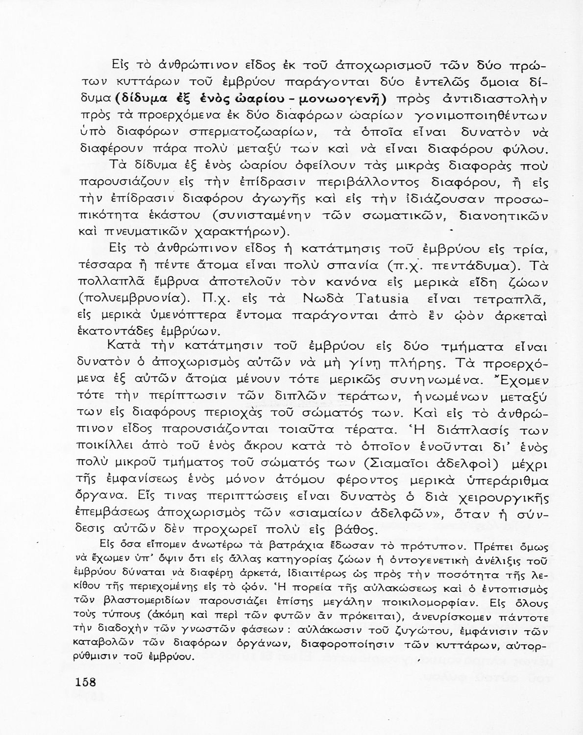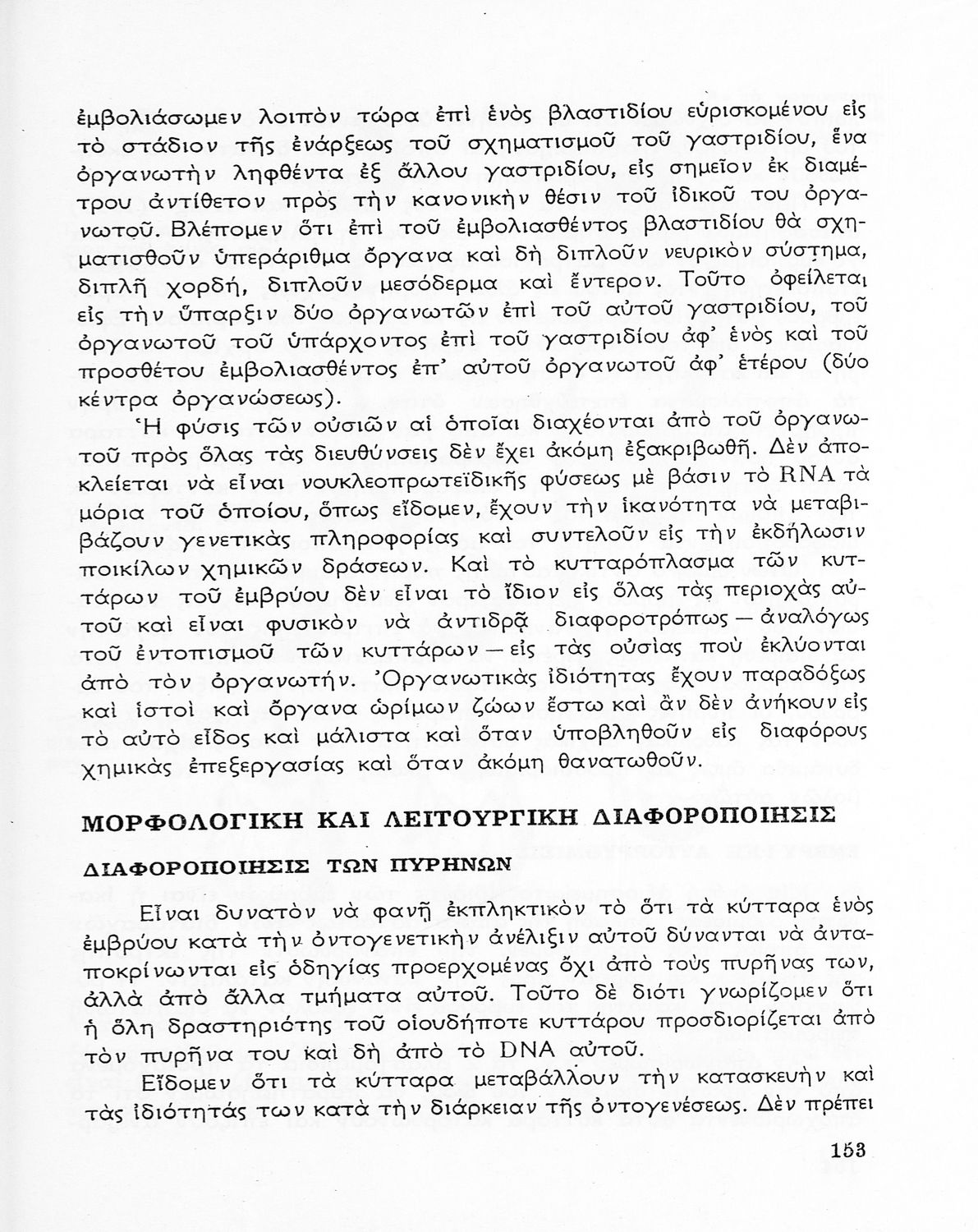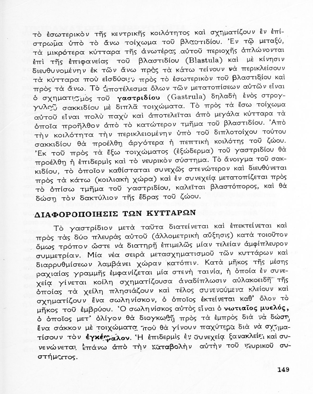 Σχολικό εγχειρίδιο Βιολογίας ΣΤ΄ Γυμνασίου που εστιάζει στις συνθήκες γέννησης, μεταβολής και θανάτου των έμβιων οργανισμών. Φέρει το σύμβολο της δικτατορίας. Ο συγγραφέας ήταν υφηγητής του Πανεπιστημίου Αθηνών.