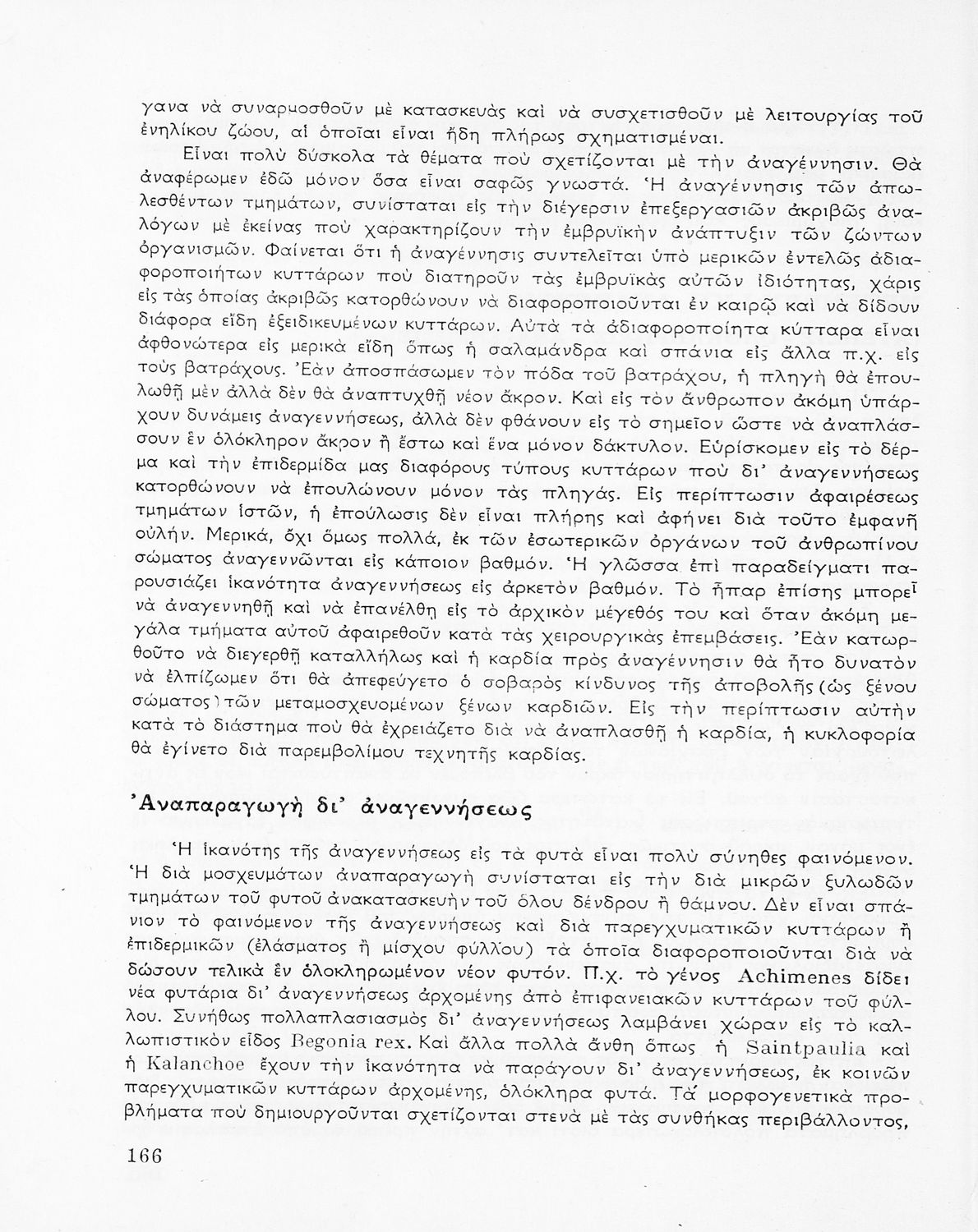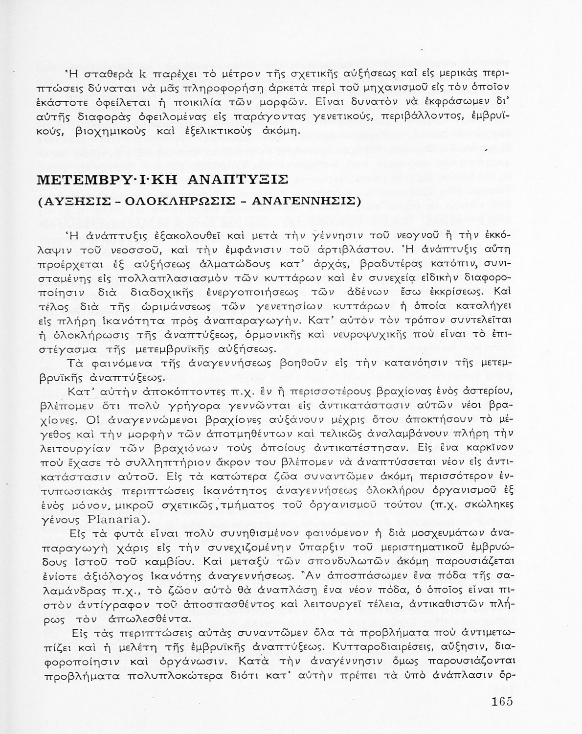 Σχολικό εγχειρίδιο Βιολογίας ΣΤ΄ Γυμνασίου που εστιάζει στις συνθήκες γέννησης, μεταβολής και θανάτου των έμβιων οργανισμών. Φέρει το σύμβολο της δικτατορίας. Ο συγγραφέας ήταν υφηγητής του Πανεπιστημίου Αθηνών.