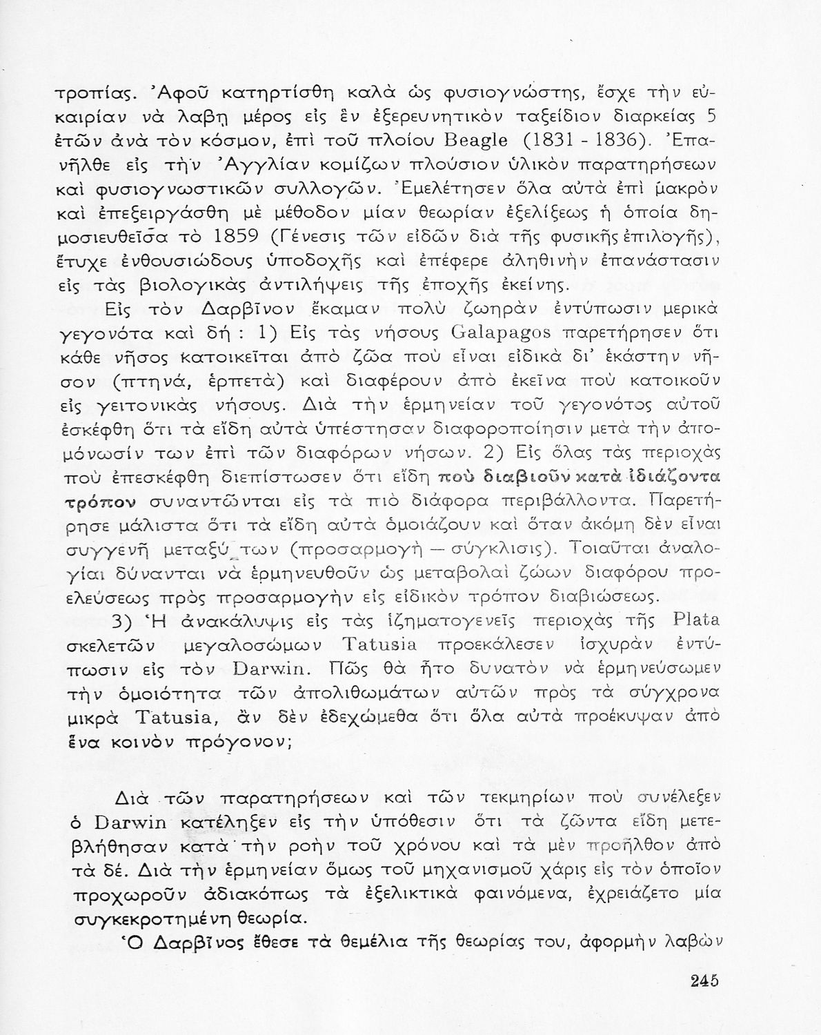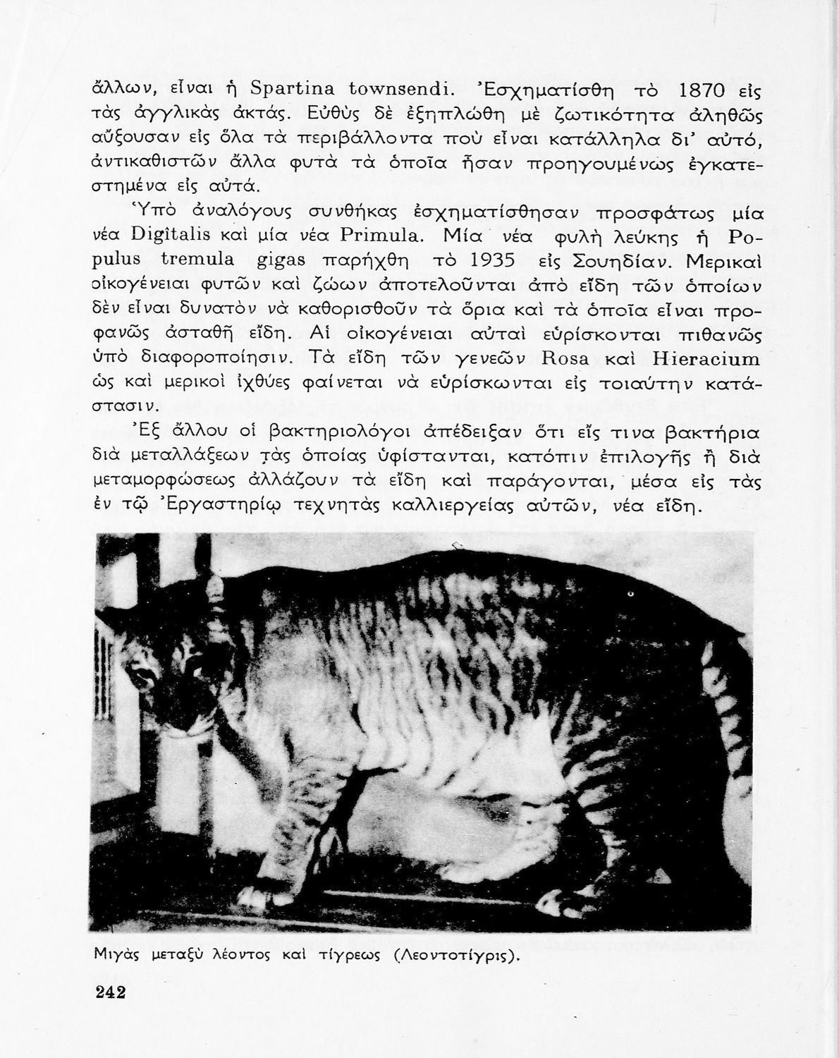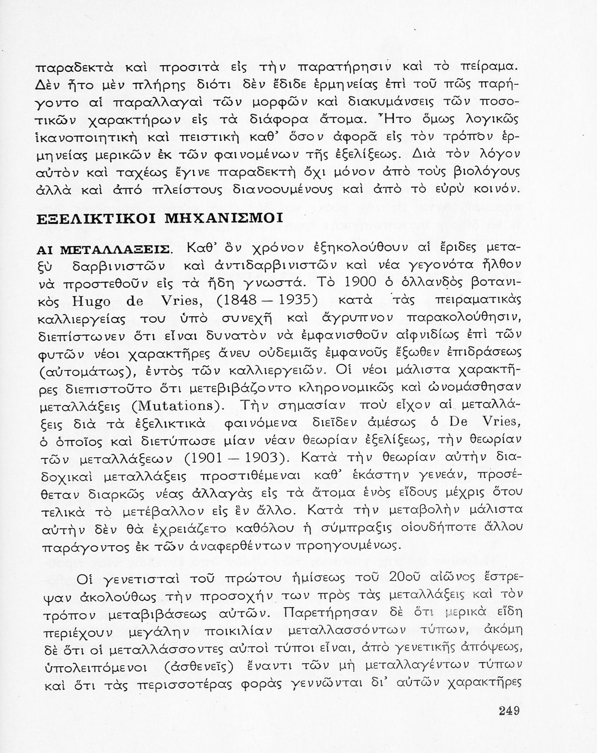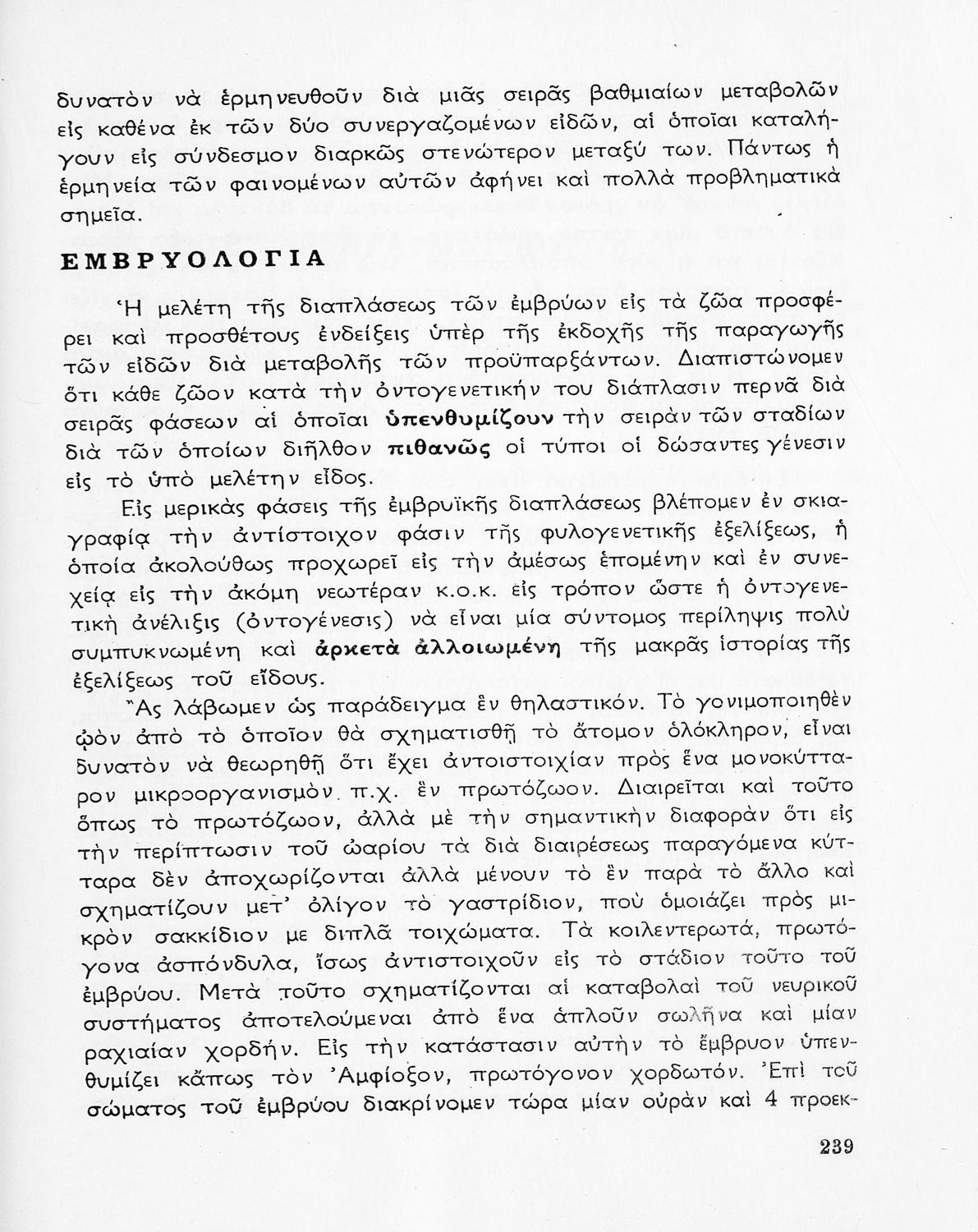 Σχολικό εγχειρίδιο Βιολογίας ΣΤ΄ Γυμνασίου που εστιάζει στις συνθήκες γέννησης, μεταβολής και θανάτου των έμβιων οργανισμών. Φέρει το σύμβολο της δικτατορίας. Ο συγγραφέας ήταν υφηγητής του Πανεπιστημίου Αθηνών.