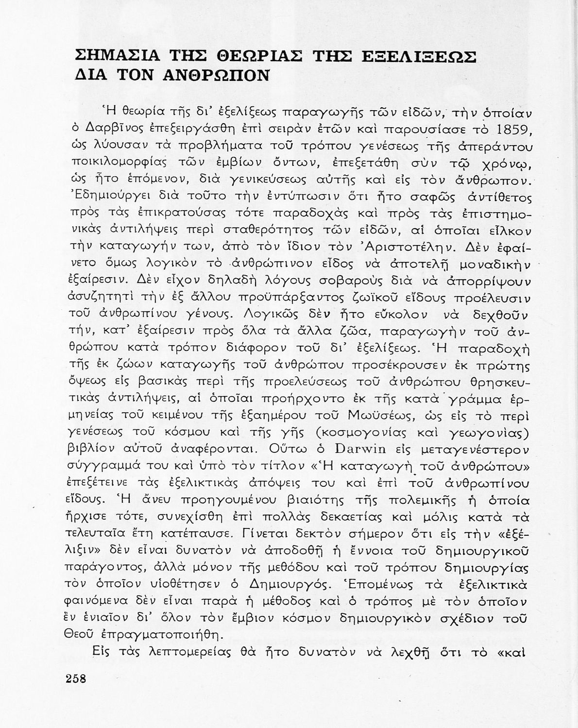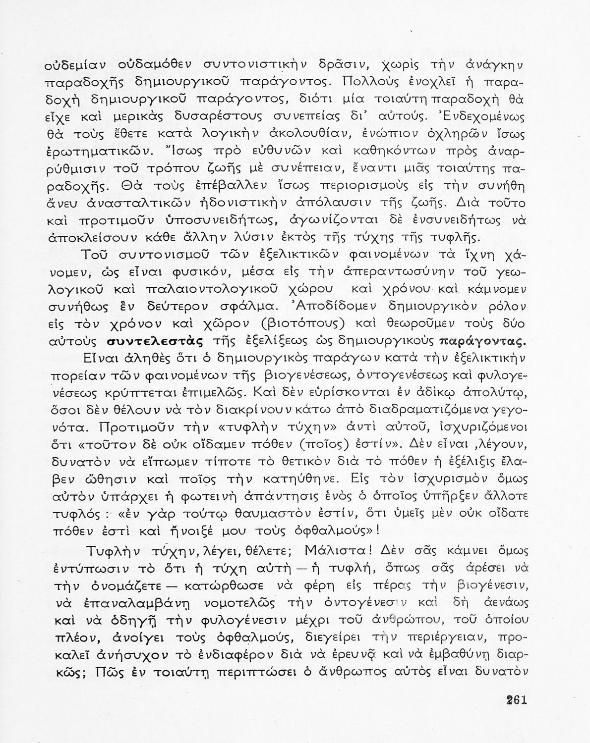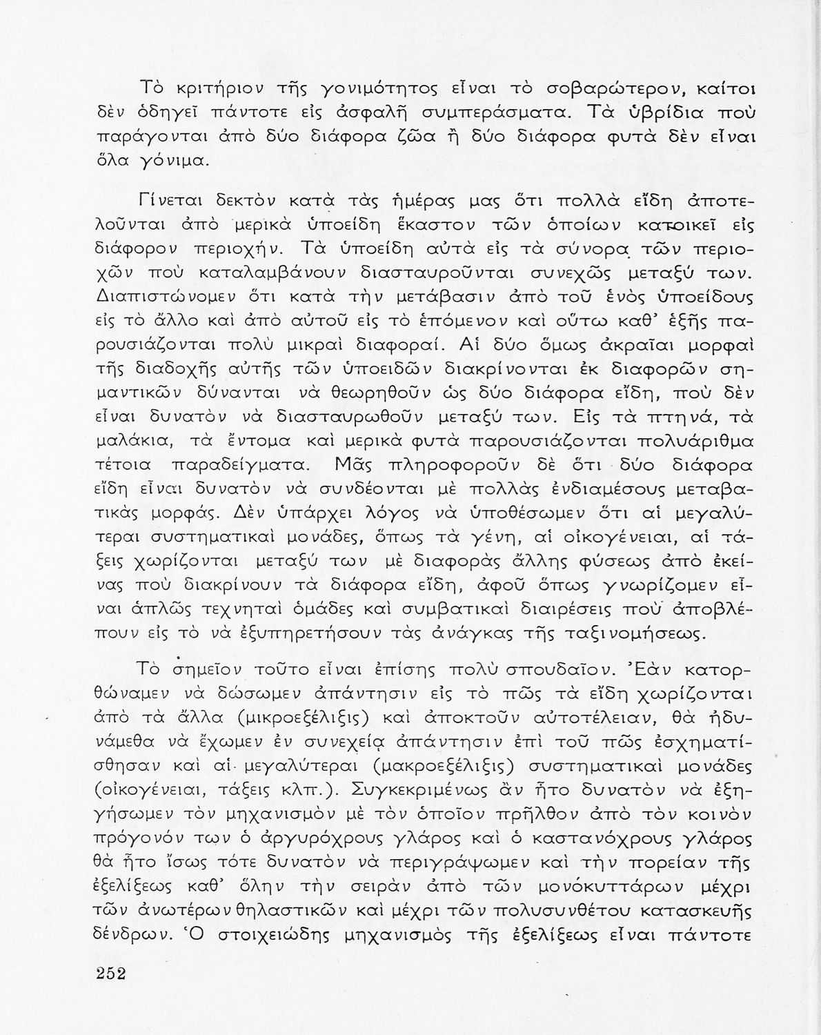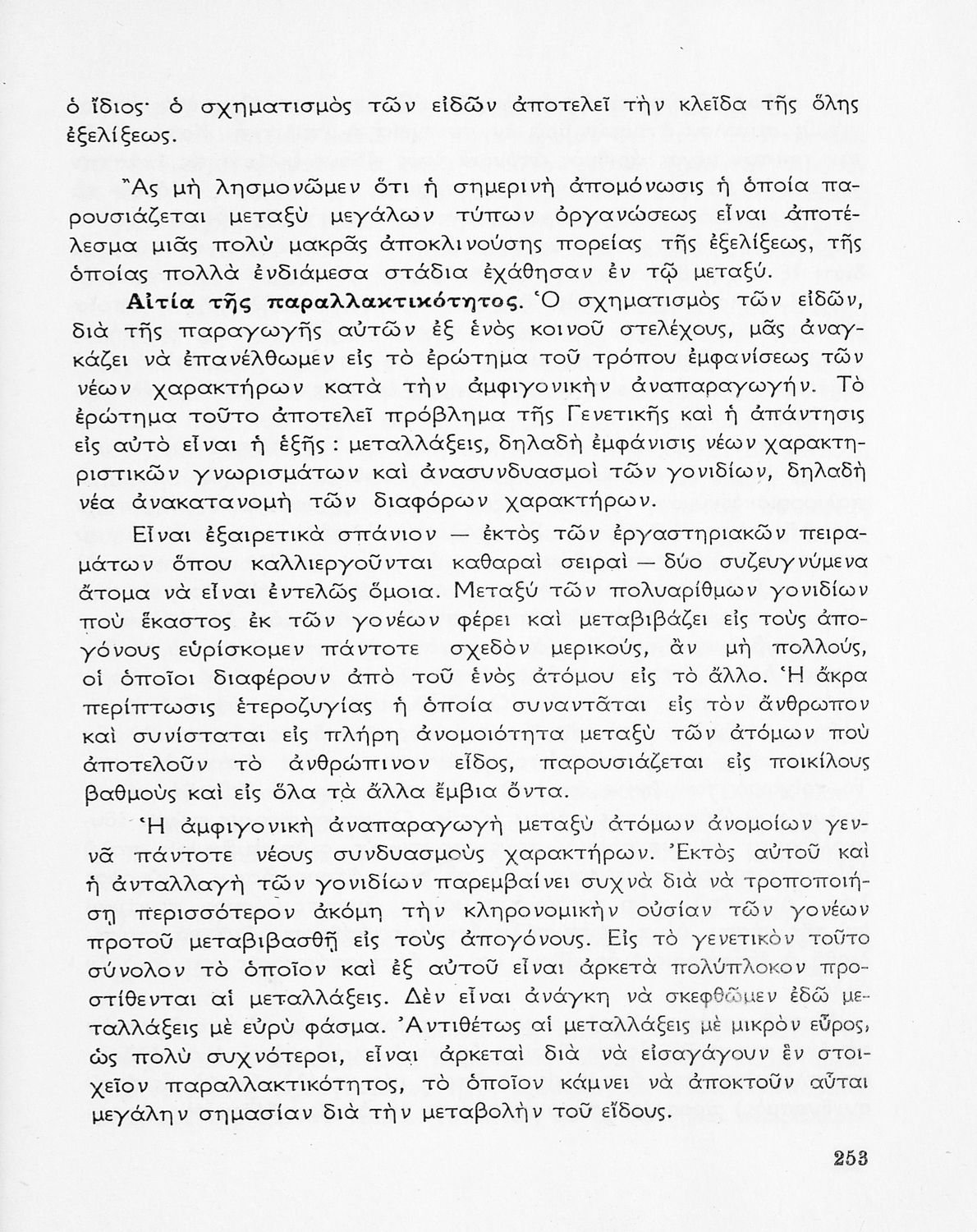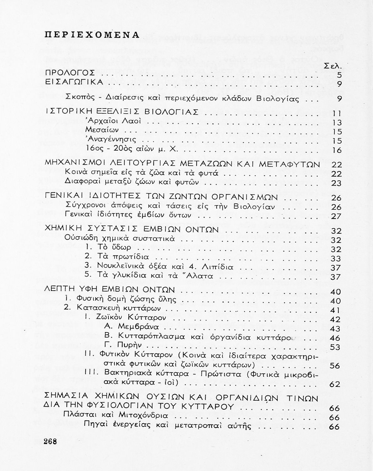 Σχολικό εγχειρίδιο Βιολογίας ΣΤ΄ Γυμνασίου που εστιάζει στις συνθήκες γέννησης, μεταβολής και θανάτου των έμβιων οργανισμών. Φέρει το σύμβολο της δικτατορίας. Ο συγγραφέας ήταν υφηγητής του Πανεπιστημίου Αθηνών.