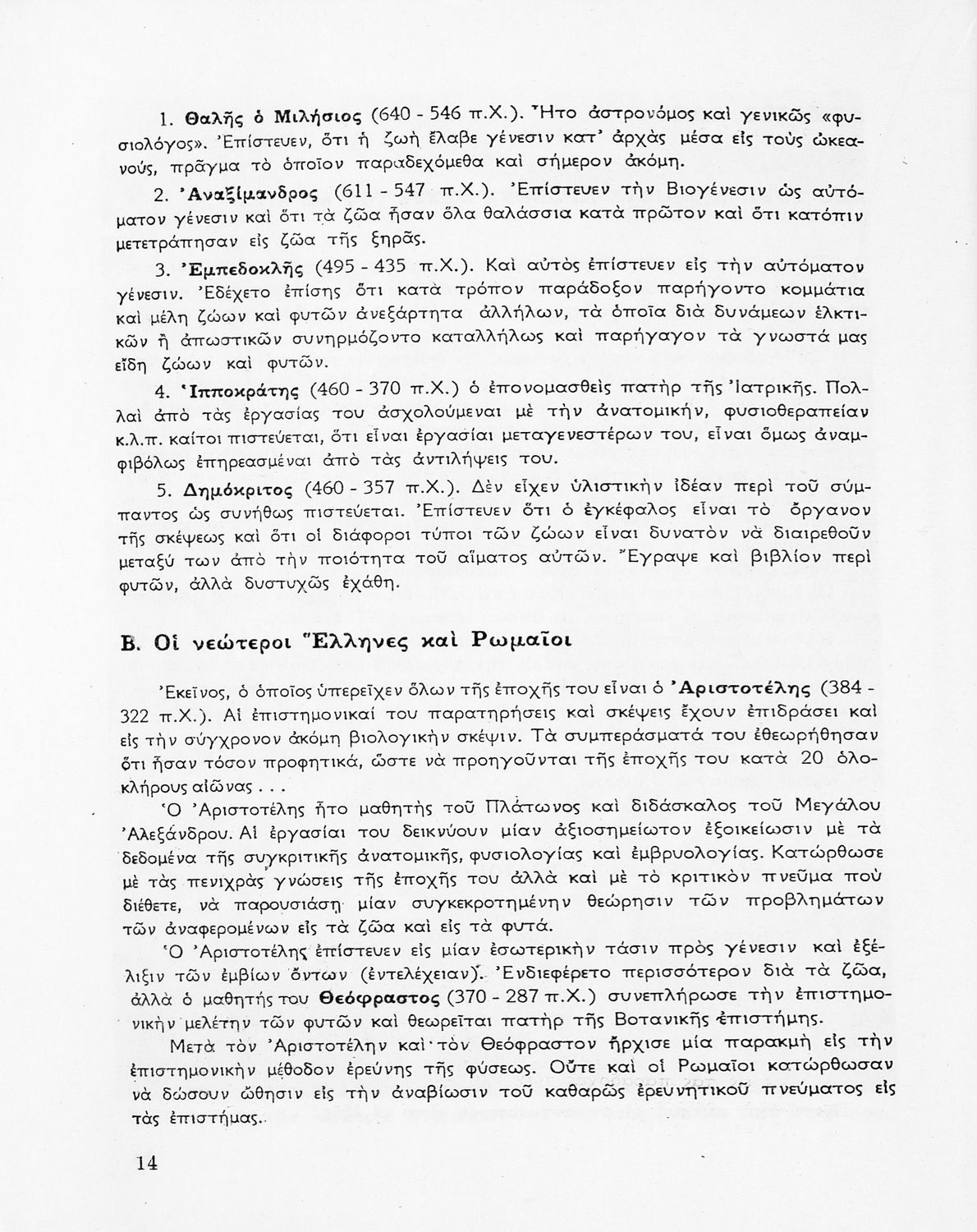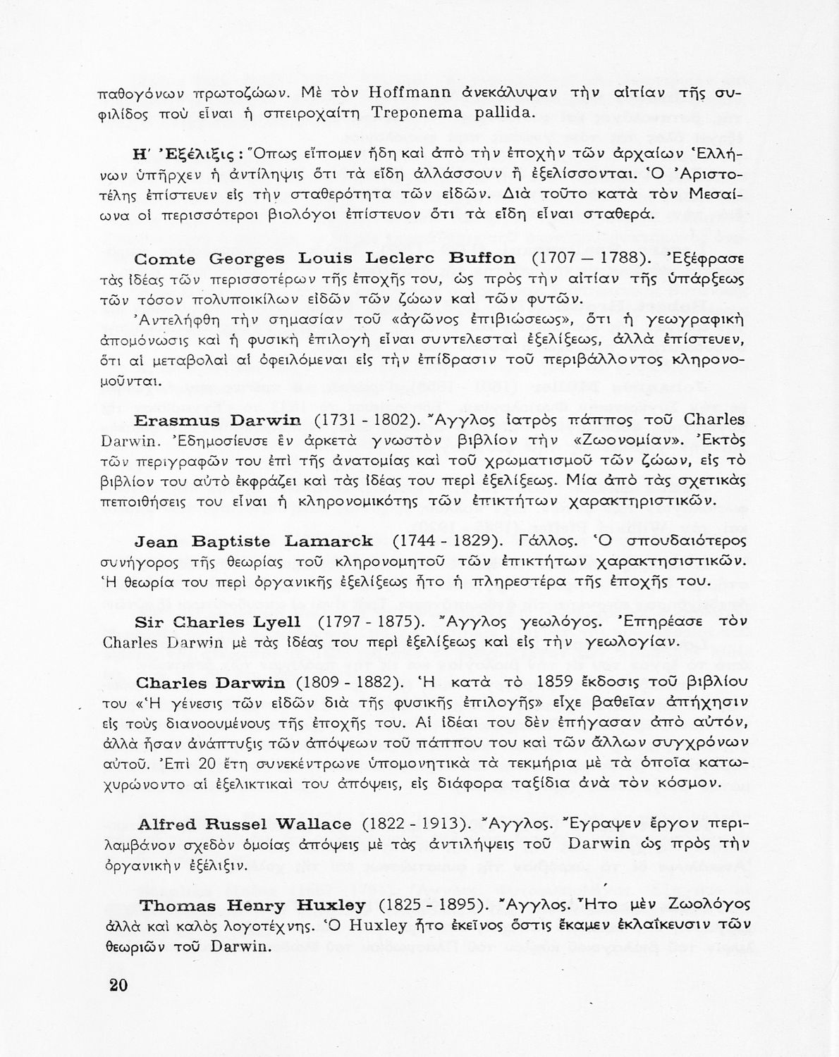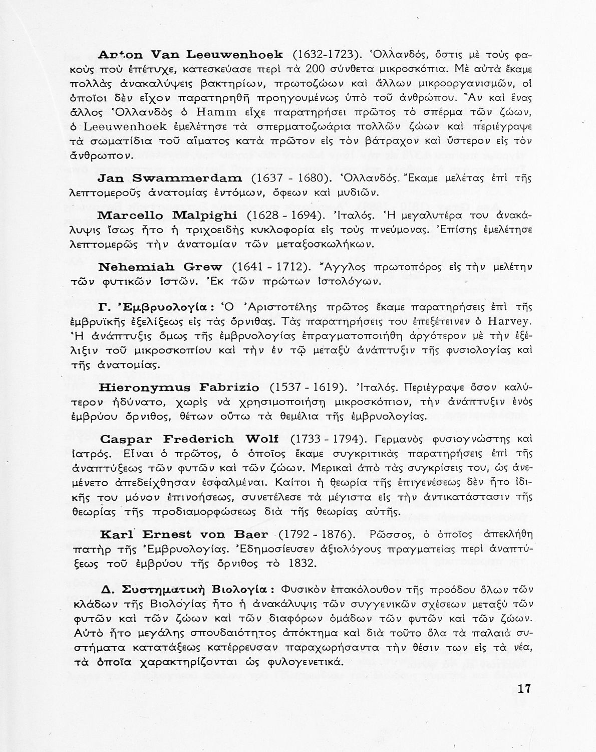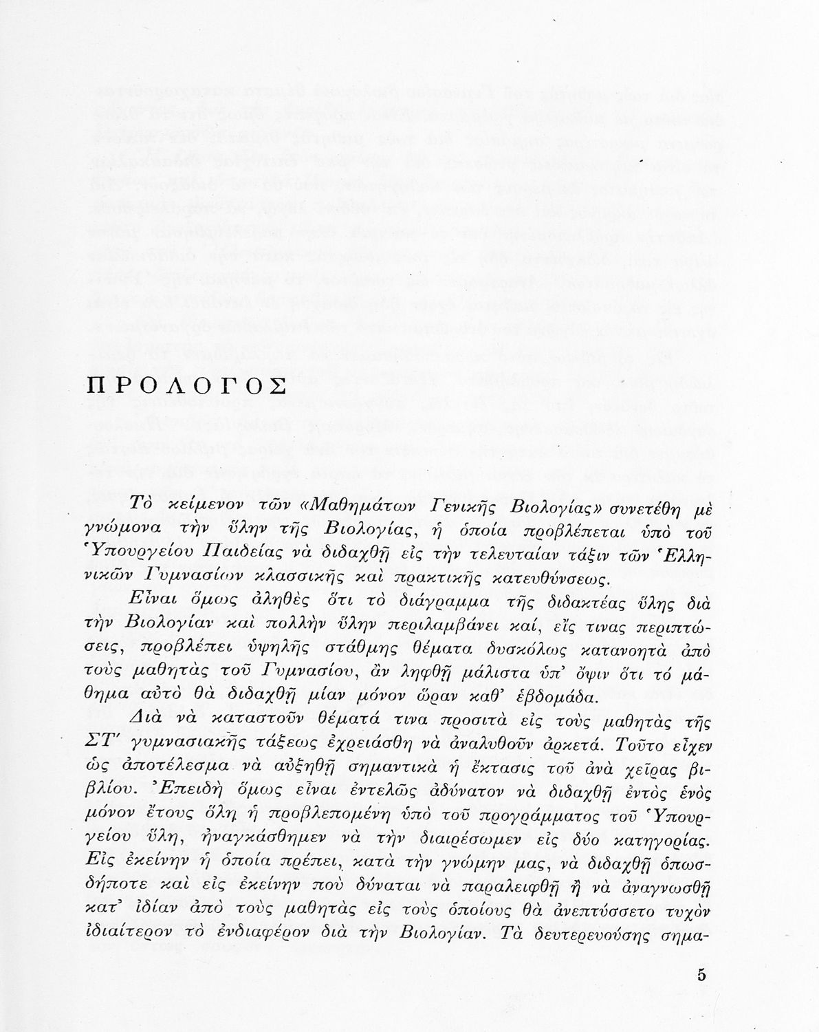 Σχολικό εγχειρίδιο Βιολογίας Δ΄ Γυμνασίου που εστιάζει στις συνθήκες γέννησης, μεταβολής και θανάτου των έμβιων οργανισμών. Ο συγγραφέας ήταν καθηγητής της γενικής Βιολογίας στο Πανεπιστήμιο Αθηνών.