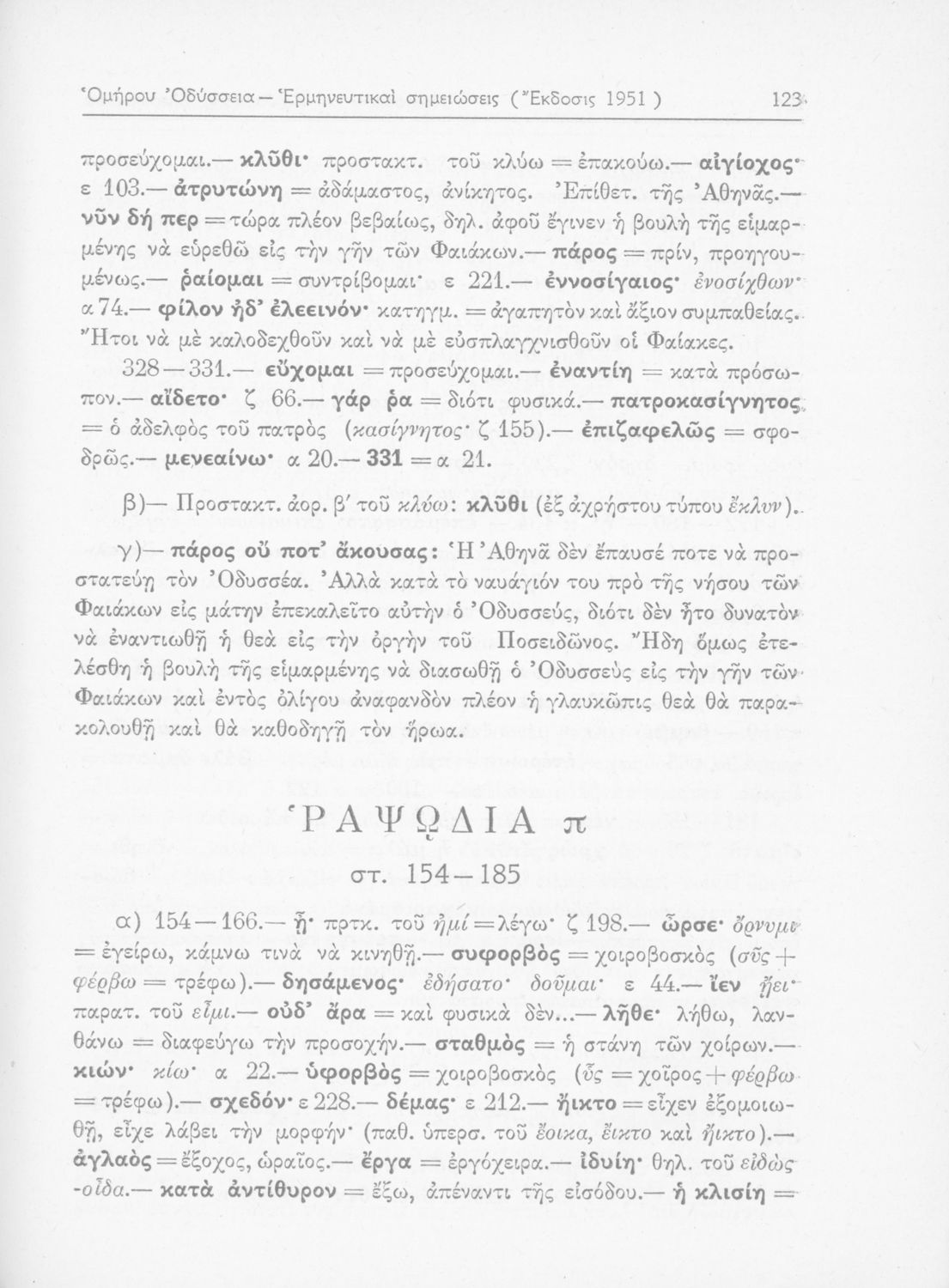 Σχολικό εγχειρίδιο της Ε΄ Γυμνασίου για το μάθημα των Αρχαίων Ελληνικών. Περιέχει αποσπάσματα από τις ραψωδίες της Οδύσσειας, ερμηνευτικά και πραγματολογικά σχόλια και τις γραμματικές παρατηρήσεις.