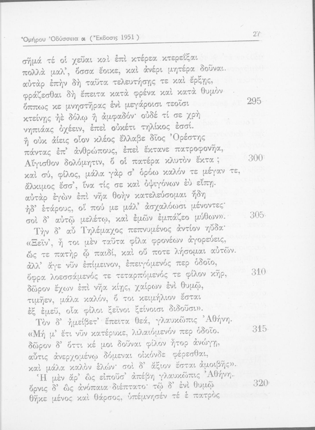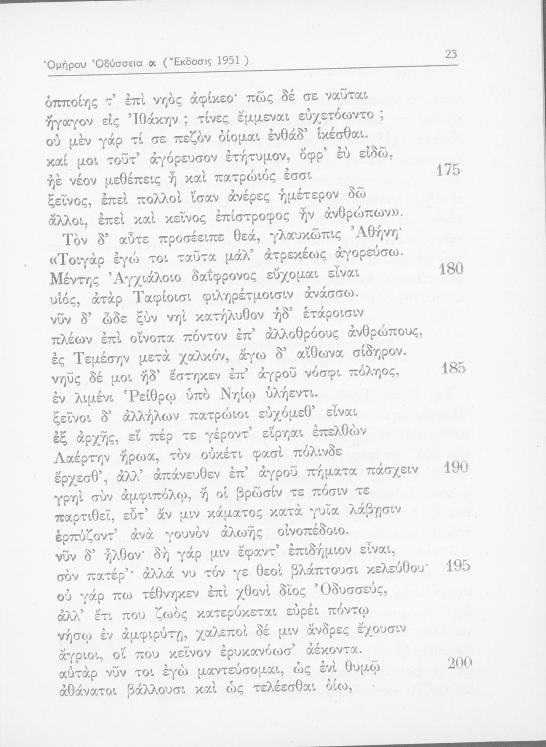 Ομήρου Οδύσσεια (εκλογαί) δια την Ε΄ Τάξιν των Γυμνασίων