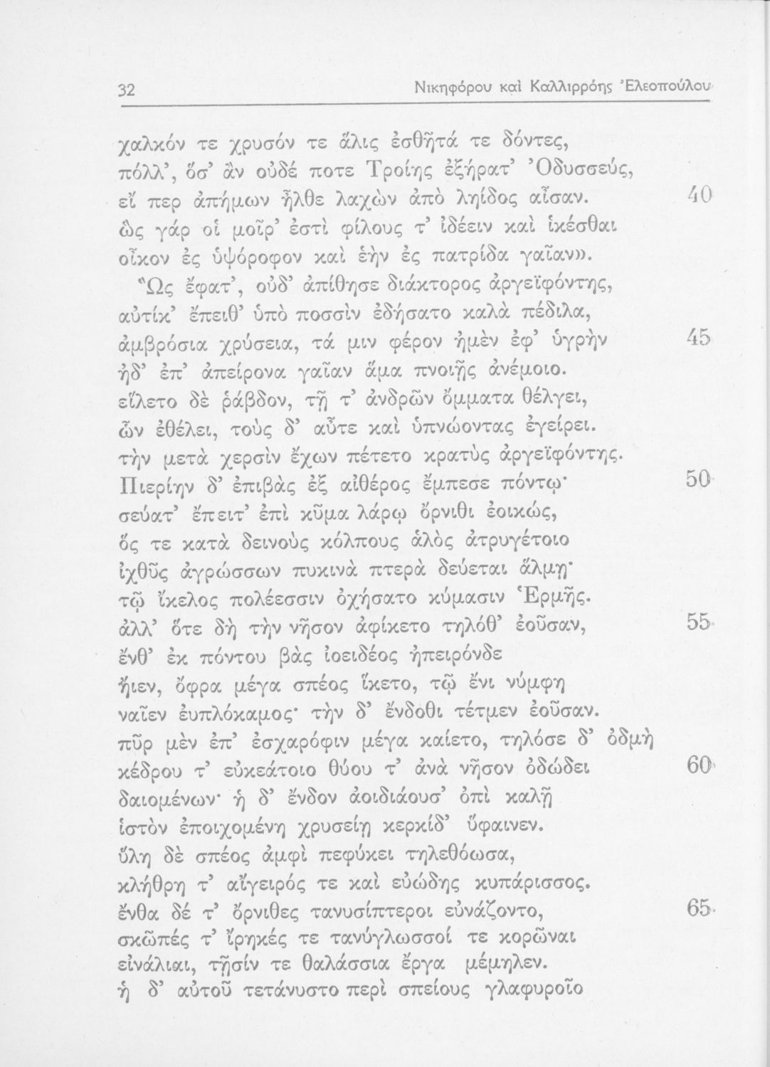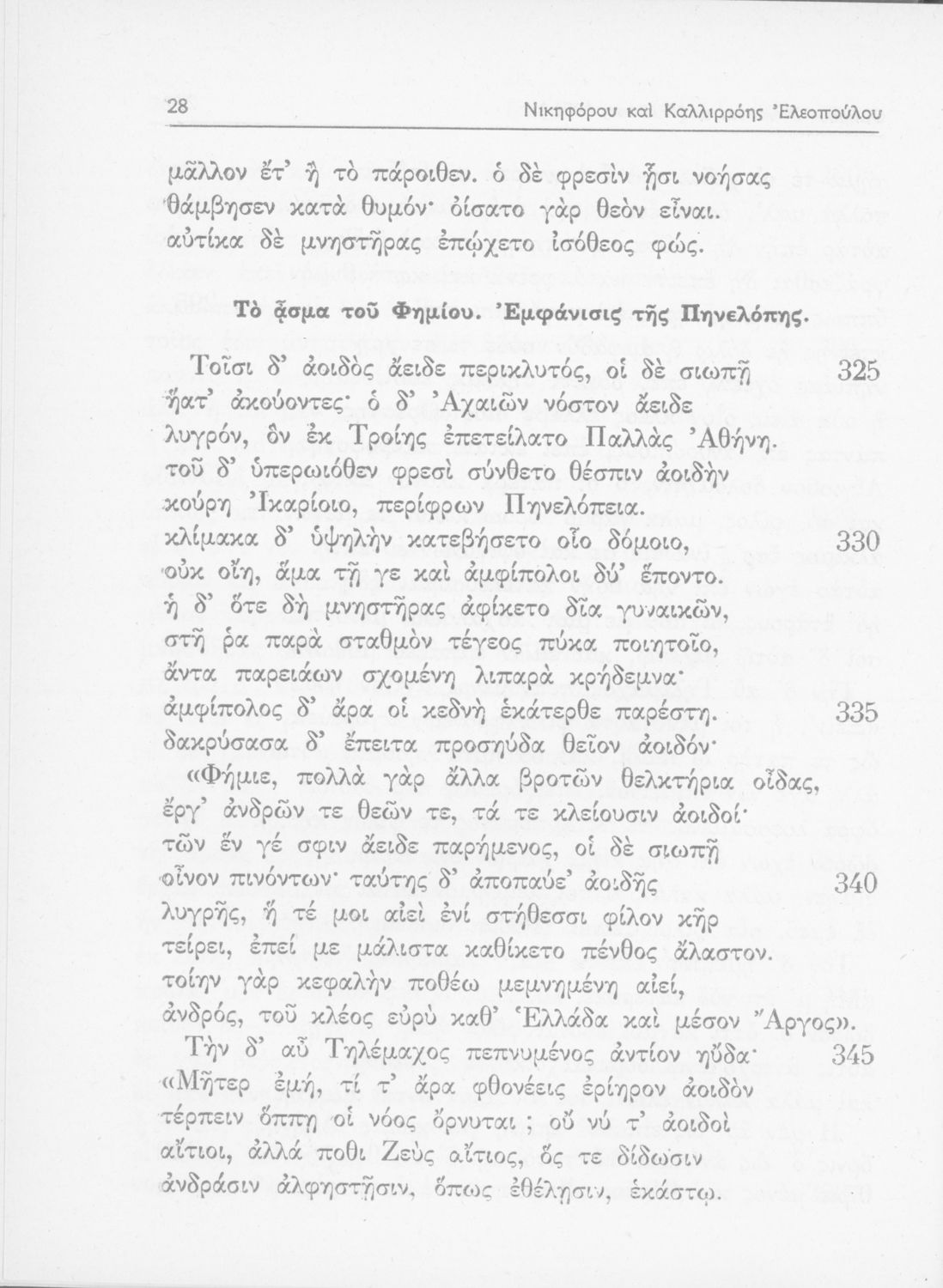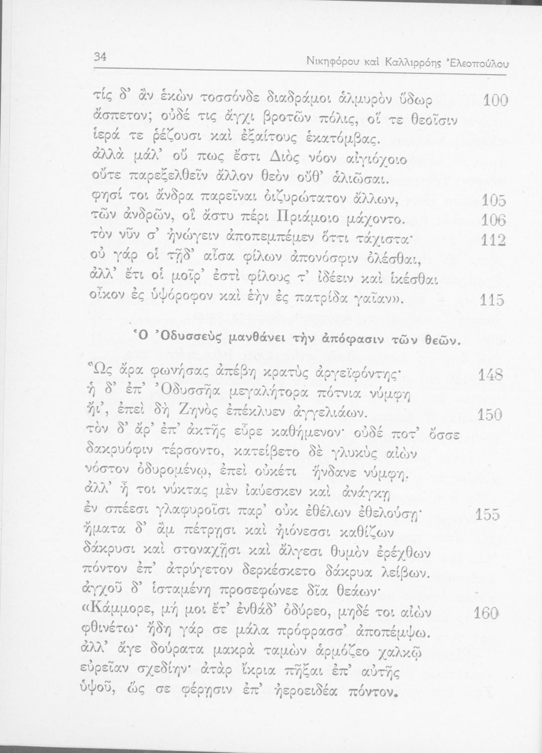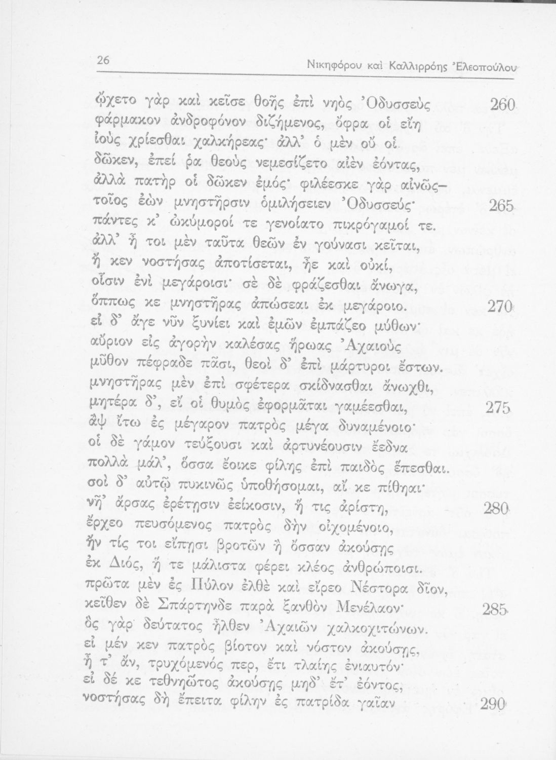 Όμηρος, Νικηφόρος Ξ. Ελεόπουλος, Καλλιρόη Ν. Ελεοπούλου (σχόλια)